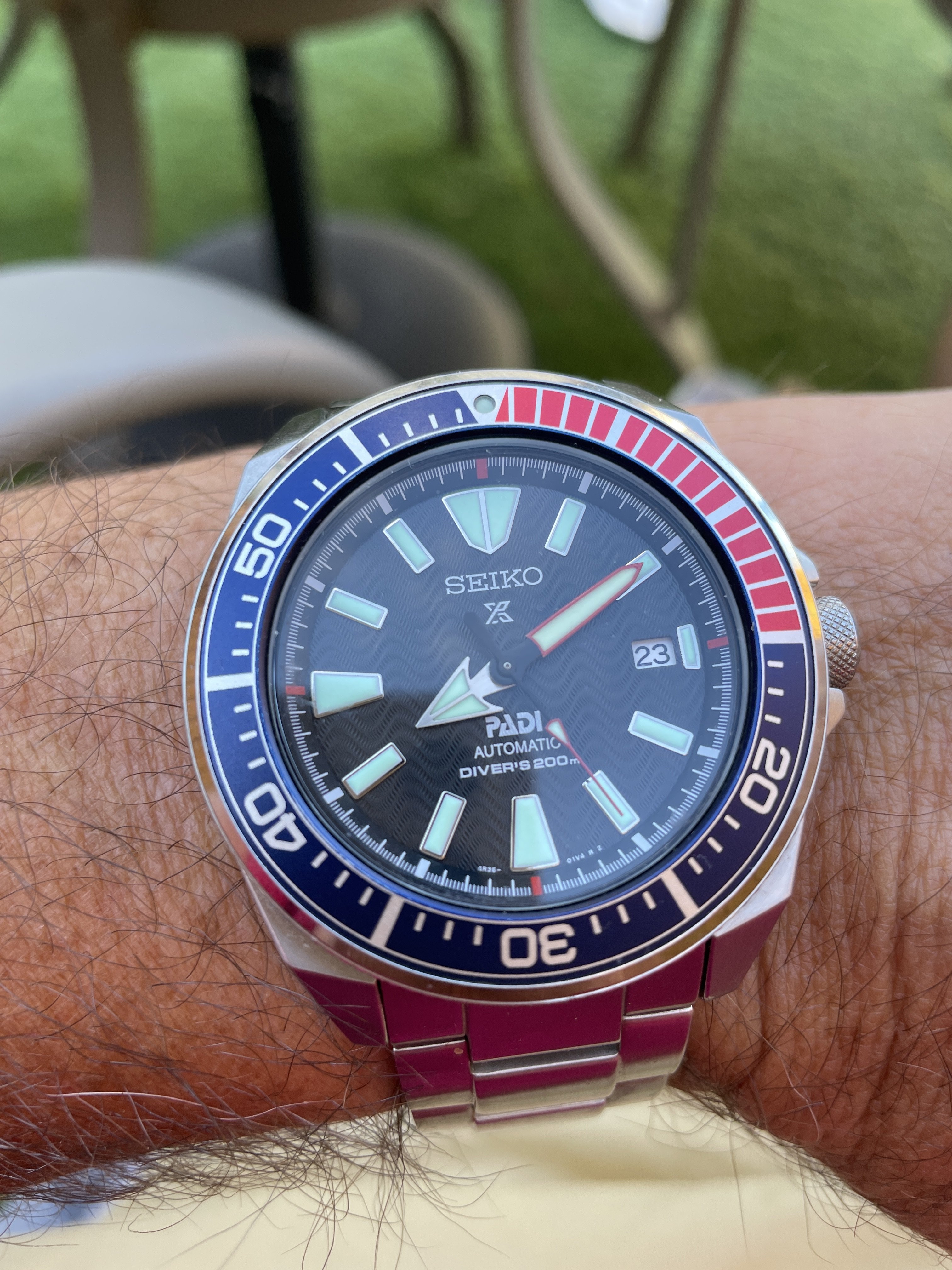 Posts 242 Likes 2,022 ezinternet ·Jul 25, 2022 6309-7040 by Bob Thayer Jr. (back in 2011) Dial, hands and bezel insert dot re-lumed with NoctiLumina. ( https://forum.replica-watch.info/fo...37121-noctilumina-vs-superluminova-you-decide ) AR sapphire crystal.