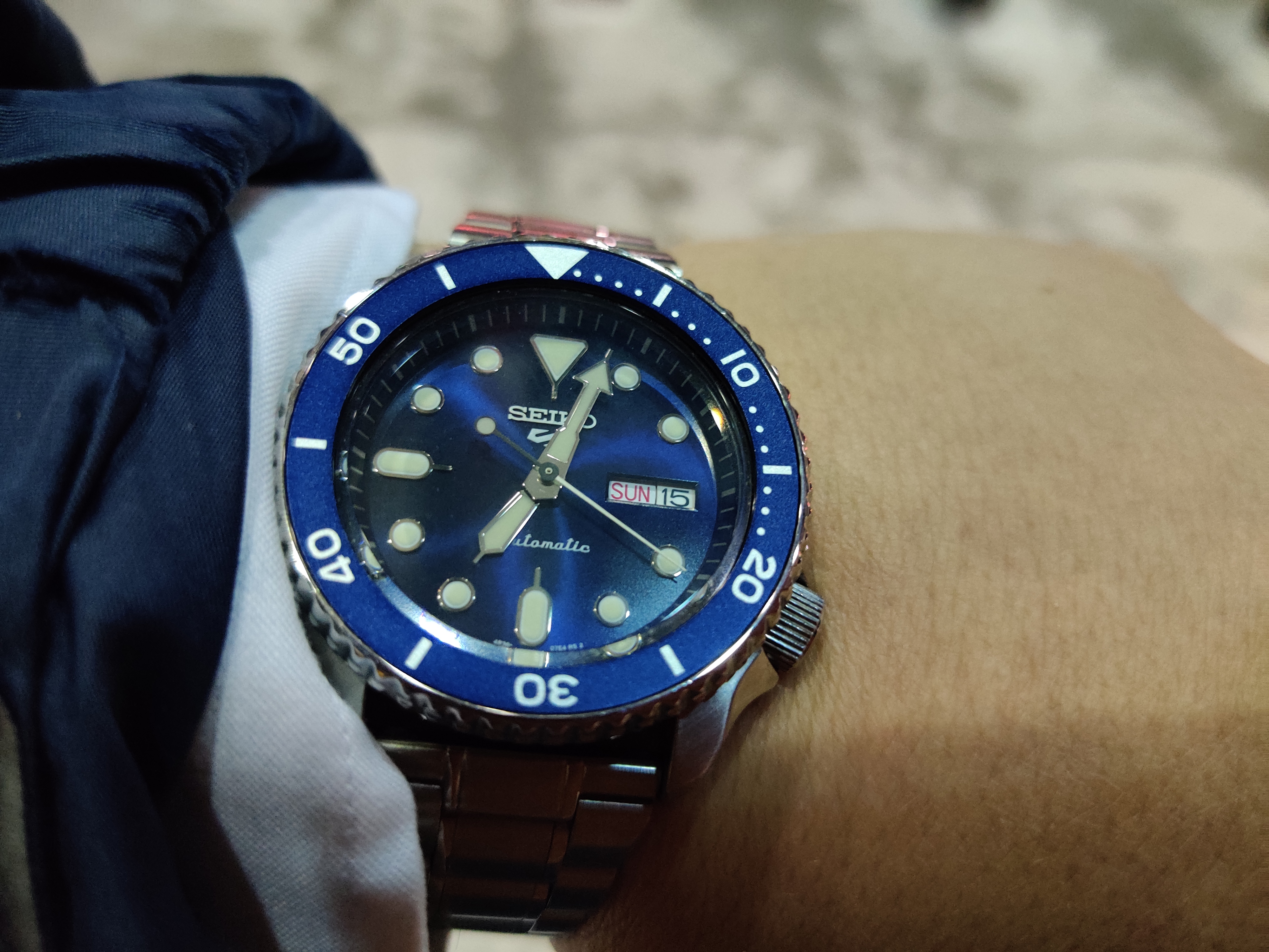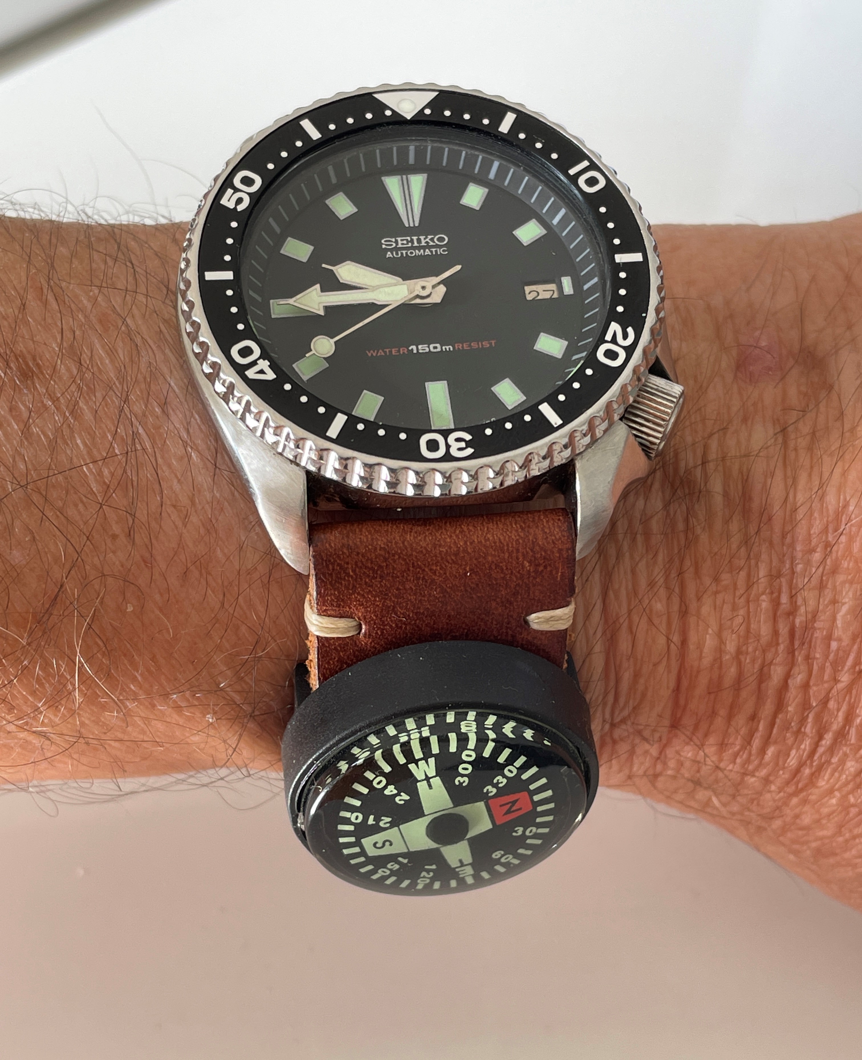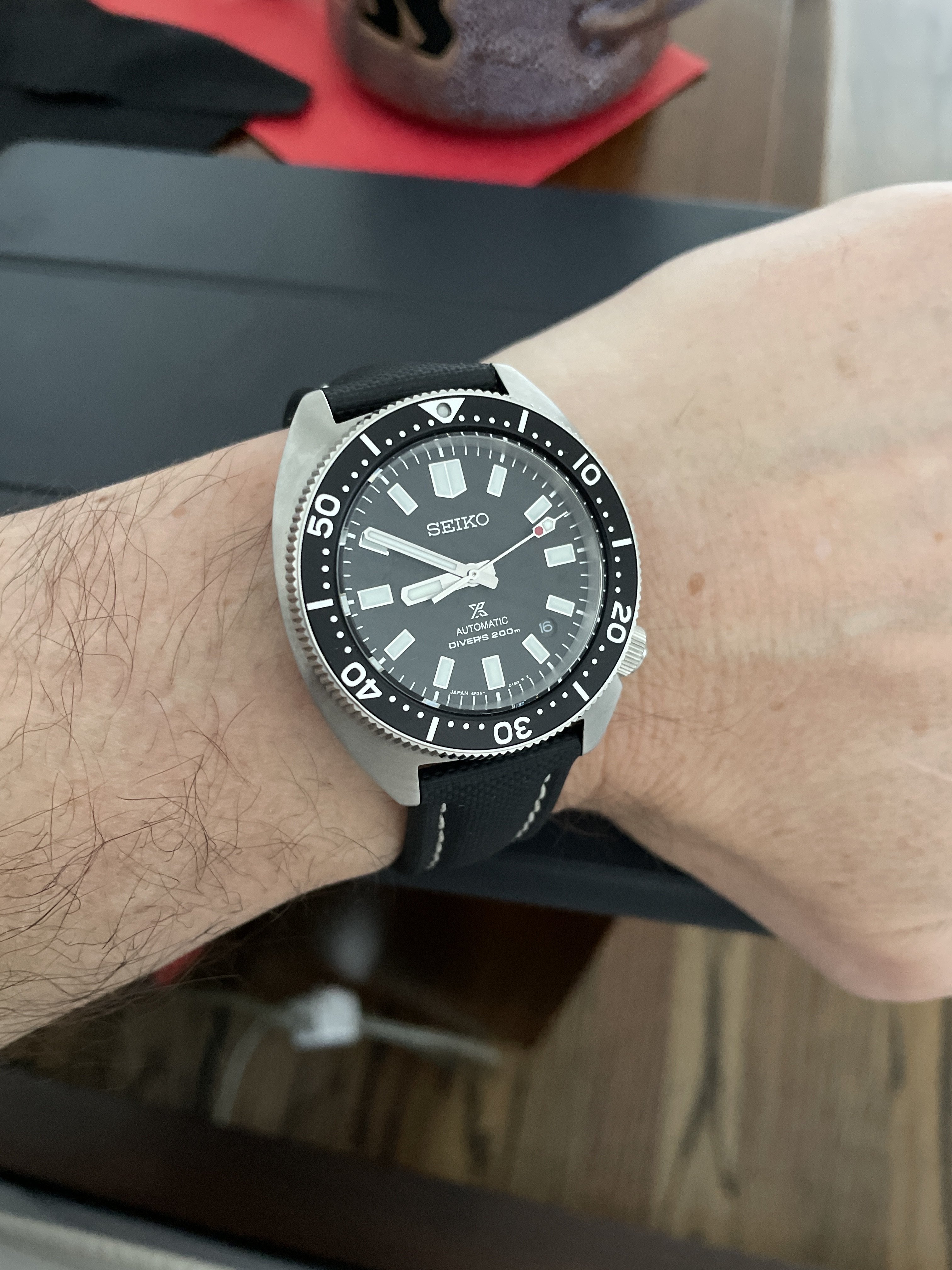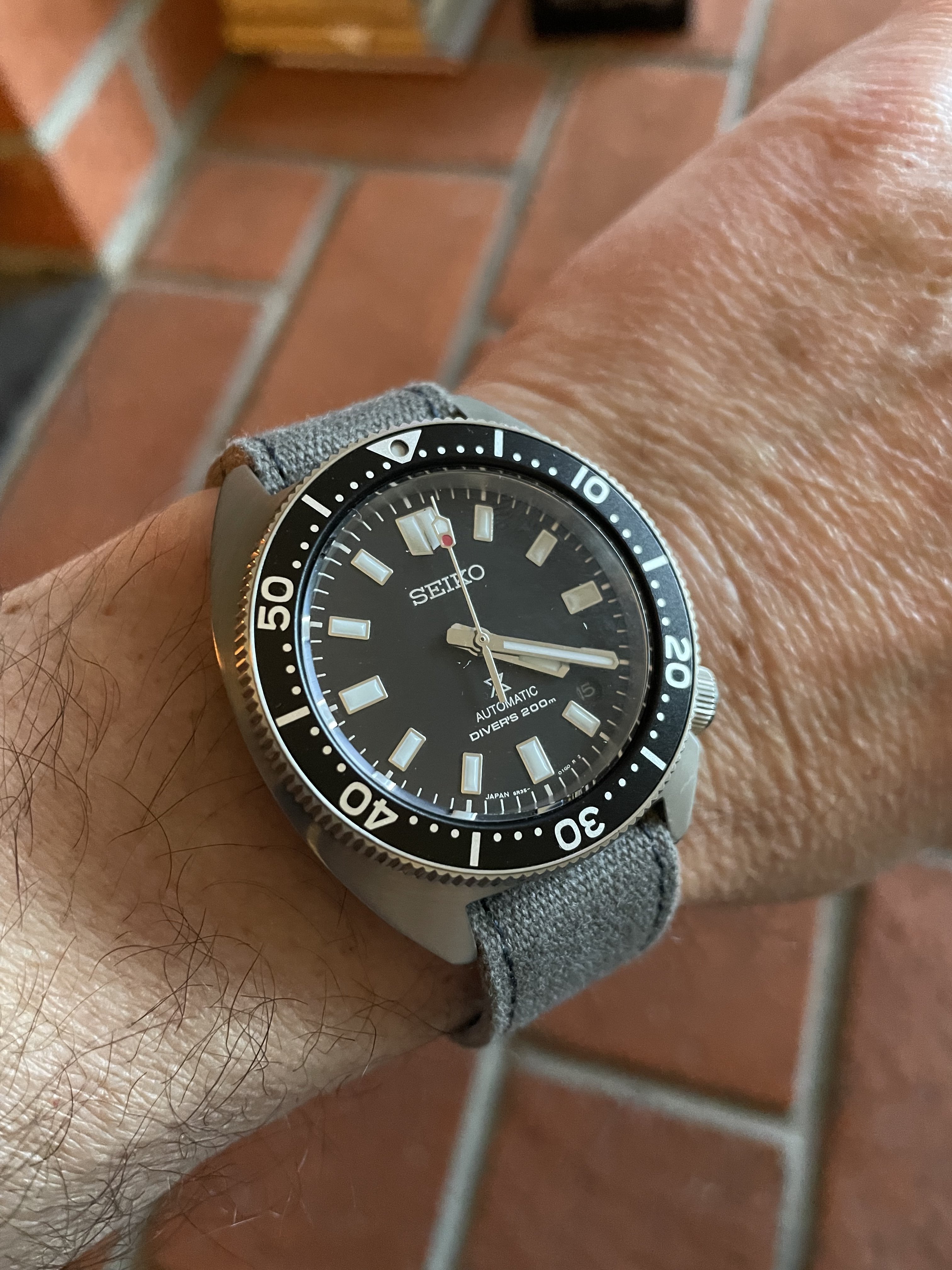 Really liking it. Black dial is very versatile: I can wear it with just about anything and gives the classic dive watch vibe. I thought I’d miss not have a bracelet, but it really is a strap monster and the 20mm lug width means I can use on of my many 20mm straps to mix it up. That said, the white dial is a great looking watch…can’t go wrong either way. Here’s another pic to tempt you 😀