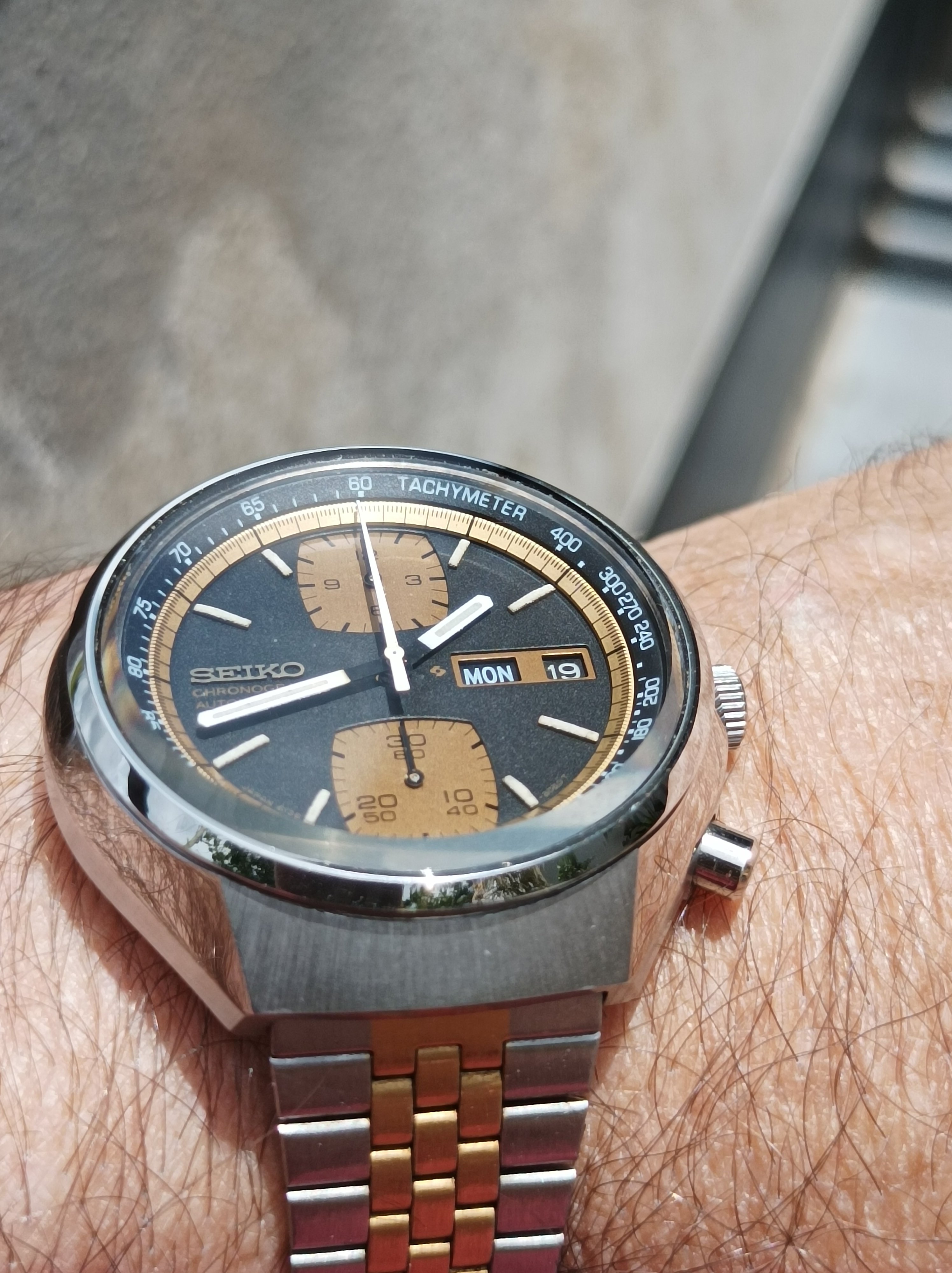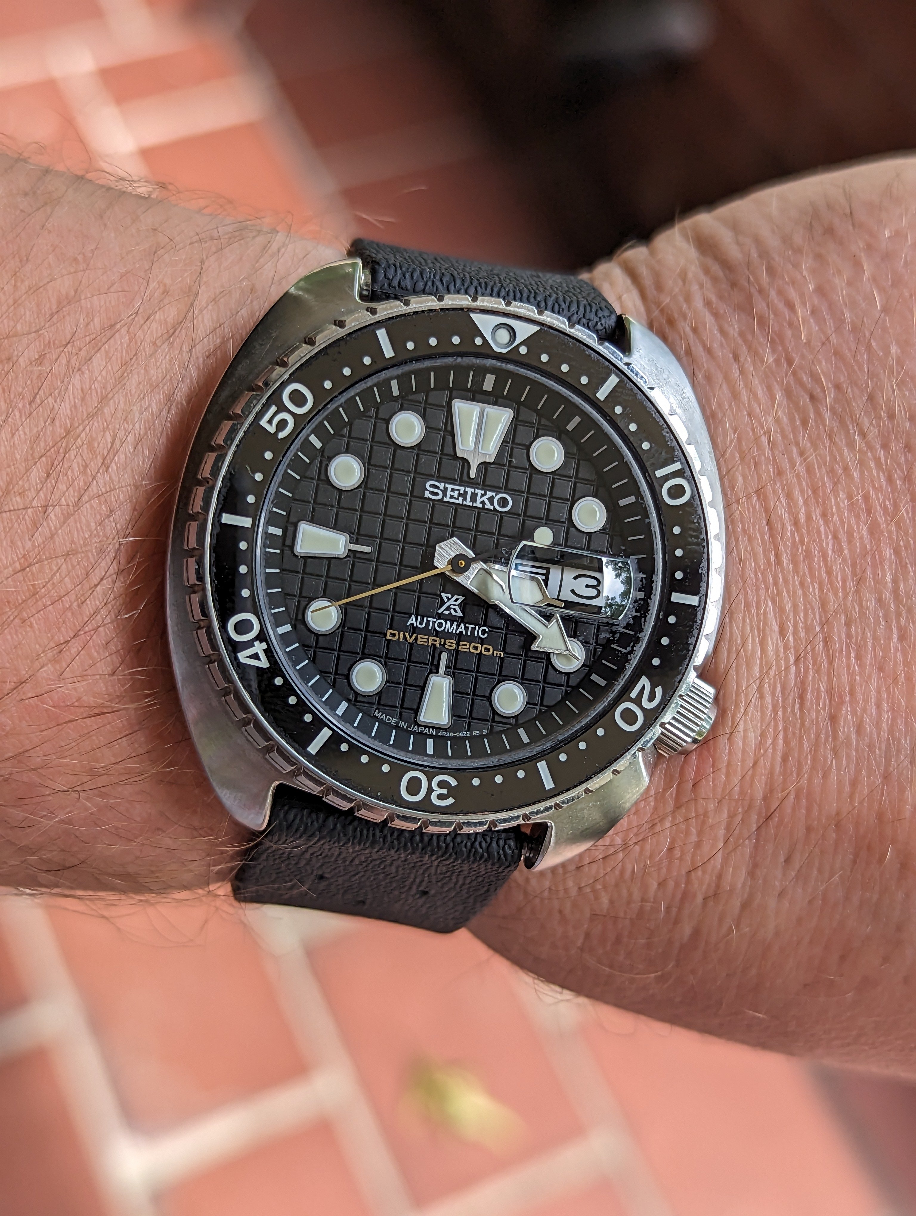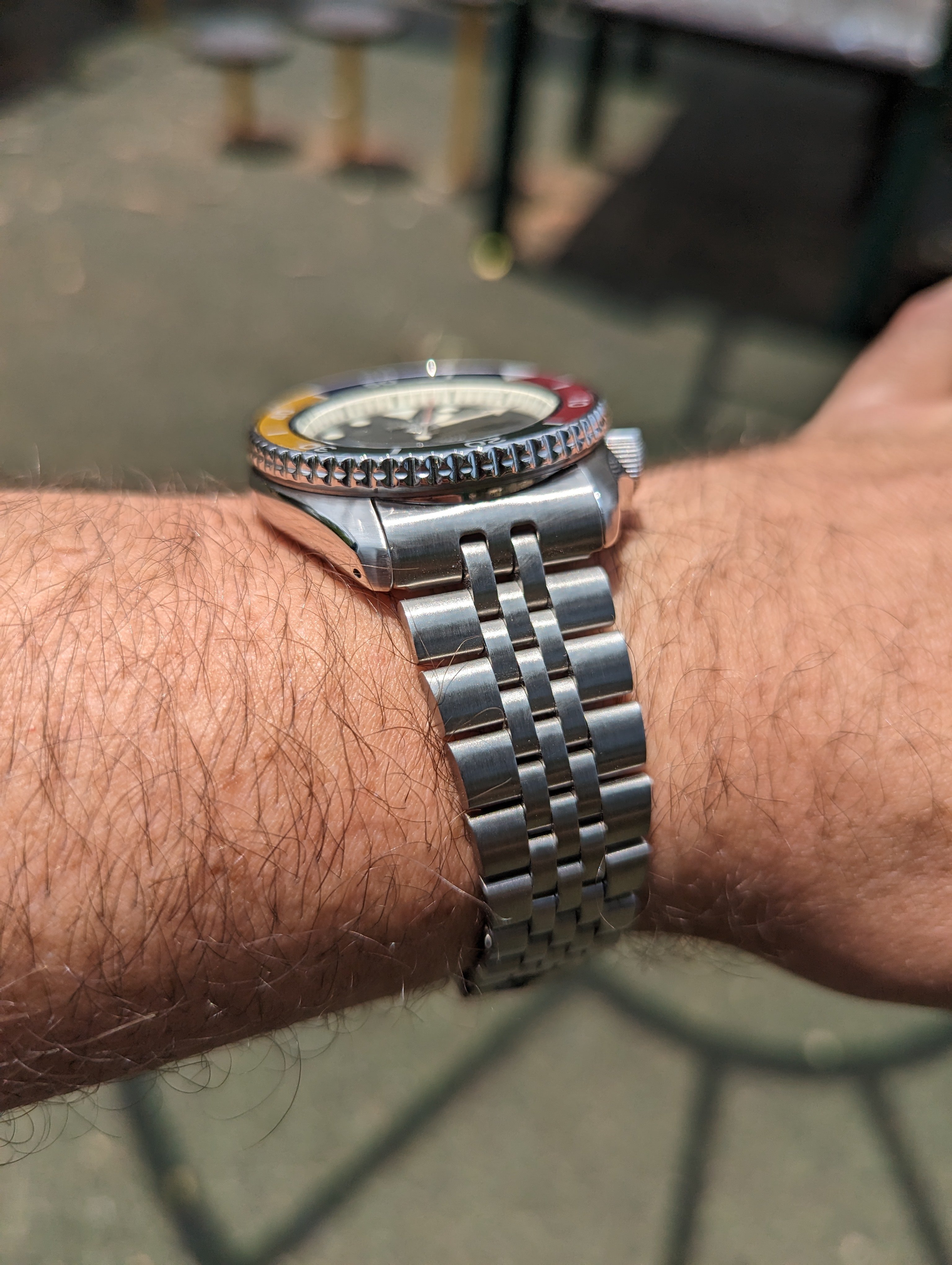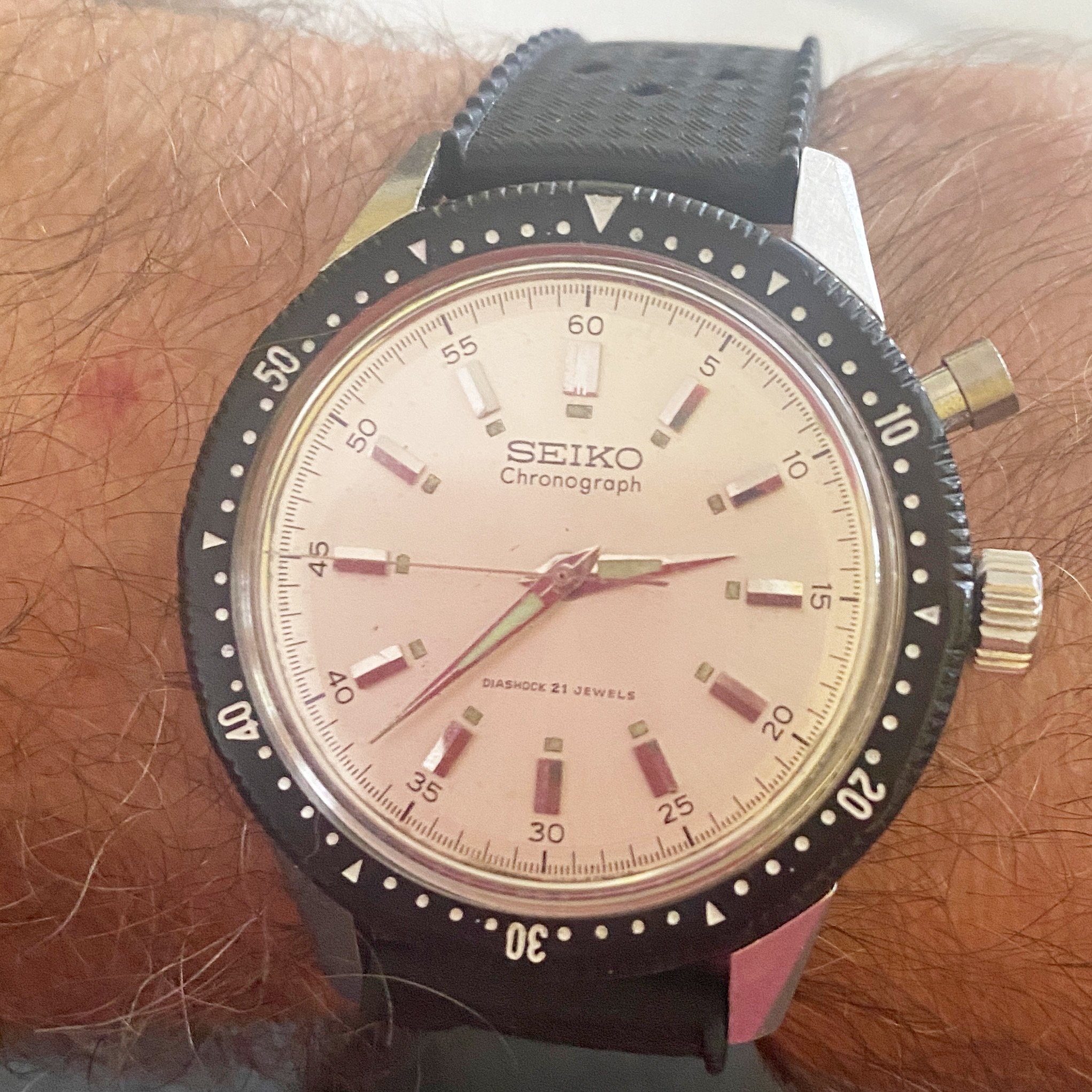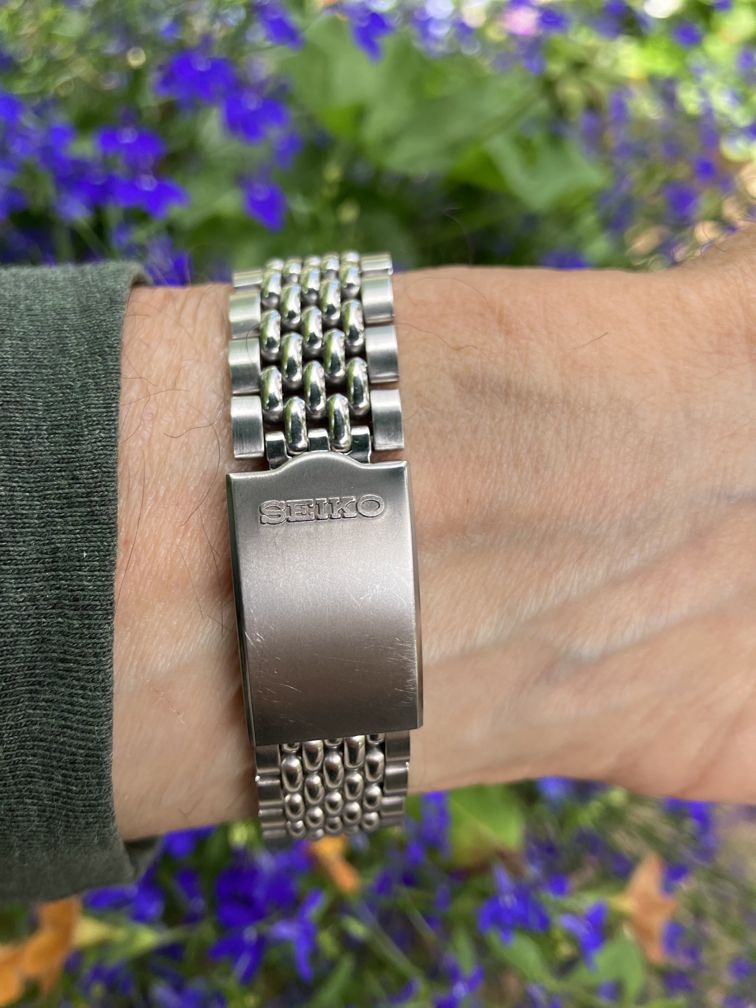 ·My bester 6309 for cutting the grass. Bought this as beater years ago, but rarely wore it. Recently got a uncle seiko razor wire bracelet for it. Total game changer. Fantastic bracelet. Bezel, dial and hands are aftermarket (i think). Next project is sourcing originals to put it bacl to factory spec