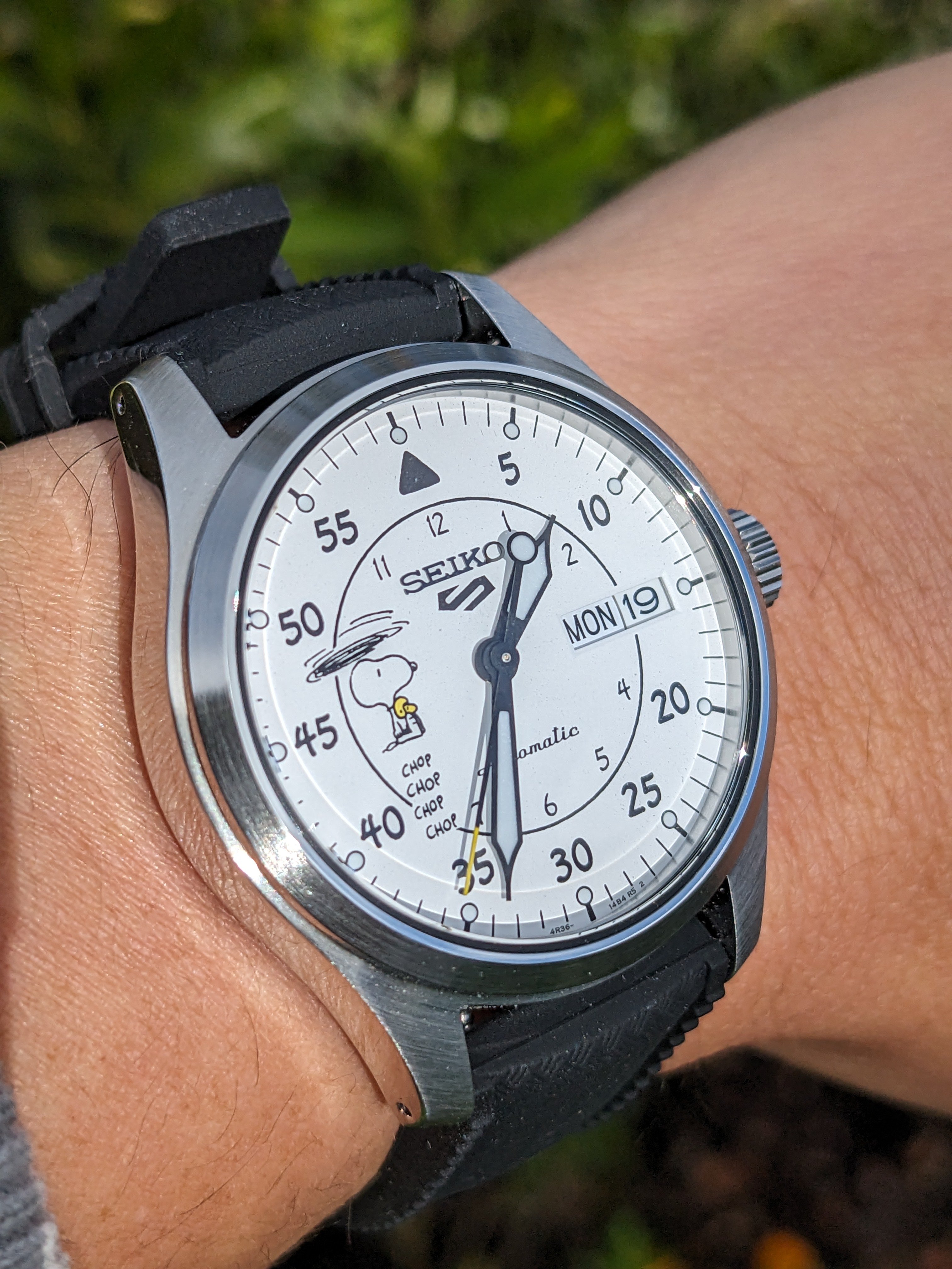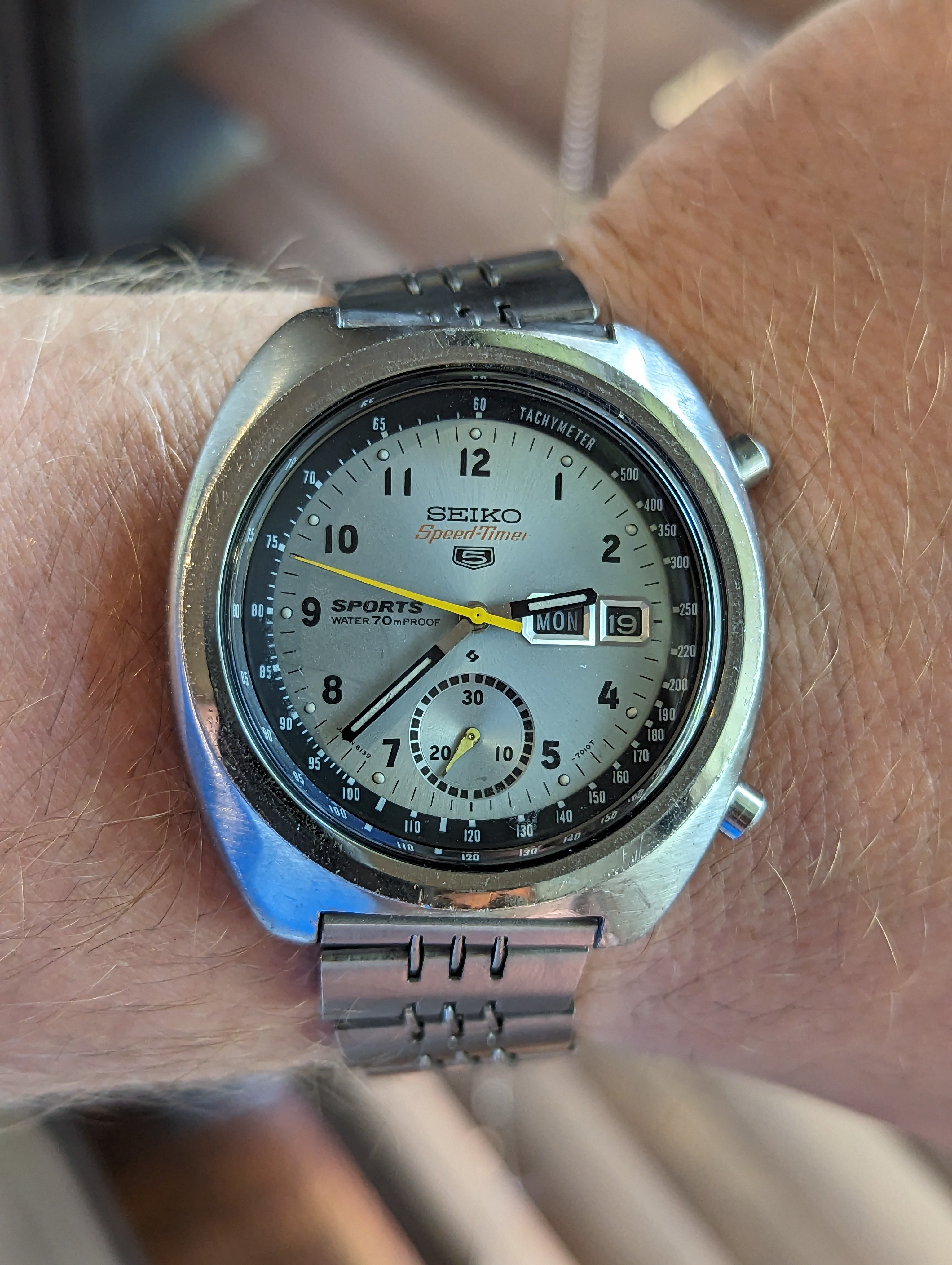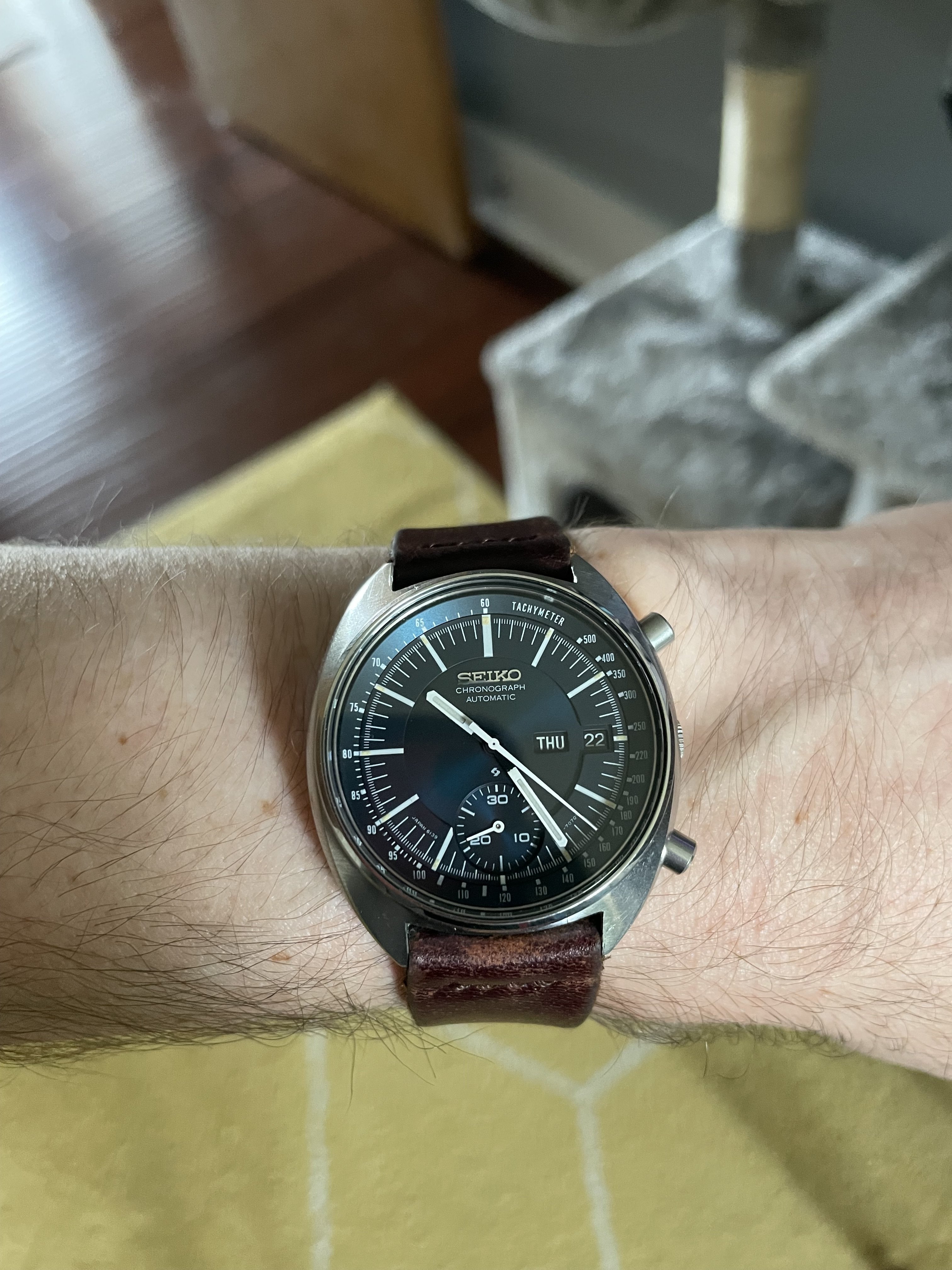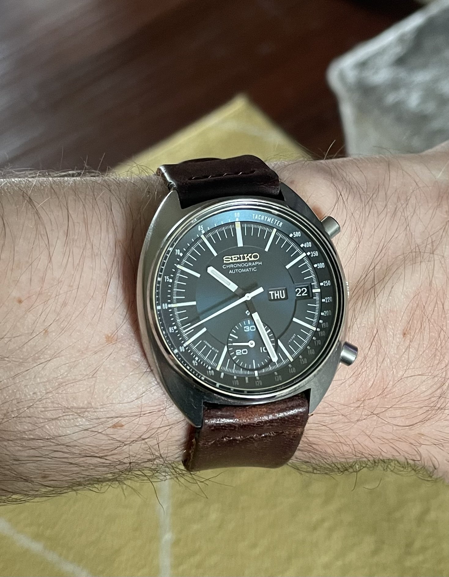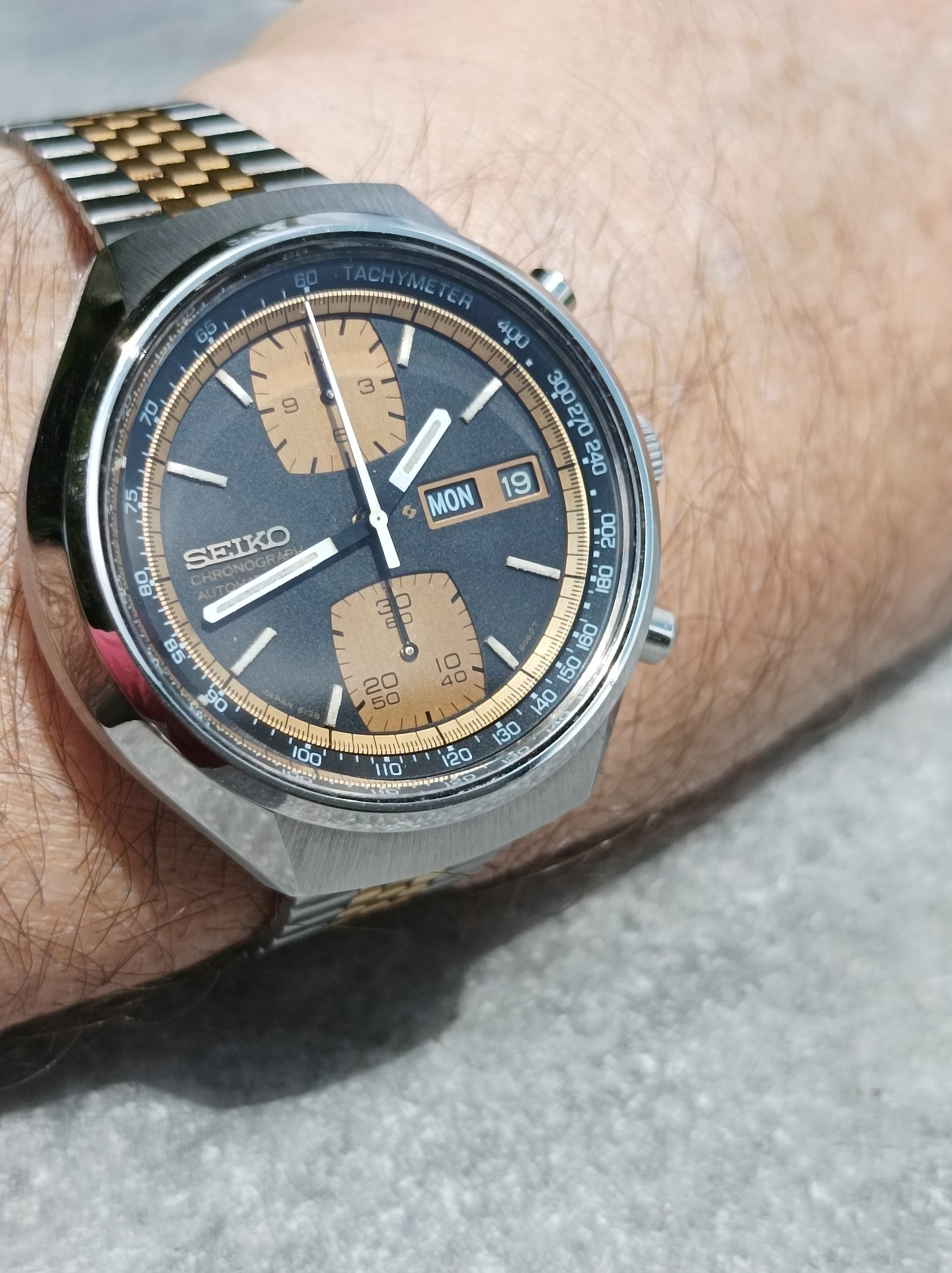 ·My bester 6309 for cutting the grass. Bought this as beater years ago, but rarely wore it. Recently got a uncle seiko razor wire bracelet for it. Total game changer. Fantastic bracelet. Bezel, dial and hands are aftermarket (i think). Next project is sourcing originals to put it bacl to factory spec