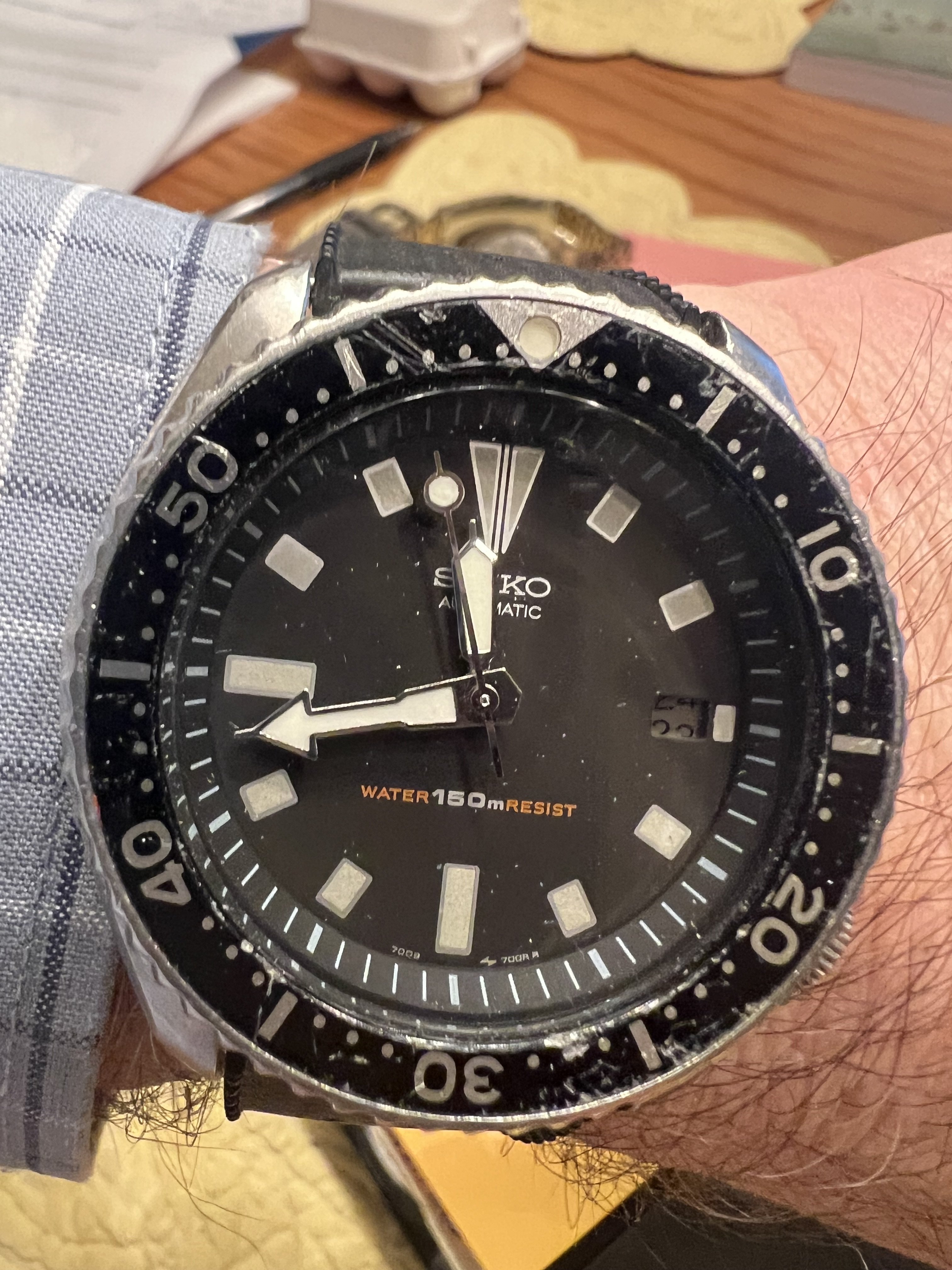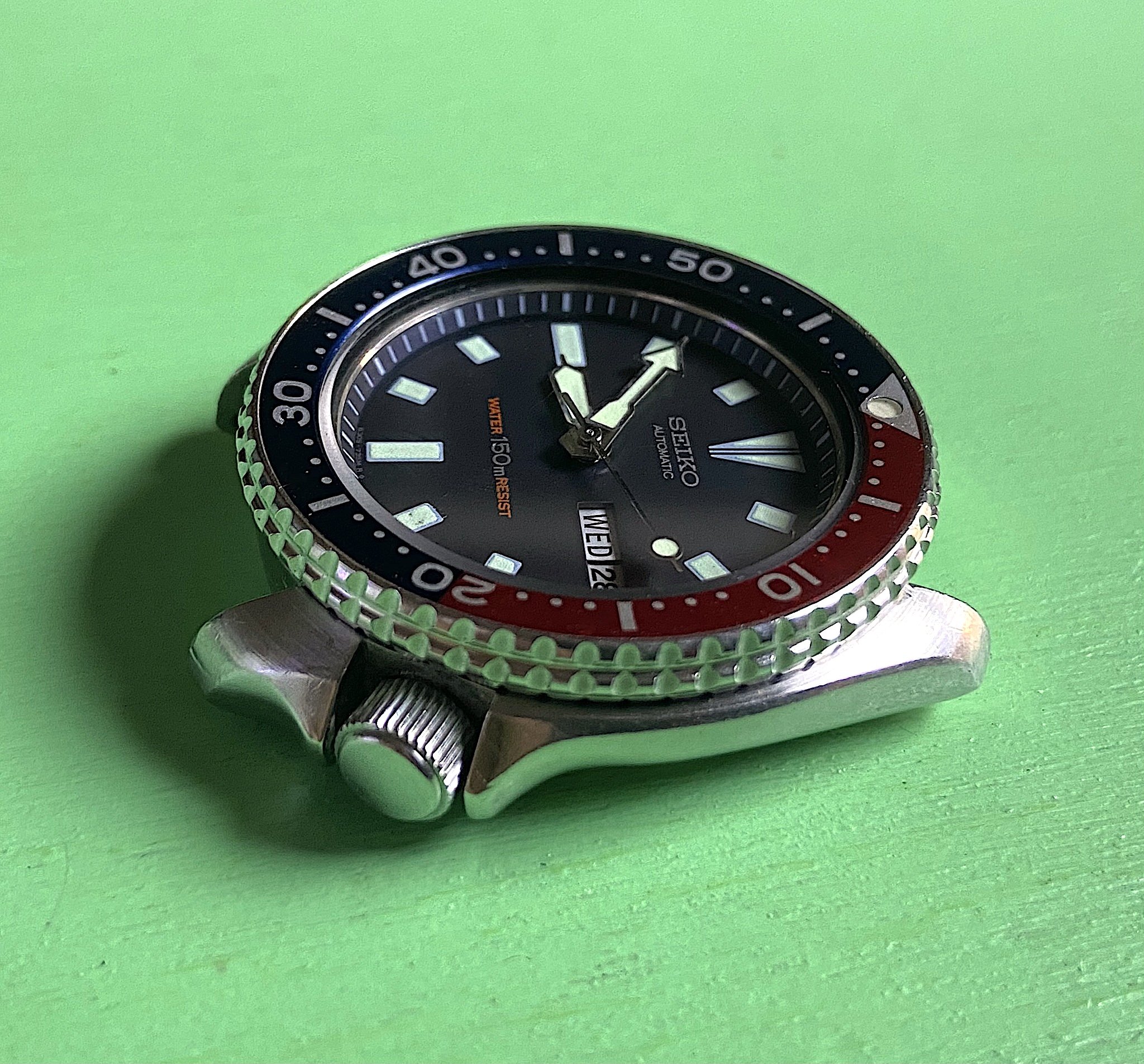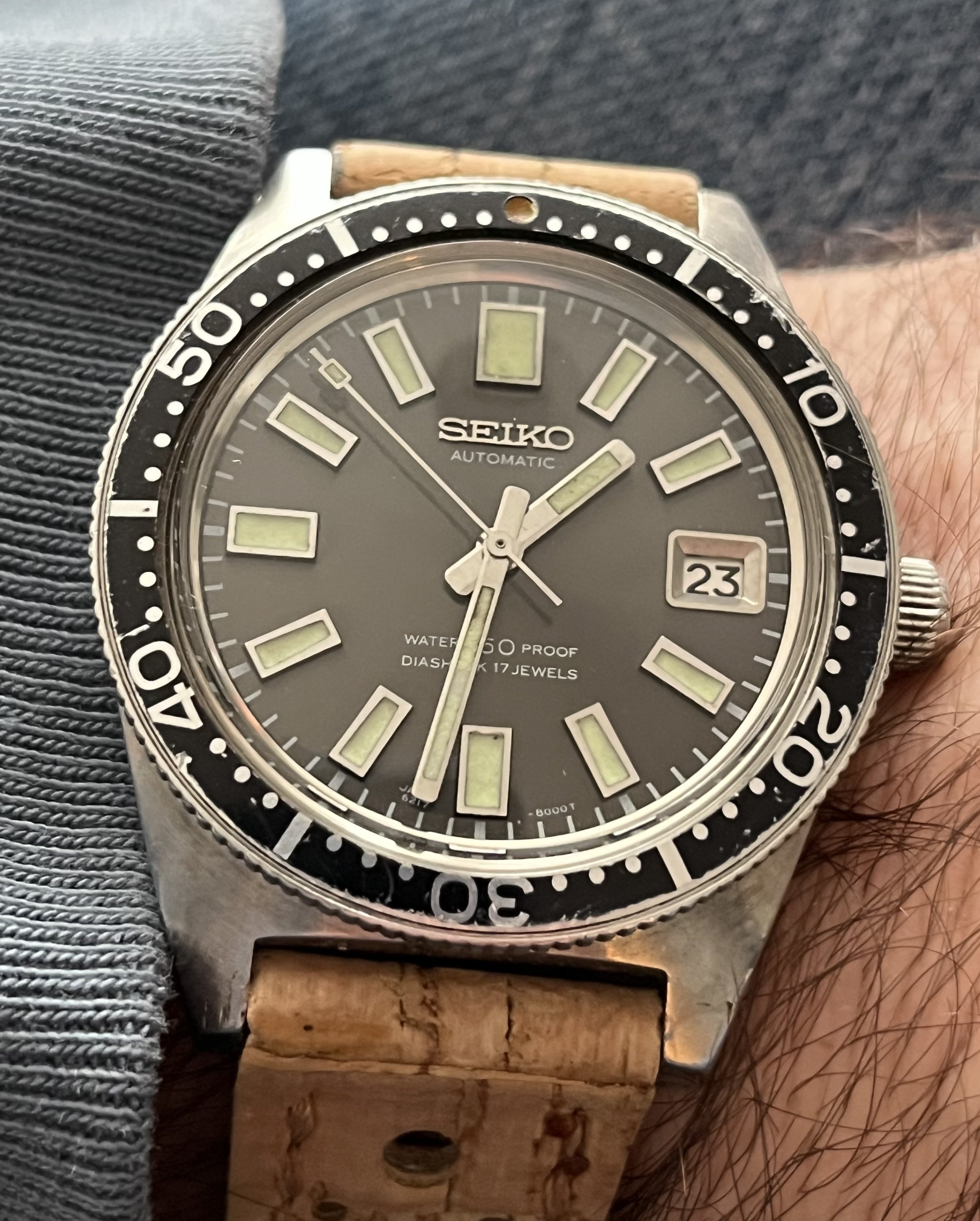 Confession time. I got tired of waiting for Seiko to release a 62MAS reissue that was both reasonably sized (hint, the original was 38mm) and reasonably priced (perceptibly short of BB58 money would be a start). So I took matters into my own hands. The case is from Ali Express, but the movement, dial, hands, etc. are genuine Seiko OEM. I guess this is a bit of a "WatchCo 62MAS" at the individual level.
