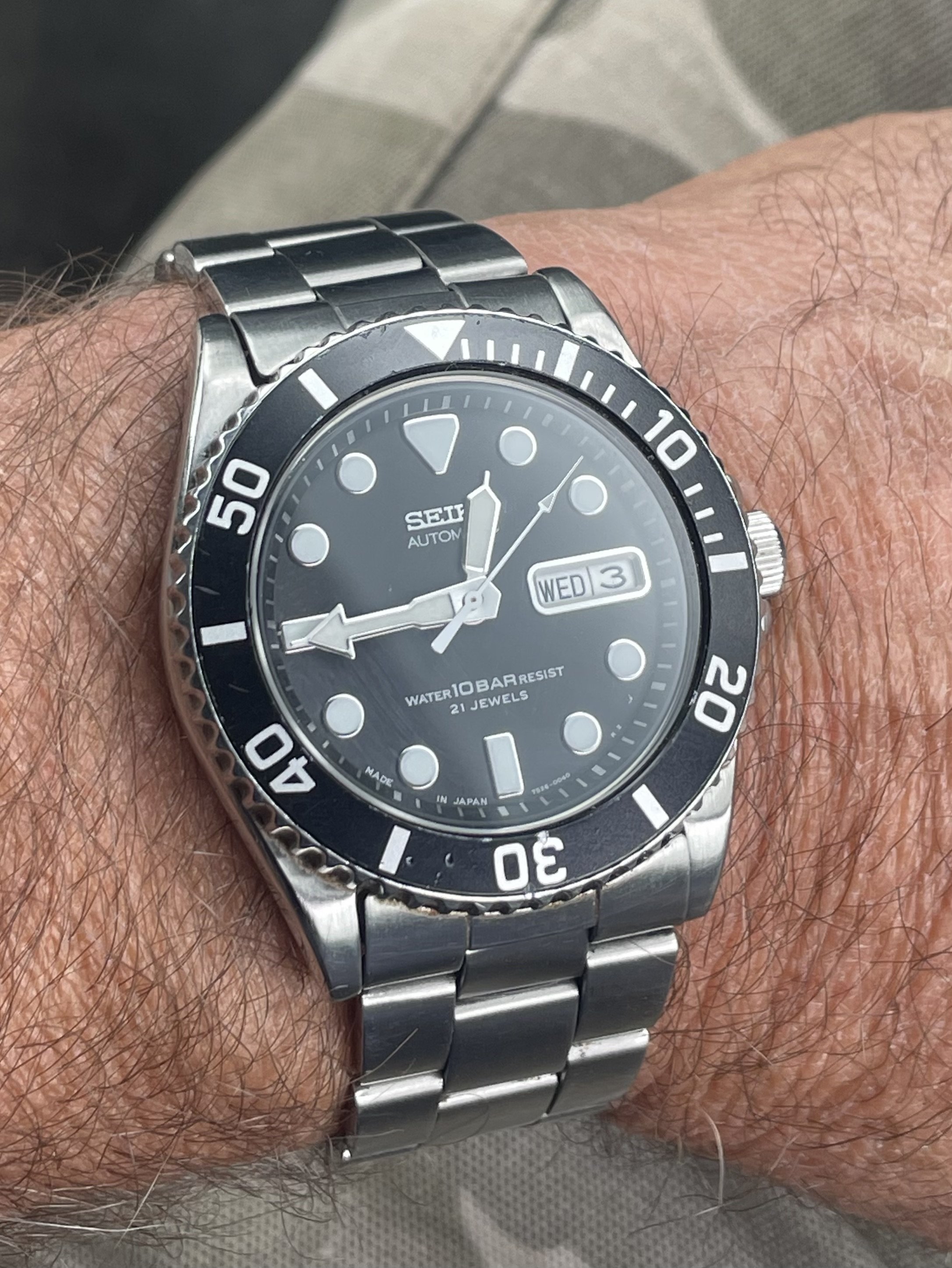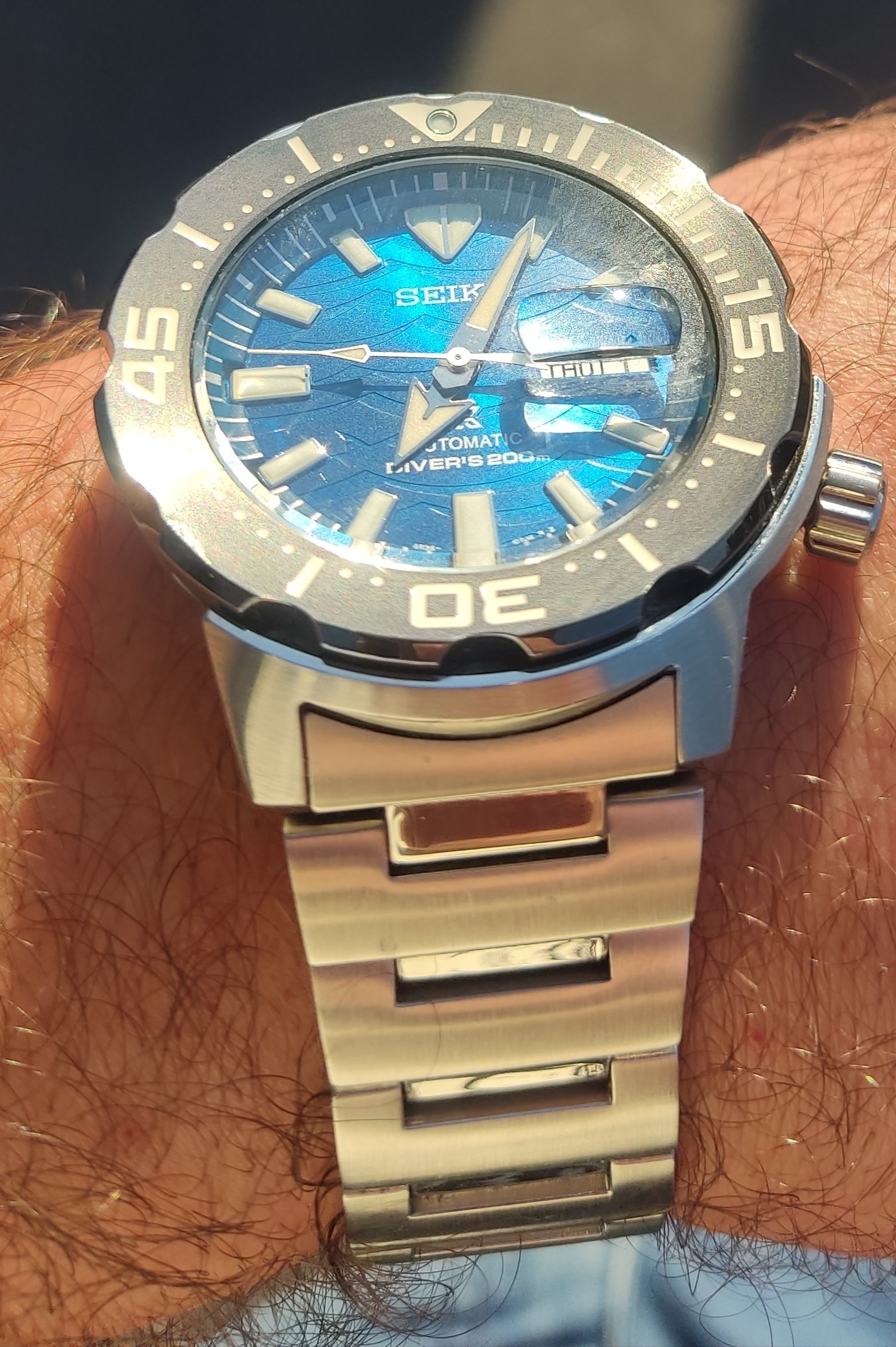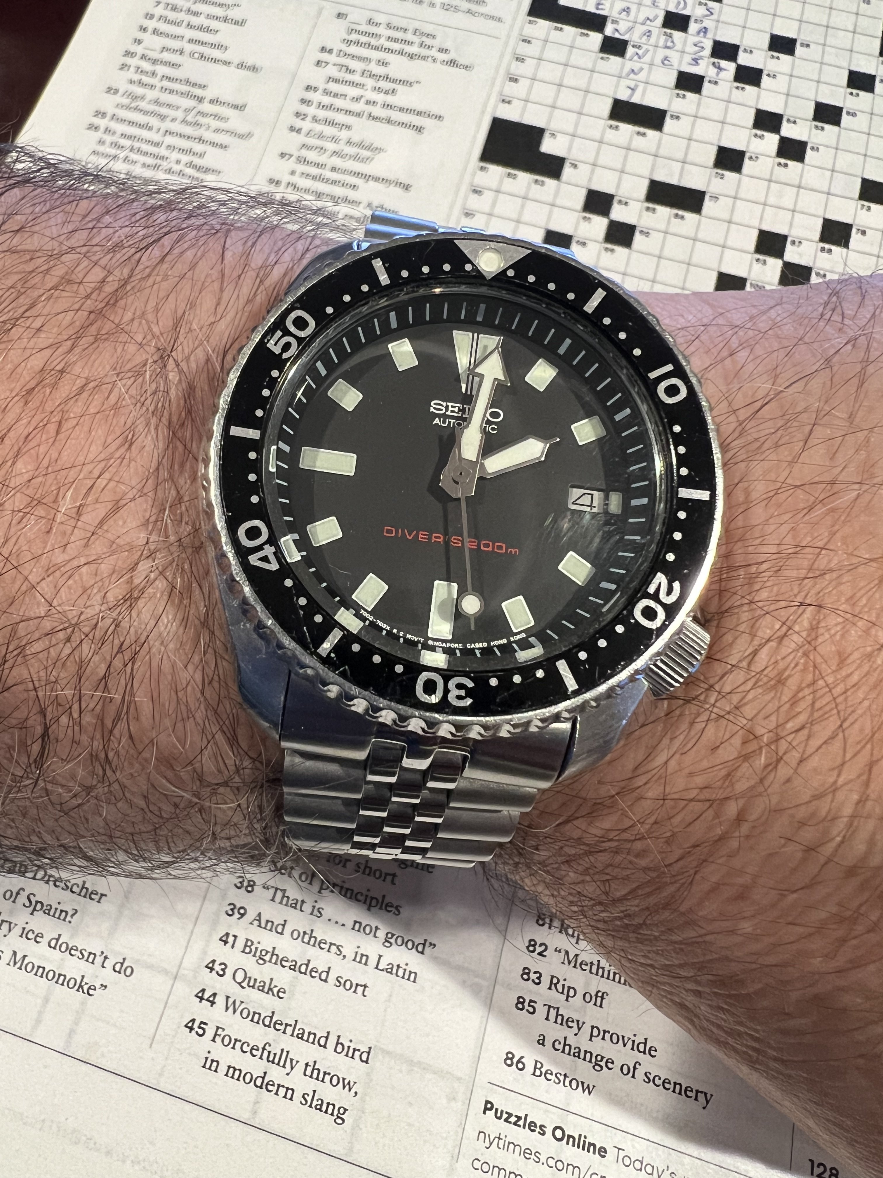Not wearing it now, but I tracked this SRP633 "Mohawk" after seeing it for the first time almost a year ago and pining for it since. Problem is, it's a salesman's sample and non functional.