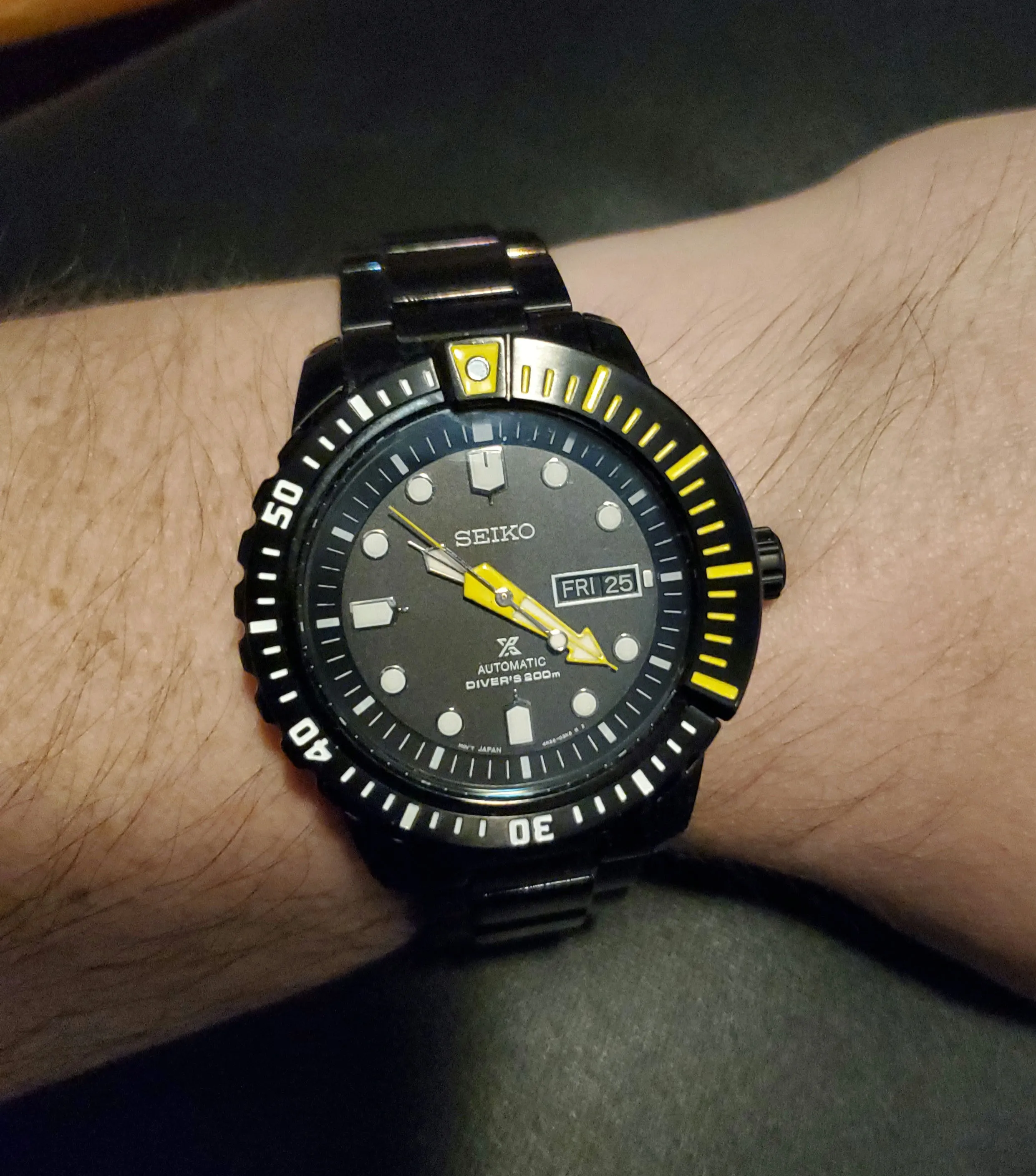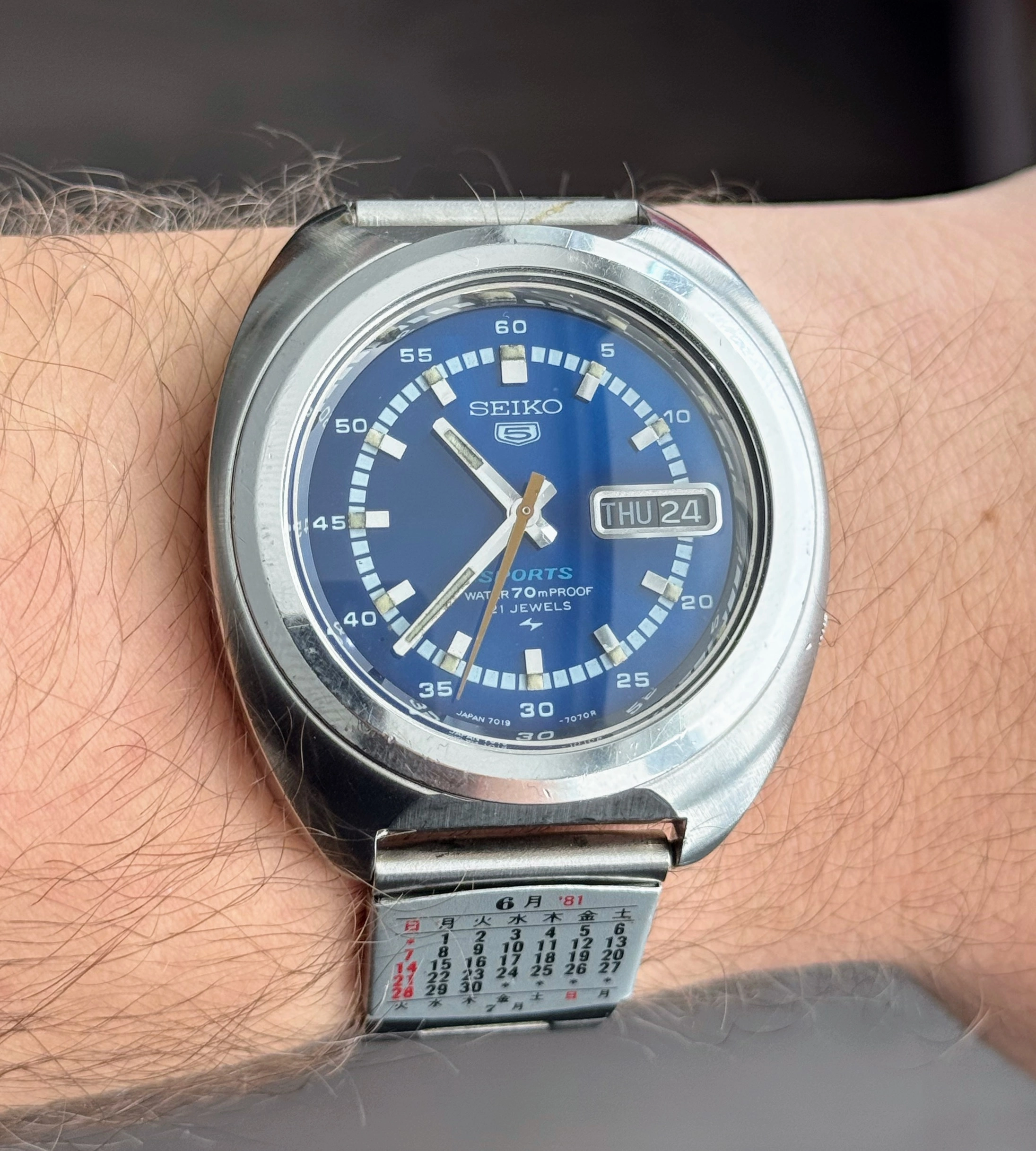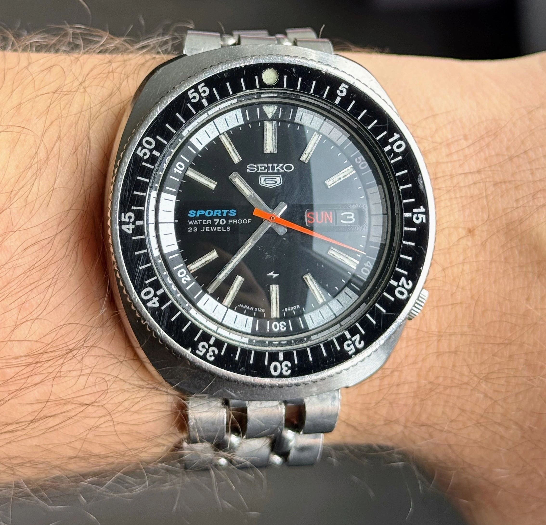 Finally got the Mohawk together. This started as a salesman's sample - no movement. Got a 4R36 movement off eBay and then proceeded to break the stem. That started a whole saga trying to get a crown. The Seiko original isn't available, tried two that looked similar. Didn't work as the stem seemed a bit too short. Ended up with a Crystal Times CT272 crown that seals screwed or unscrewed in 6" of water. Plan is to buy a CT208 crown which looks like the Seiko crown and then test to 200m. I also installed a flat sapphire crystal with blue AR that I found on eBay. The Mohawk isn't supported by the aftermarket so it was hard going.