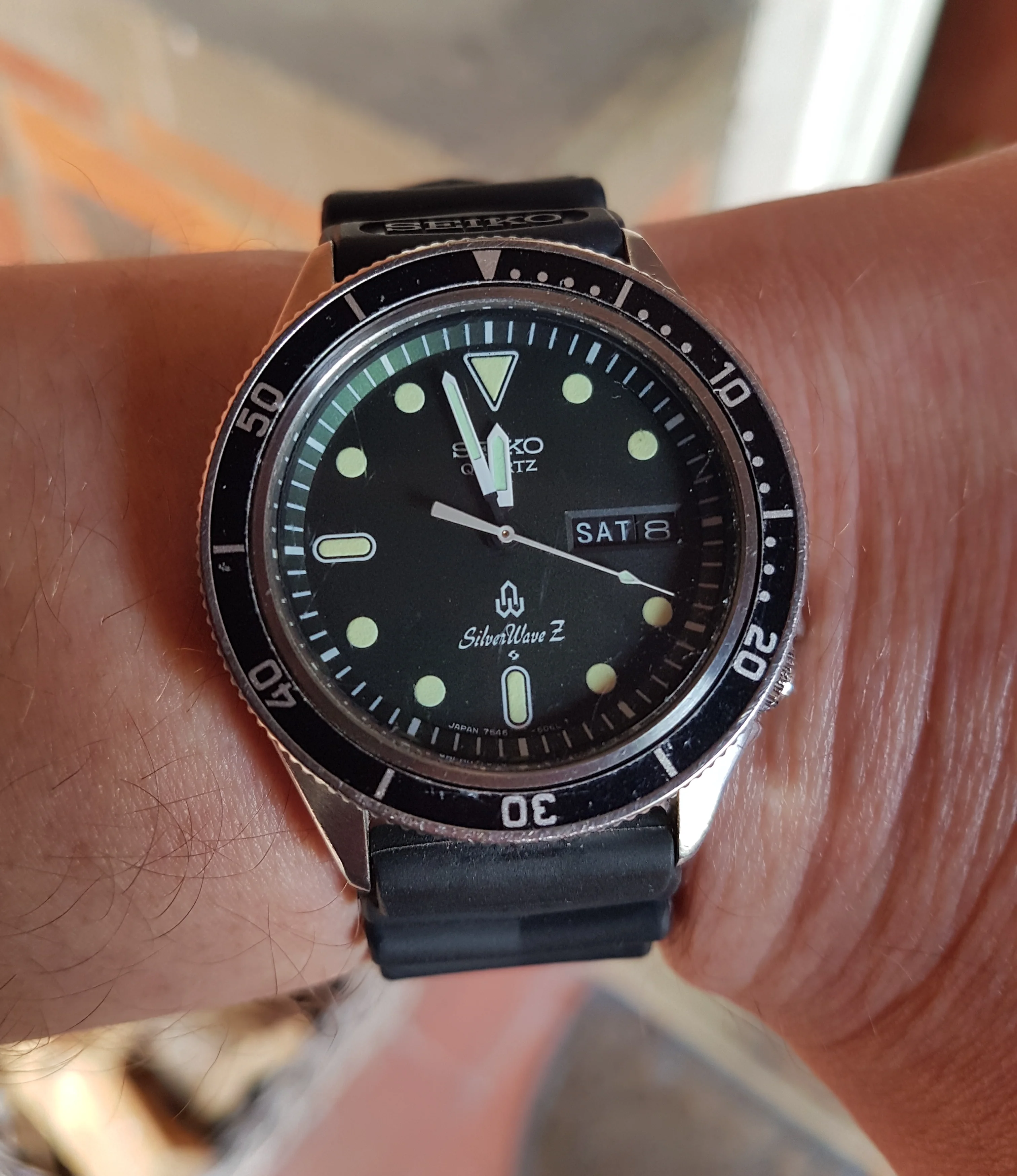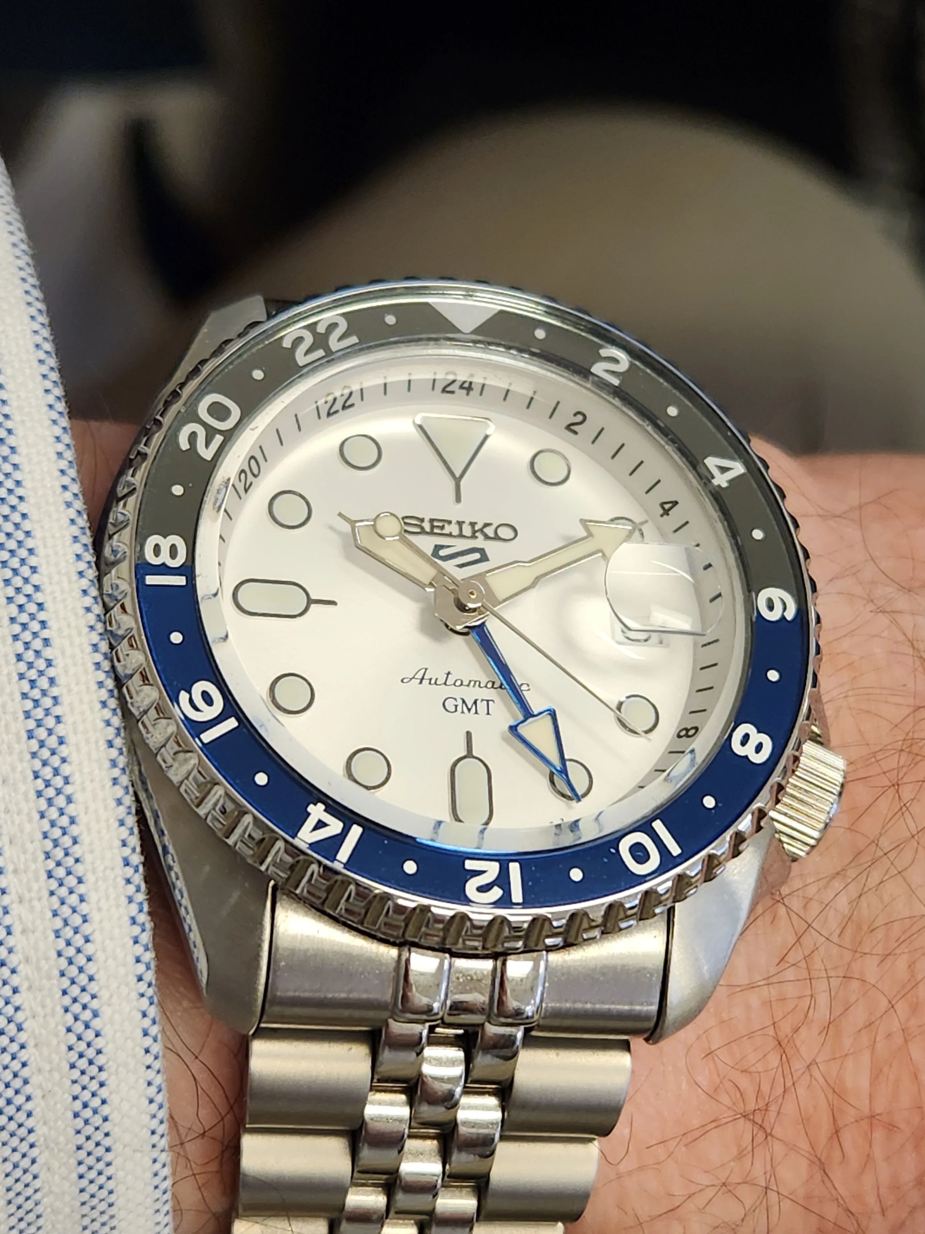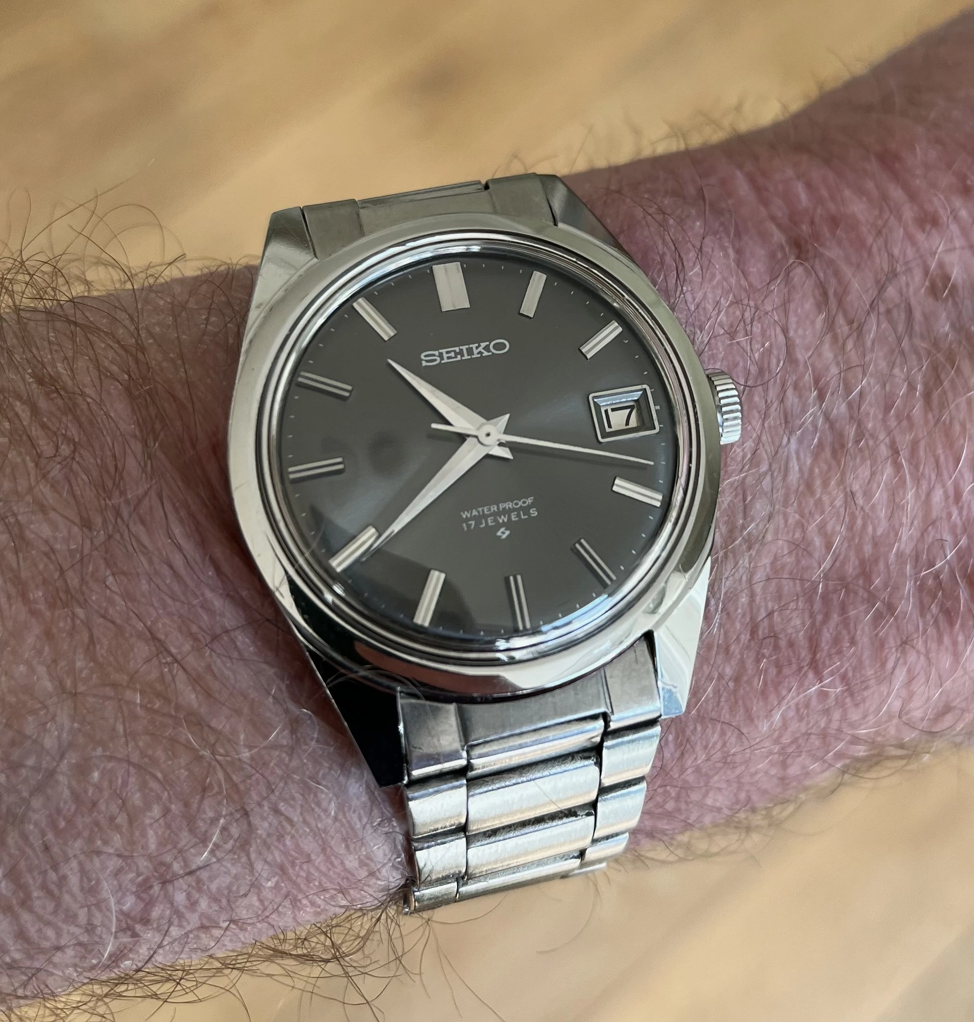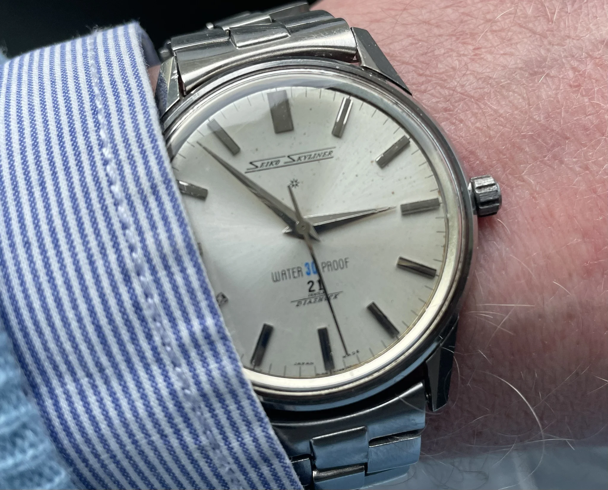Got one of these because I love the Skyliner font. This one is a Special Dial variant, the only Seiko that has the SD mark on the top half of the dial instead of above the 6 o'clock marker. Some spots on the dial, but with my eyesight I don't notice them when on the wrist.