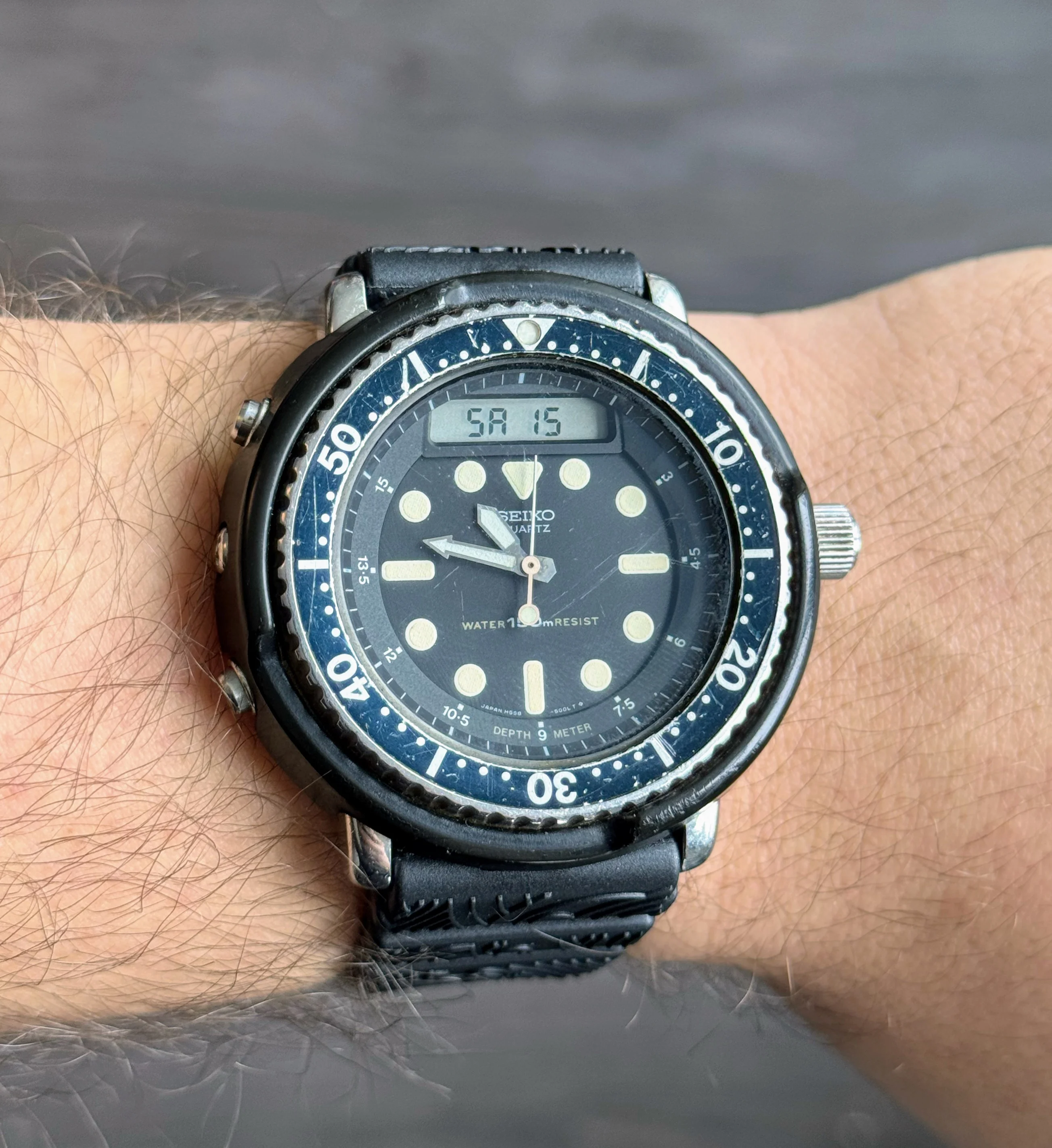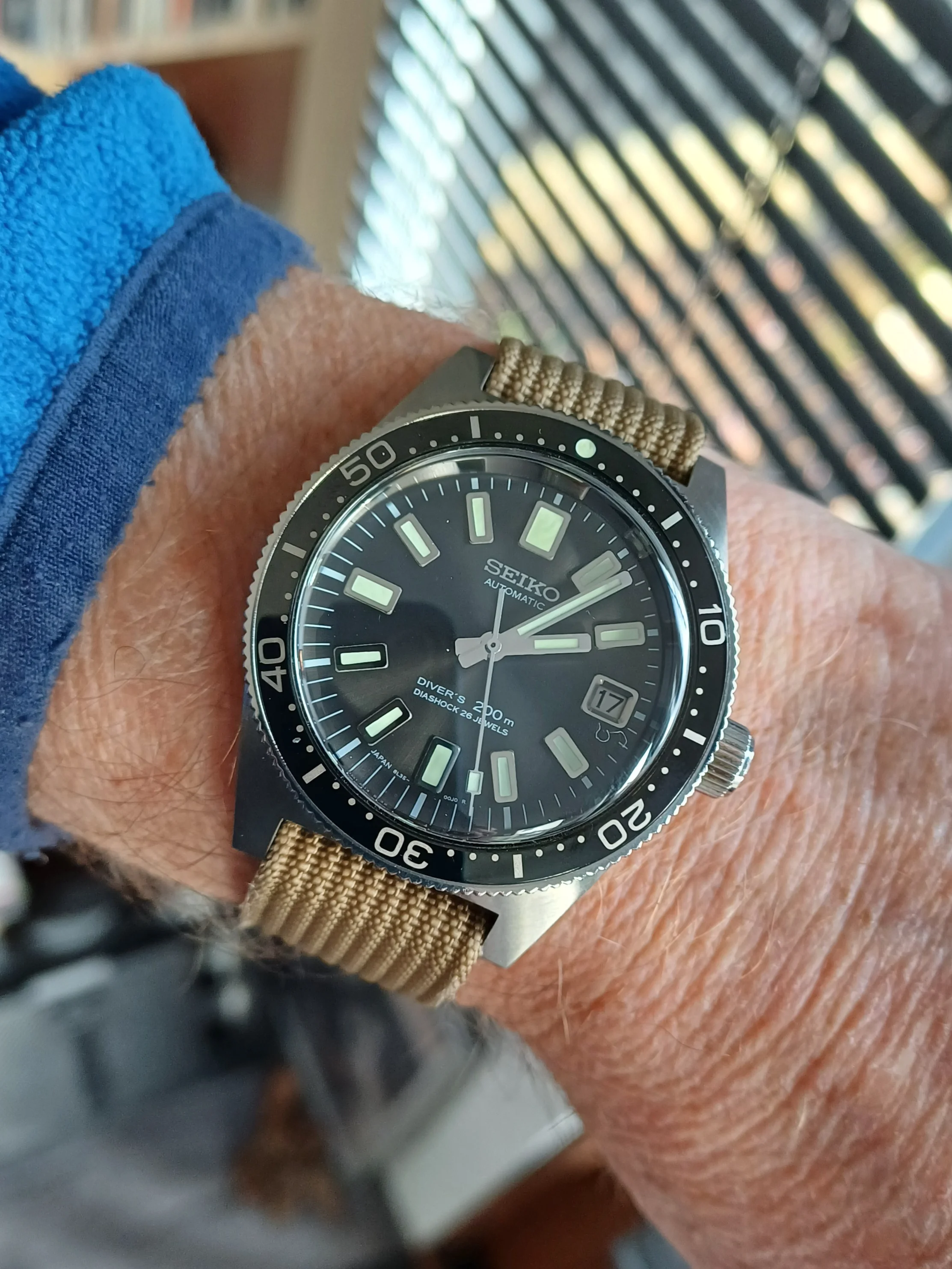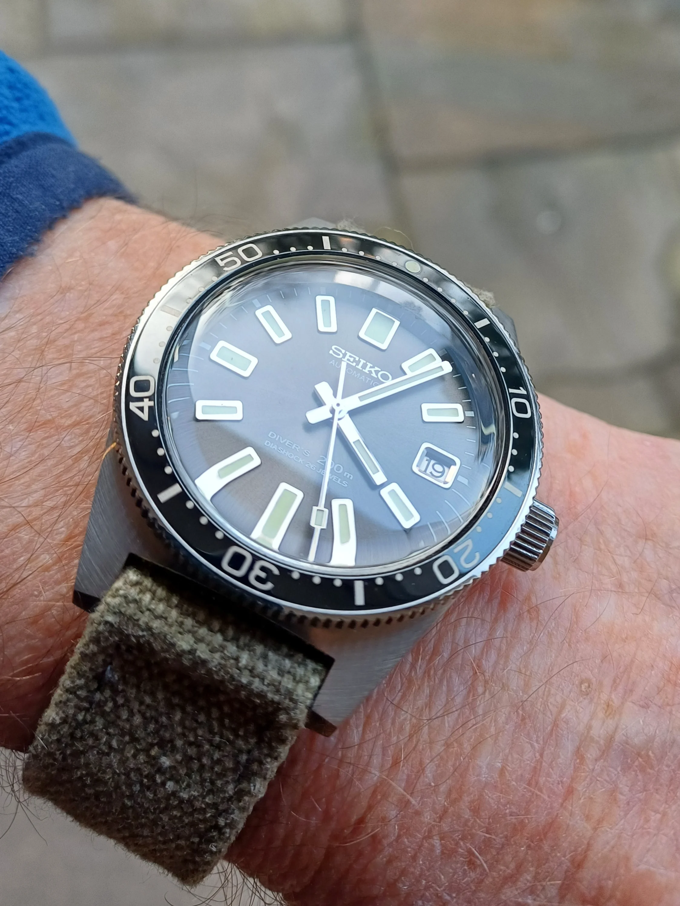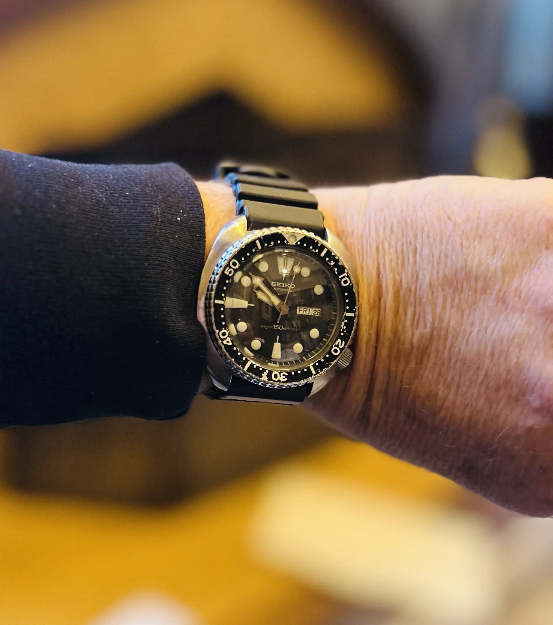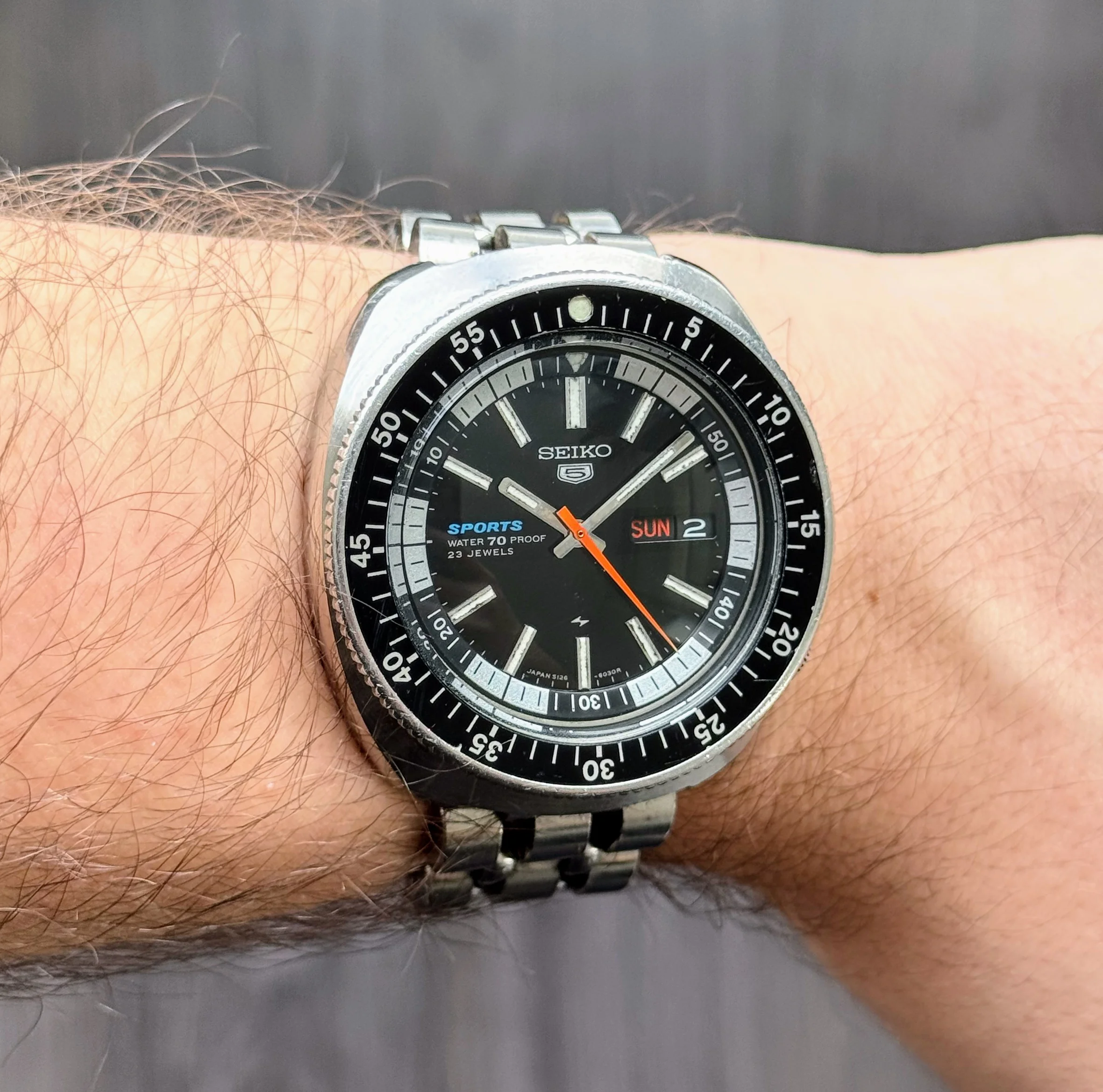 Got one of these because I love the Skyliner font. This one is a Special Dial variant, the only Seiko that has the SD mark on the top half of the dial instead of above the 6 o'clock marker. Some spots on the dial, but with my eyesight I don't notice them when on the wrist.