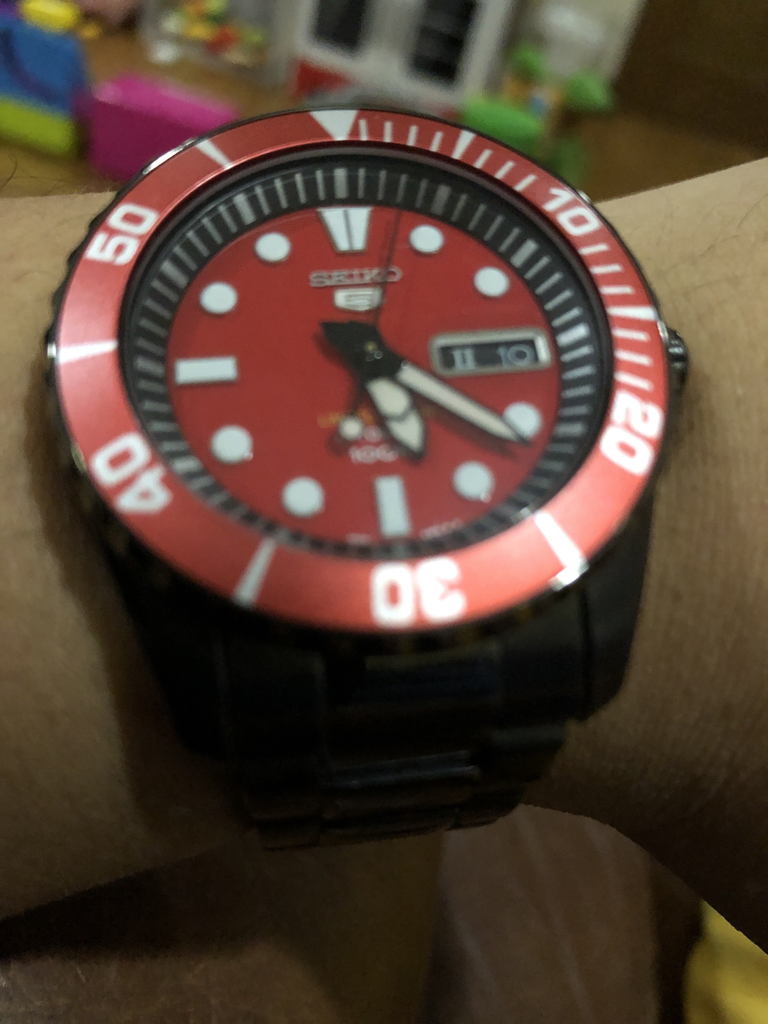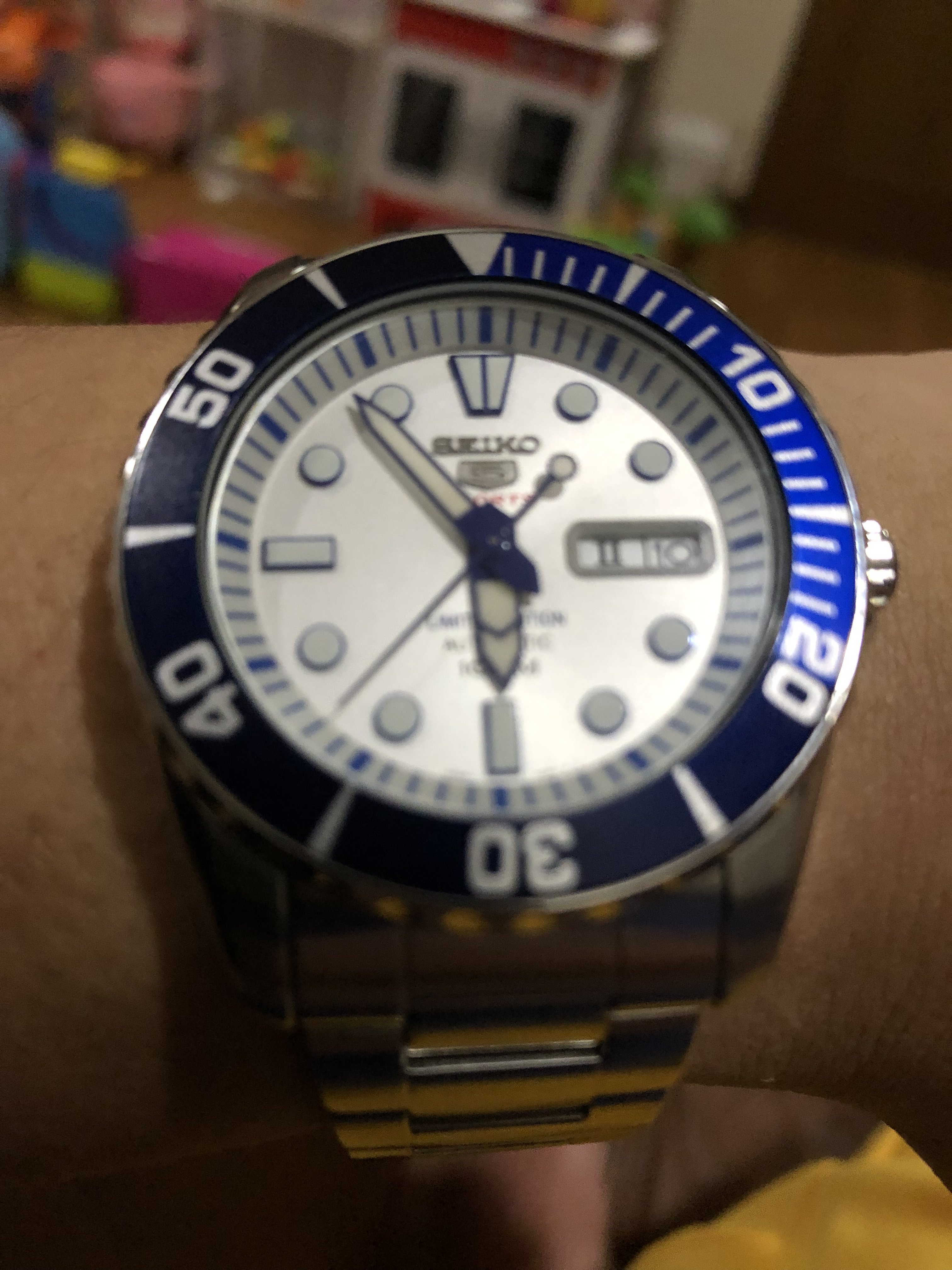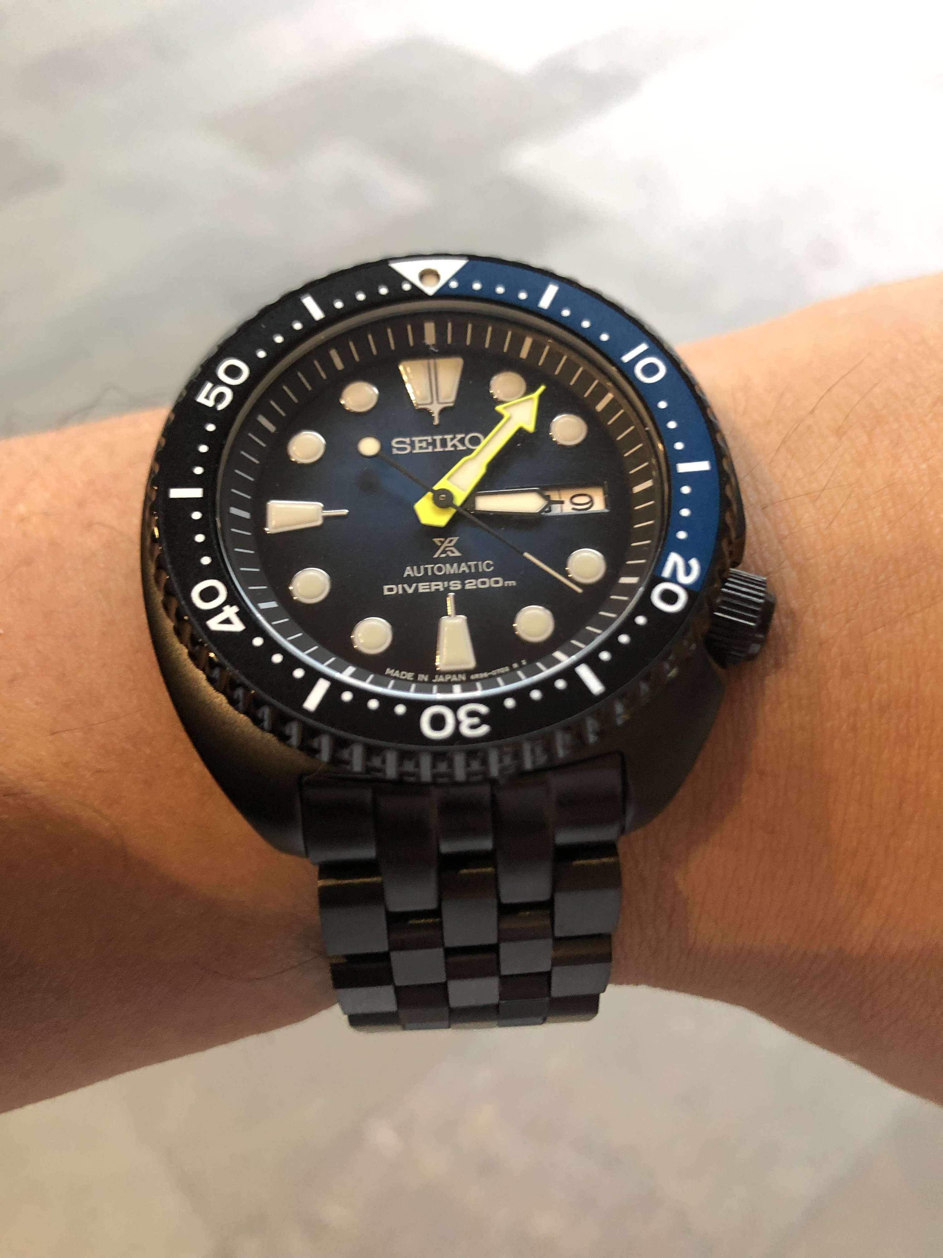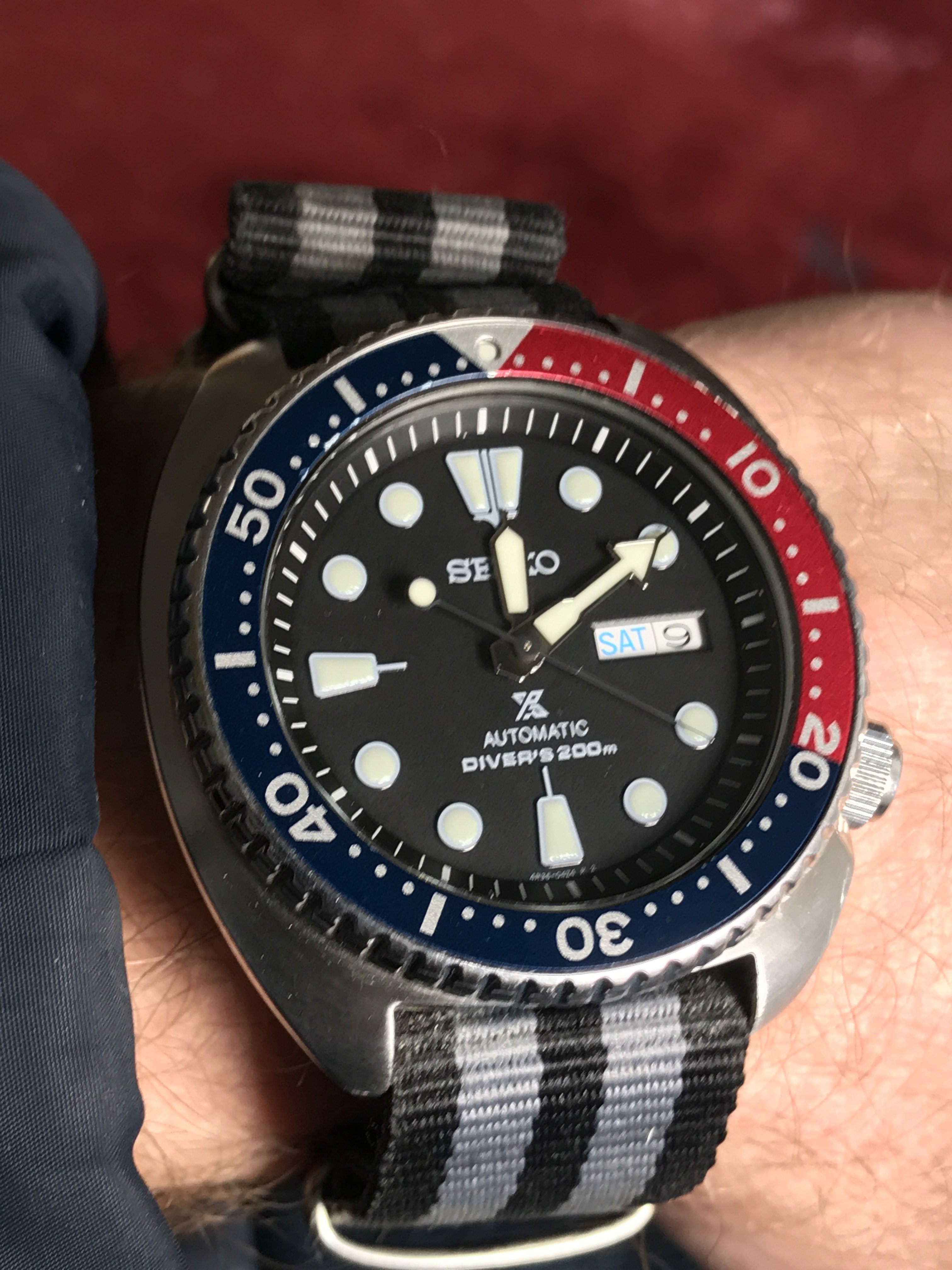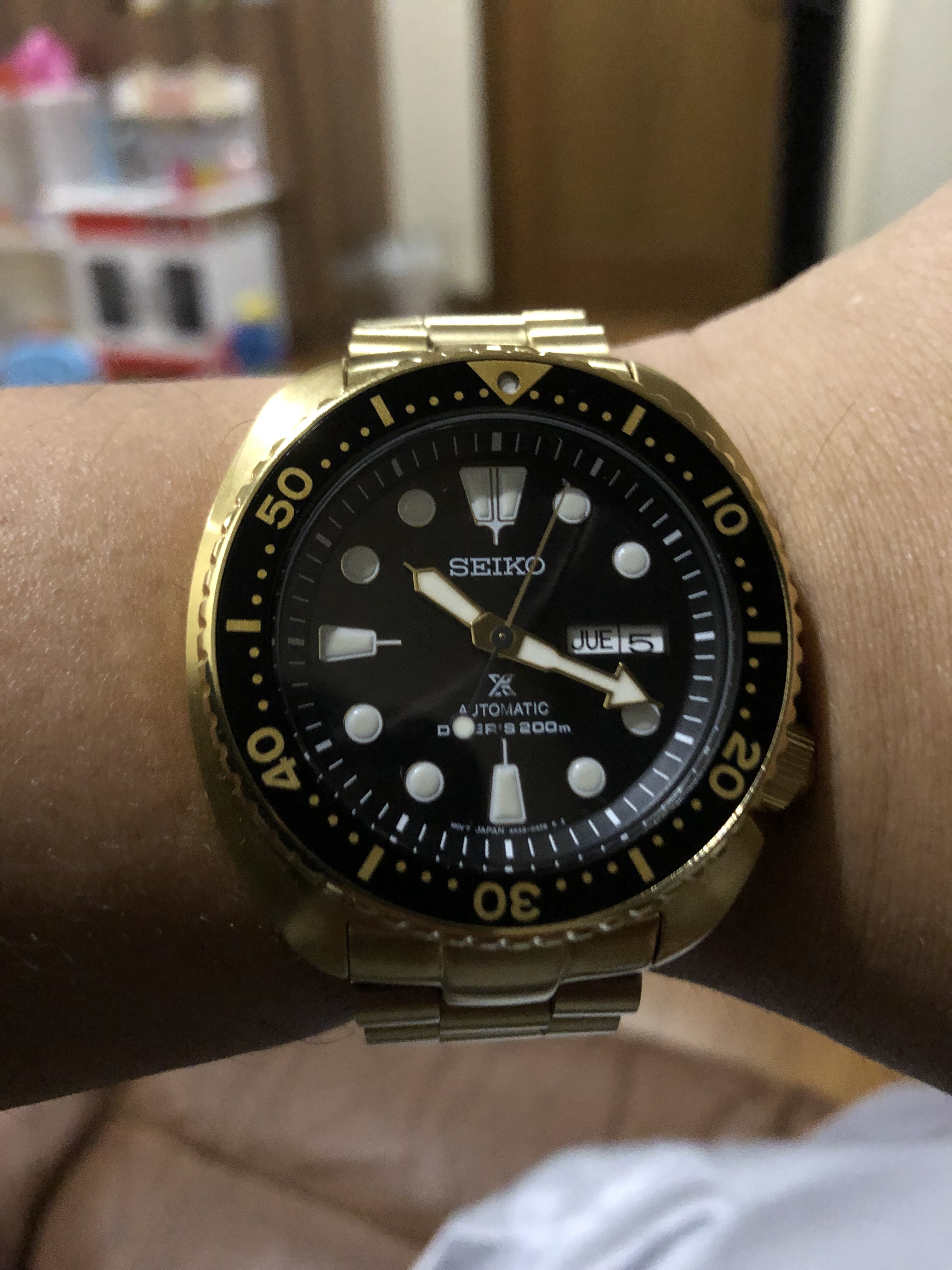 I am delighted with this one, which arrived today. I’ve had my eye on it for some time now; it is the first watch I’ve picked up in over a year: a Seiko A965-4000 “talking watch”. It announces the time in an English female or German male voice!