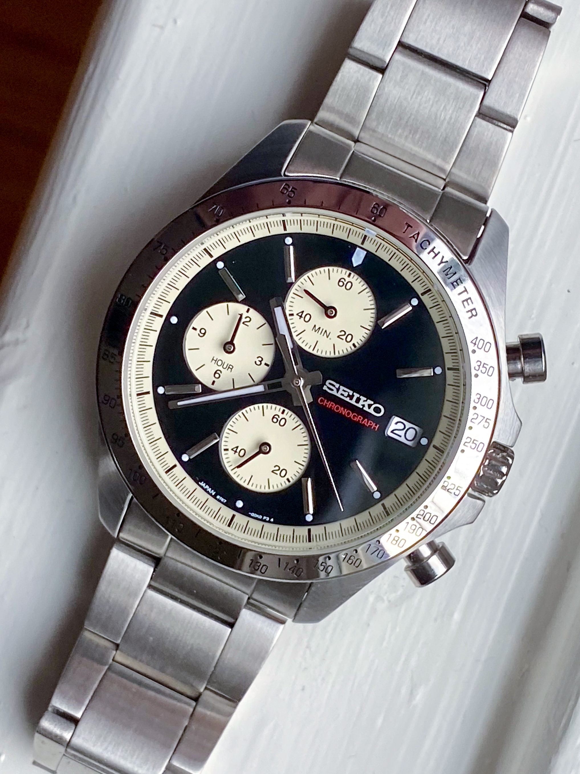 My most recent pickup is now the only “modern” Seiko in the watchbox... the SZSJ005 was a collaboration between Seiko and Japanese fashion brand Nano Universe. Impressively, the presser fully acknowledged it was heavily inspired by the Rolex Daytona. At least they’re upfront about it 😜
