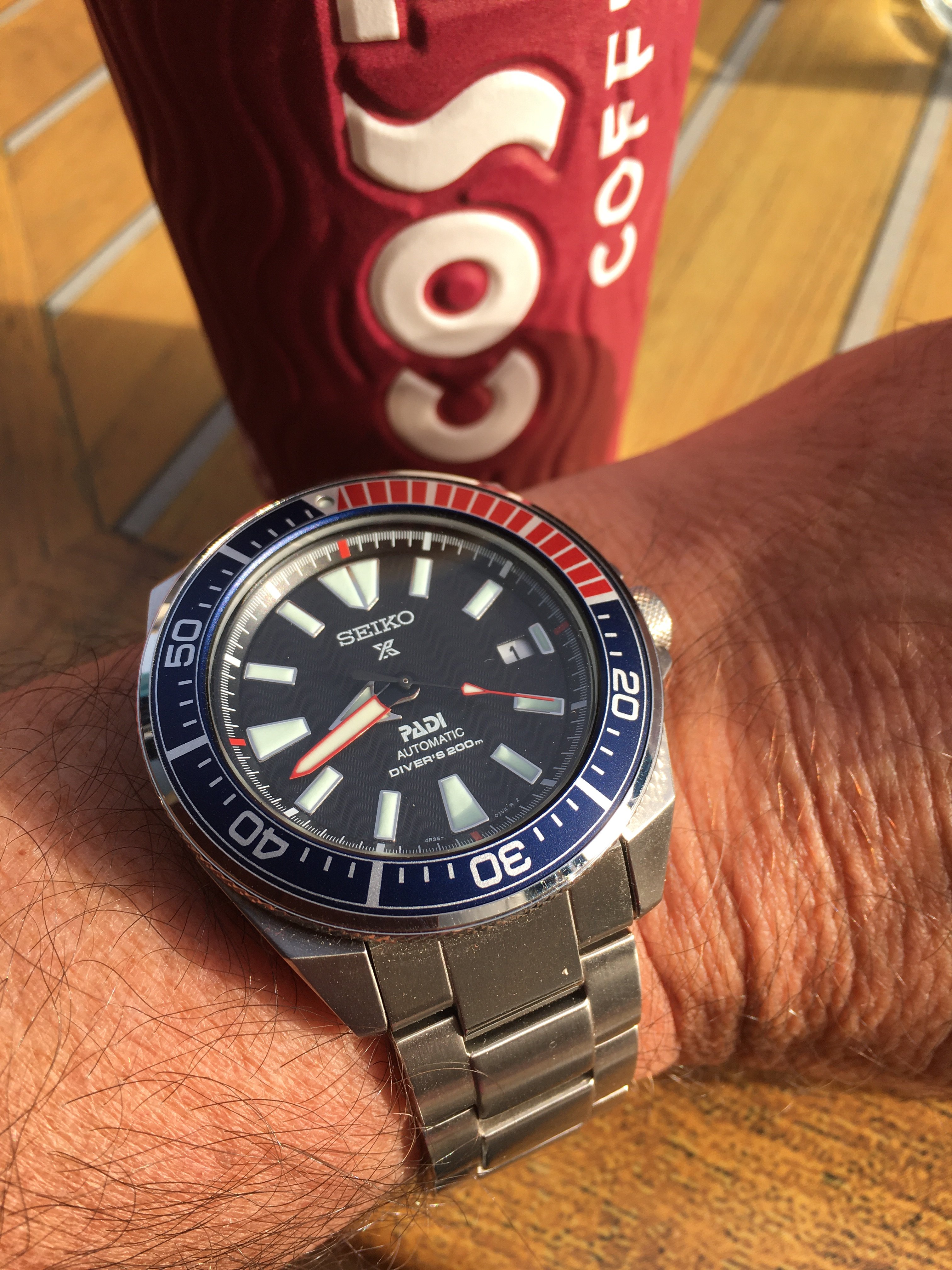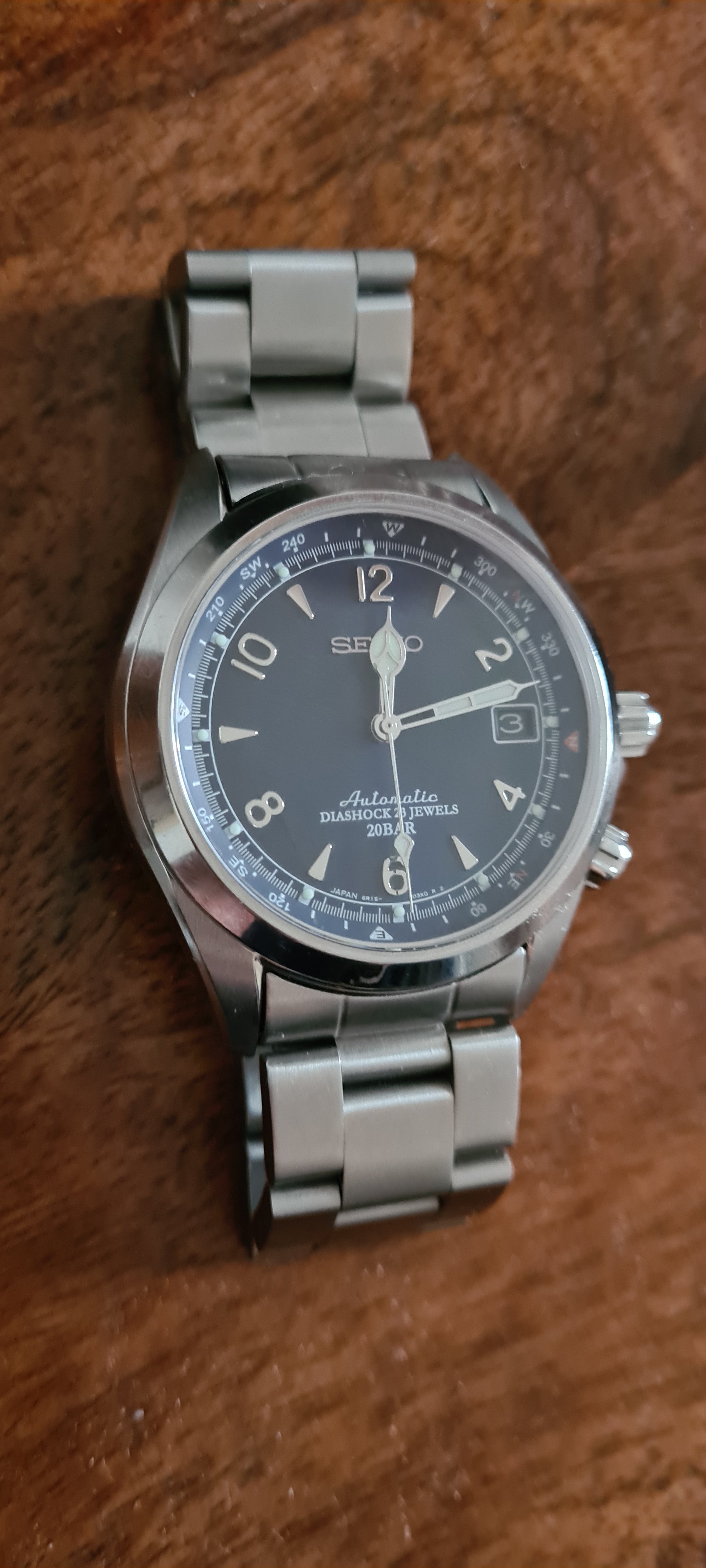 My Blue Alpie limited edition. Before seiko started putting out limited editions willy nilly they put out this. Many thought that this was the final Alpinist in the line. It wasn't the case as they brought out a slightly different version in the prospex line but I feel that this one with its solid steel caseback is the true and last successor to the Sarb017.