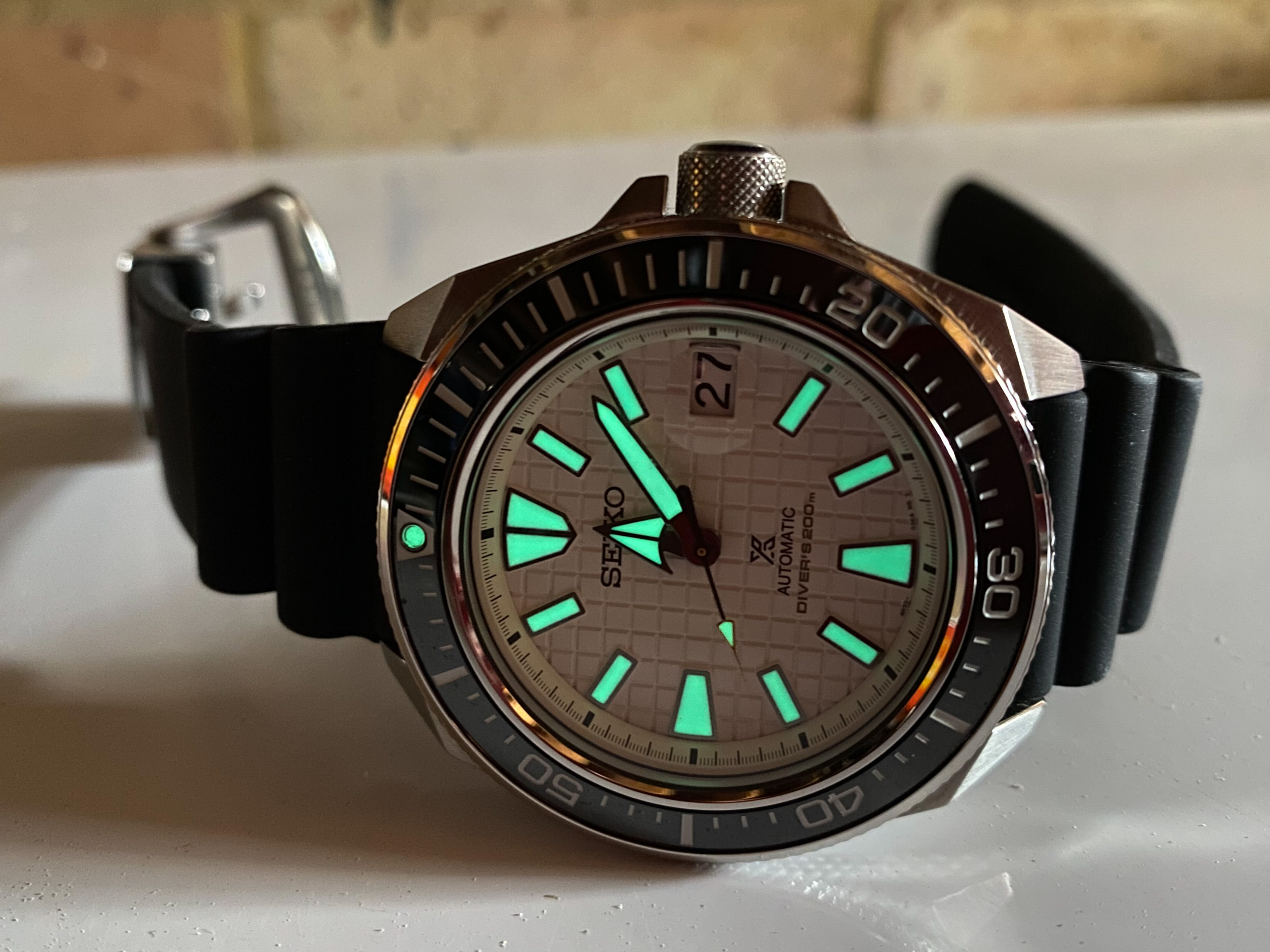 Posts 1,617 Likes 8,653 Jerseyhammer ·Aug 18, 2021 Not wearing it on my wrist just yet, but this Seiko SRPH19K1 just arrived !