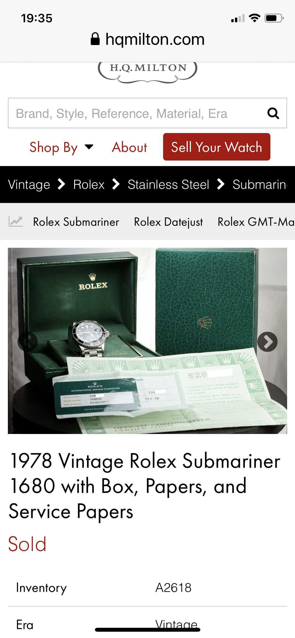 ·Looking for both inner and outer boxes for a 1978 Rolex 1680 Submariner. Be nice to find one in the U.S. if possible, shipping into the US is getting difficult.