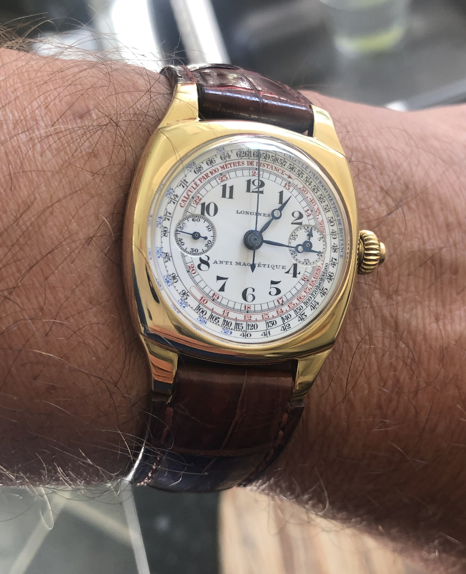 ·Looking for a numbers matching Longines single button chronograph, enamel dial in, made in 20's or 30's, in gold or silver. Condition is very important, enamel dial must be perfect no hairlines, chips or cracks. Prefer multi-colored dial but would entertain a solid white. Must be a minimum of 35mm.