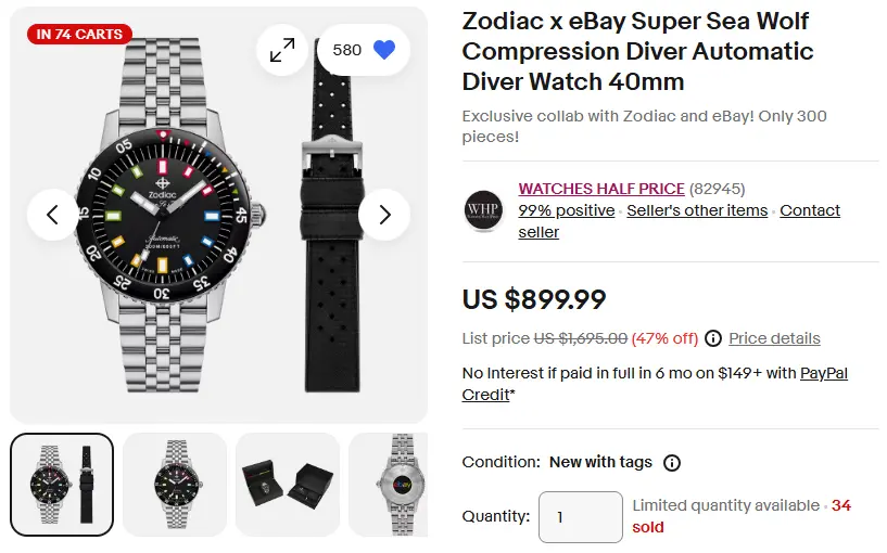 Posts 6,598 Likes 26,722 Scarecrow Boat ·Oct 11, 2024 Starting October 18, 2024, the Zodiac x eBay Super Sea Wolf Compression Diver will be available for purchase at USD 1,695 exclusively on eBay.com. This website may earn commission from Ebay sales.