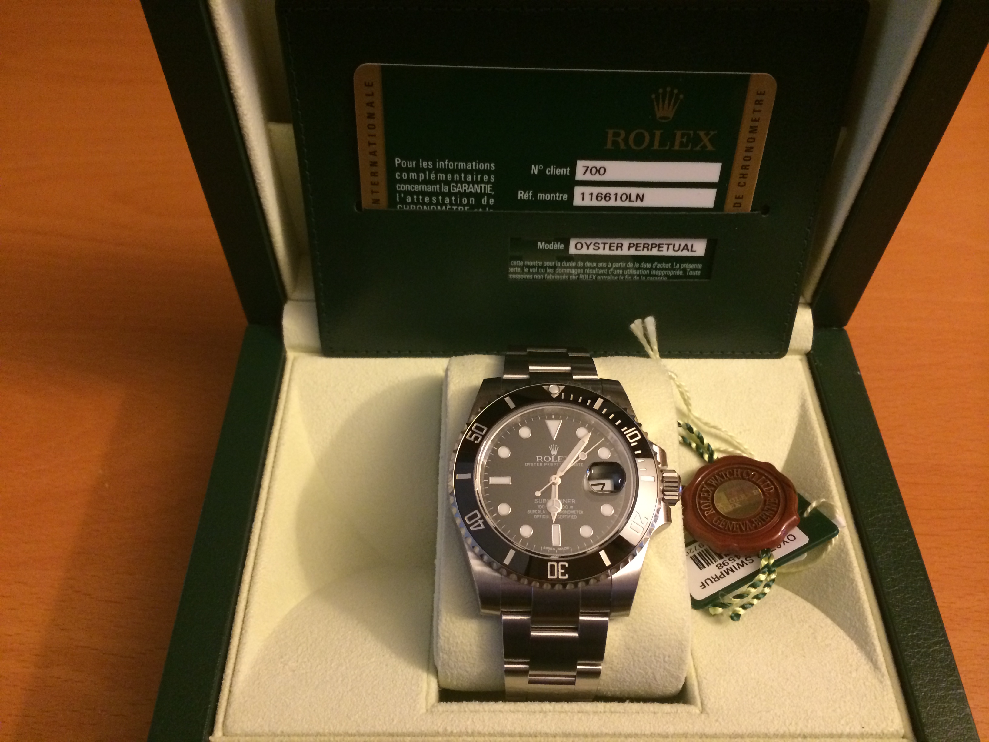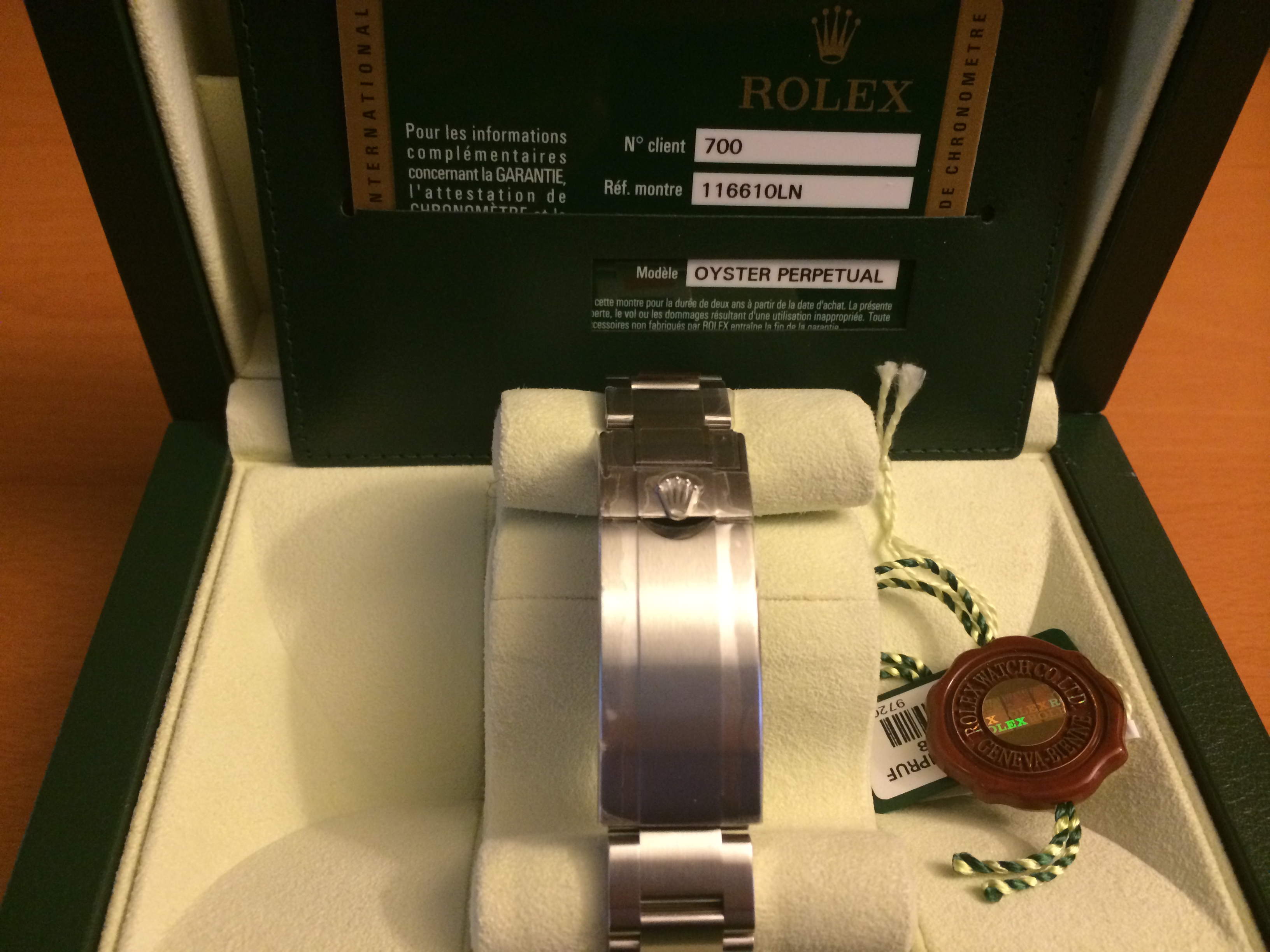 ·This is a May 2014 purchase by me at a local Rolex Ad. Unsized and Unworn, stickers still intact. My name on the warranty card, and it is of course Random serial number.