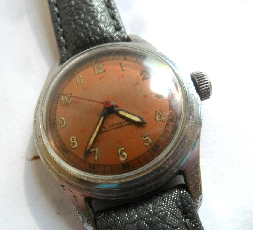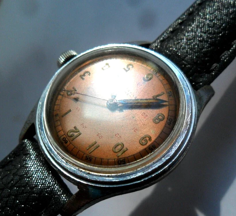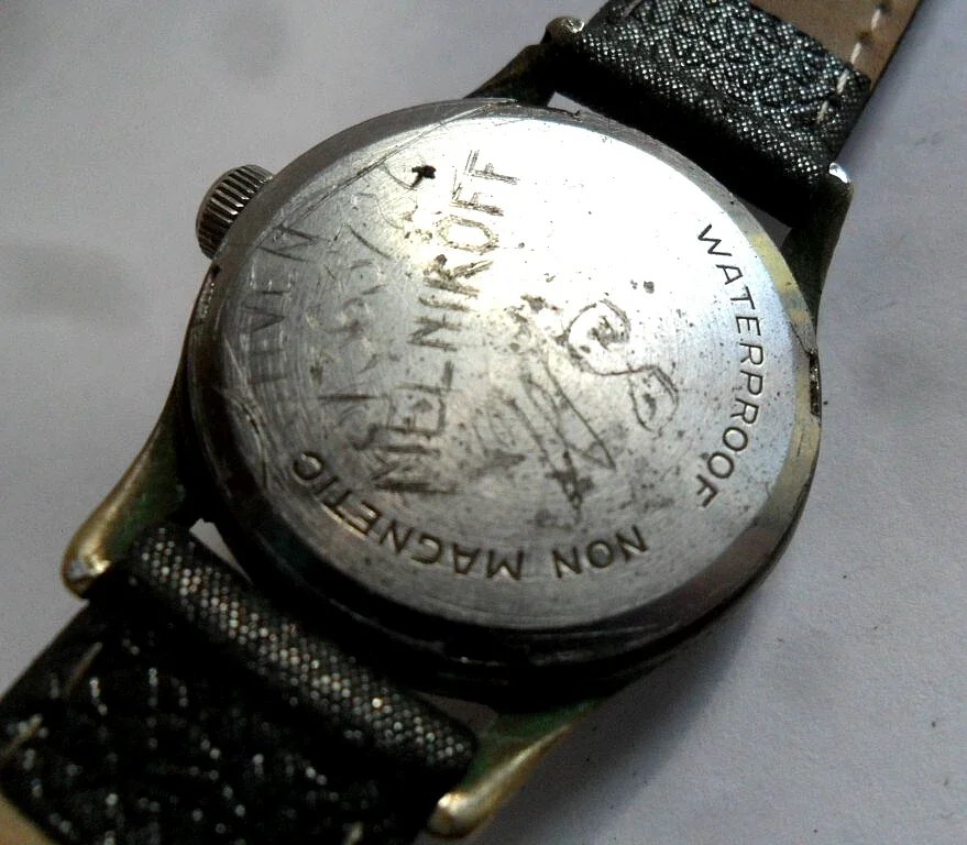 ·As a result of my random watch searches I recently won an auction for a WW2 era watch that has an interesting name on the back. Firstly, I have NO idea when it comes to watches of this vintage as to what is correct, what is a good movement, dial condition etc. This one looks to have at least had a replacement crystal and crown. Dial is appealing to me. I just wanted a small watch of that era as I haven't had one that old before.