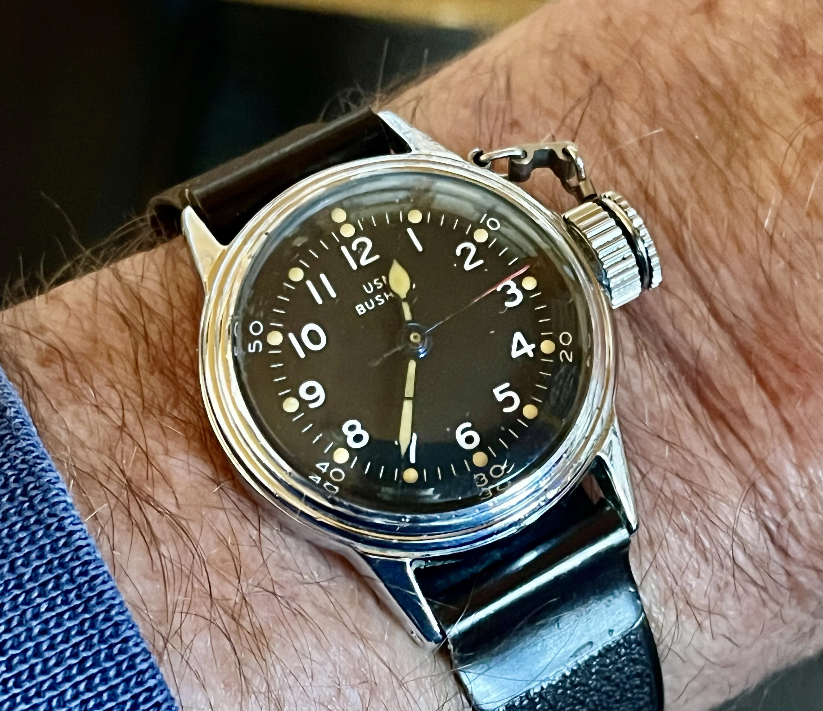·Since the tariff I been looking at military watches in the USA got that RCAF Waltham off eBay in the US and this from the MWR forum. This Hamiton canteen watch issued to US Navy UDT diver who cleared beach obstacles so landing craft can hit the beach. Bare bones nothing but swim trunks a k-bar knife and fins and a mask and a watch plus the explosives to blow up the obstacles to clear the beach. Been on my want list for a while.