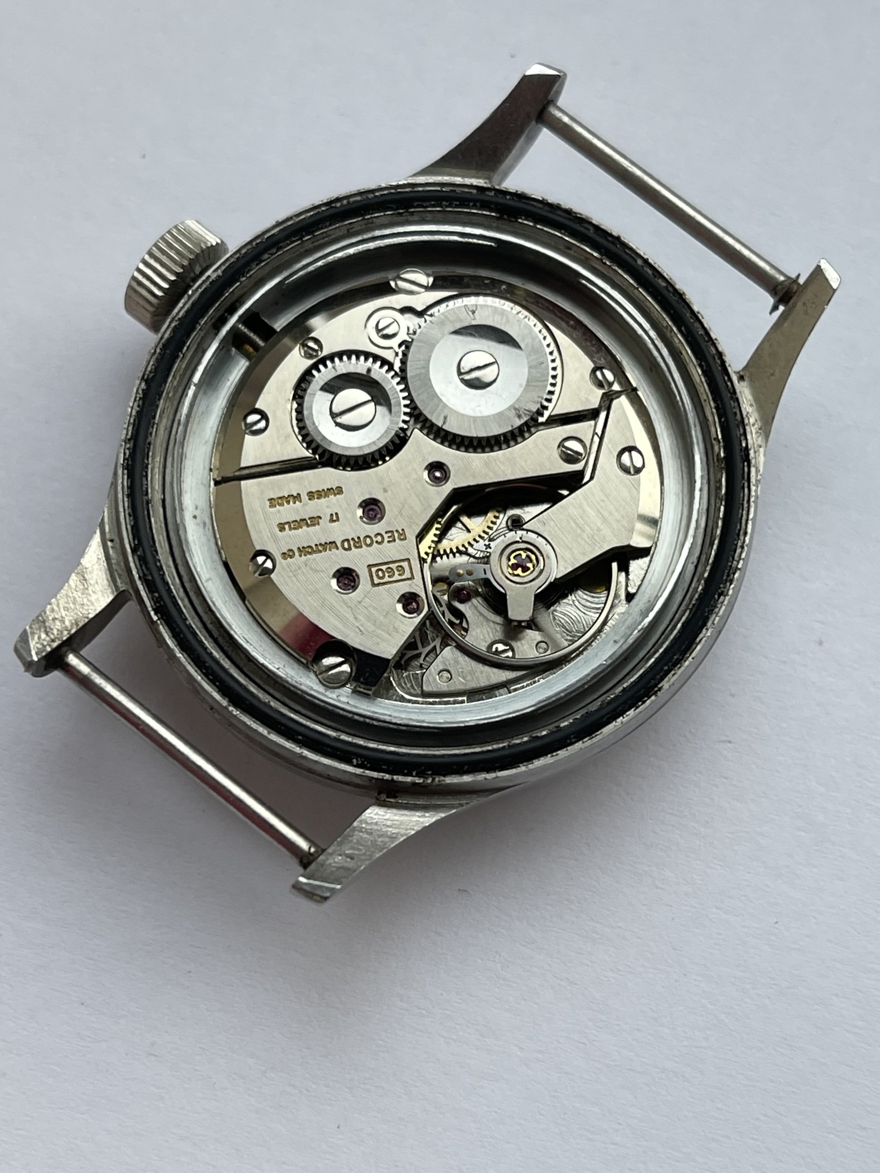 Hands have been relumed using Tritium powder by James Hyman as the lume fell out when the movement was taken out of the case