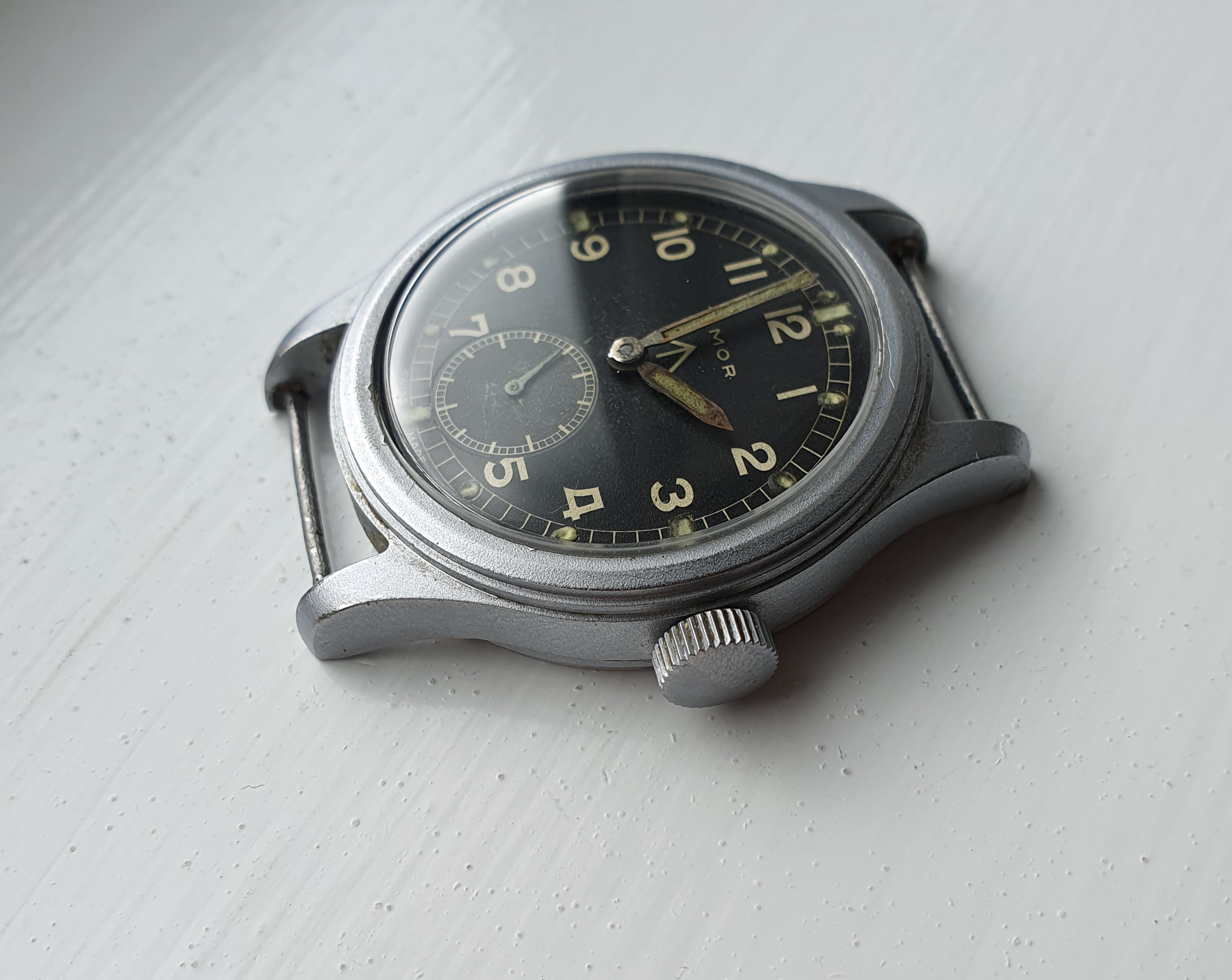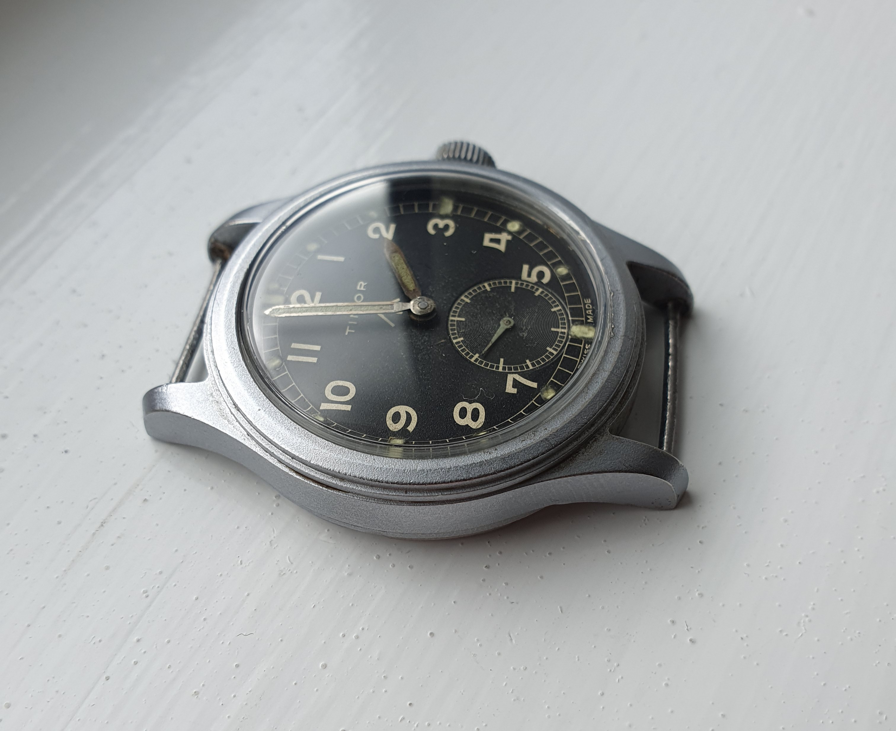 The 36.5mm case is unpolished and stands out with its 'ghosted" finish that was designed to reduce glare and the reflection of light. The watch is in very good vintage condition with correct dial (original), hands (relumed) and crown. TIMOR is Number 8 in the 'Dirty Dozen' volume table with 13000 produced. These are getting harder to find in similar condition. Comes on an olive 18mm Nato as shown.