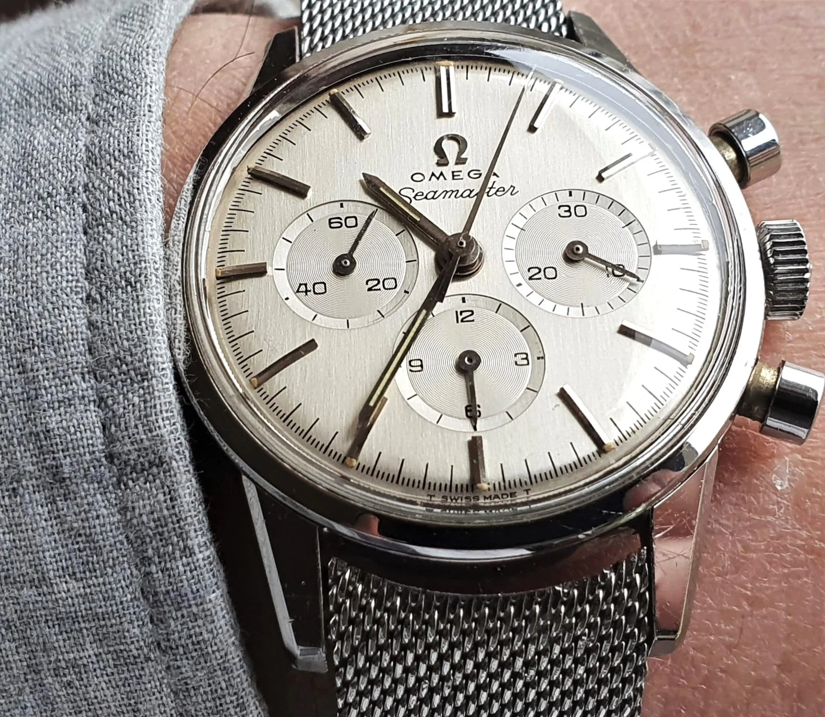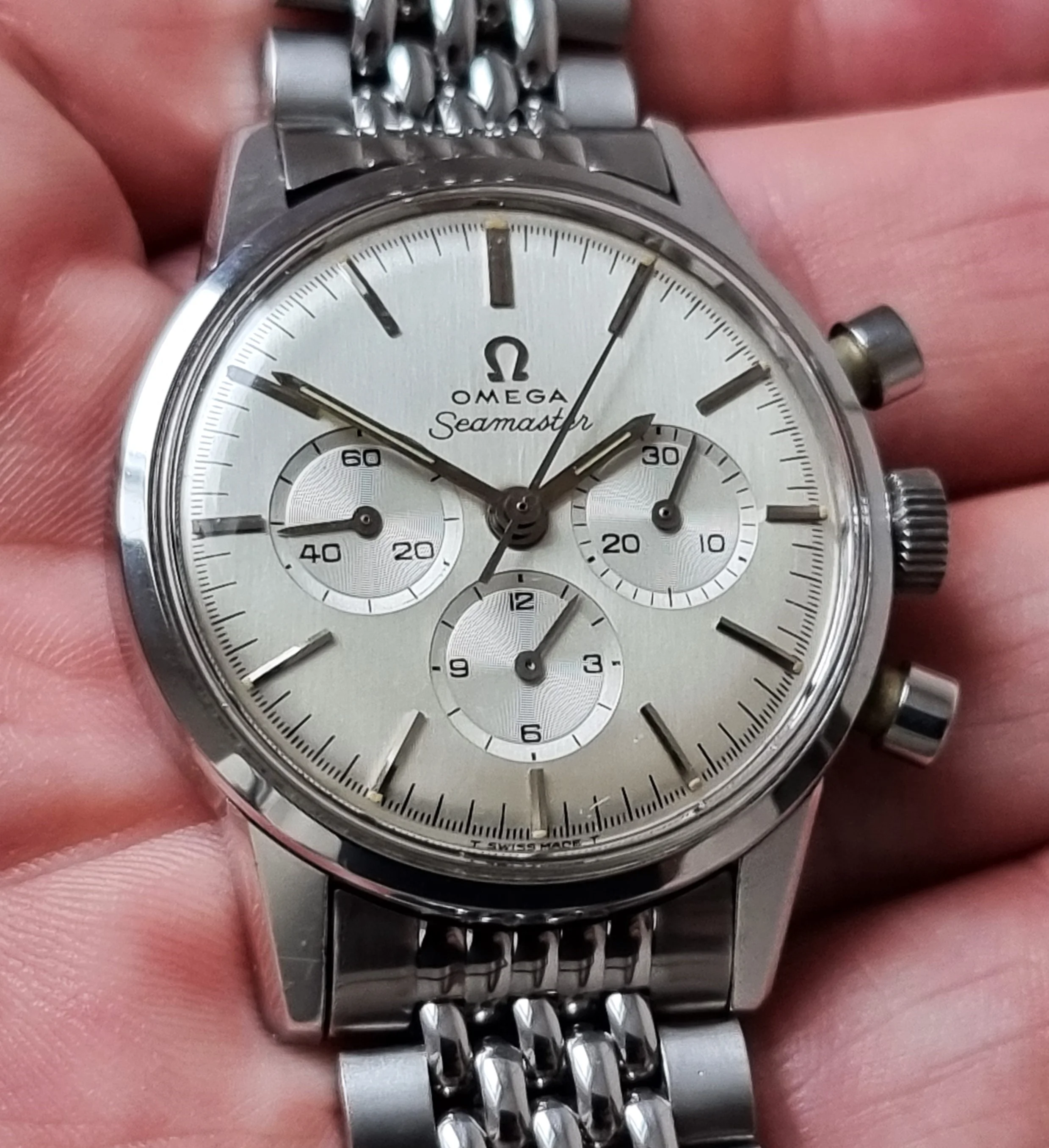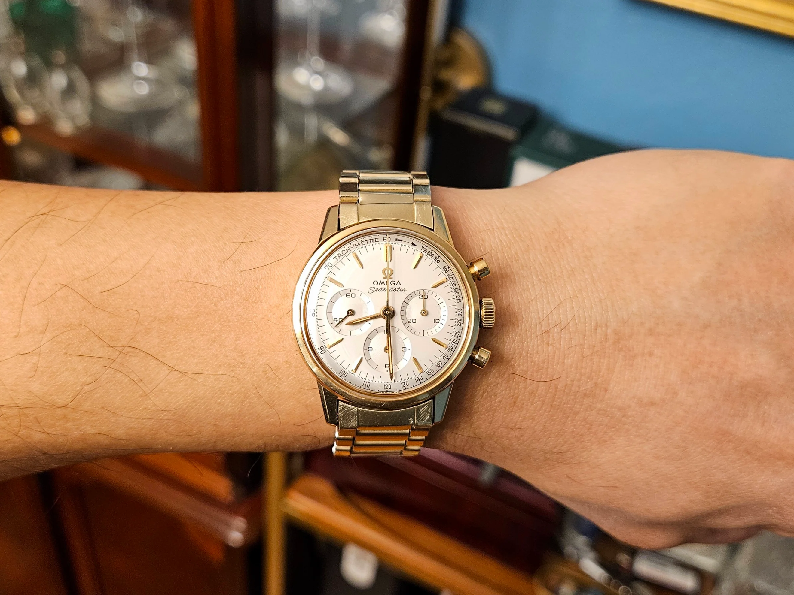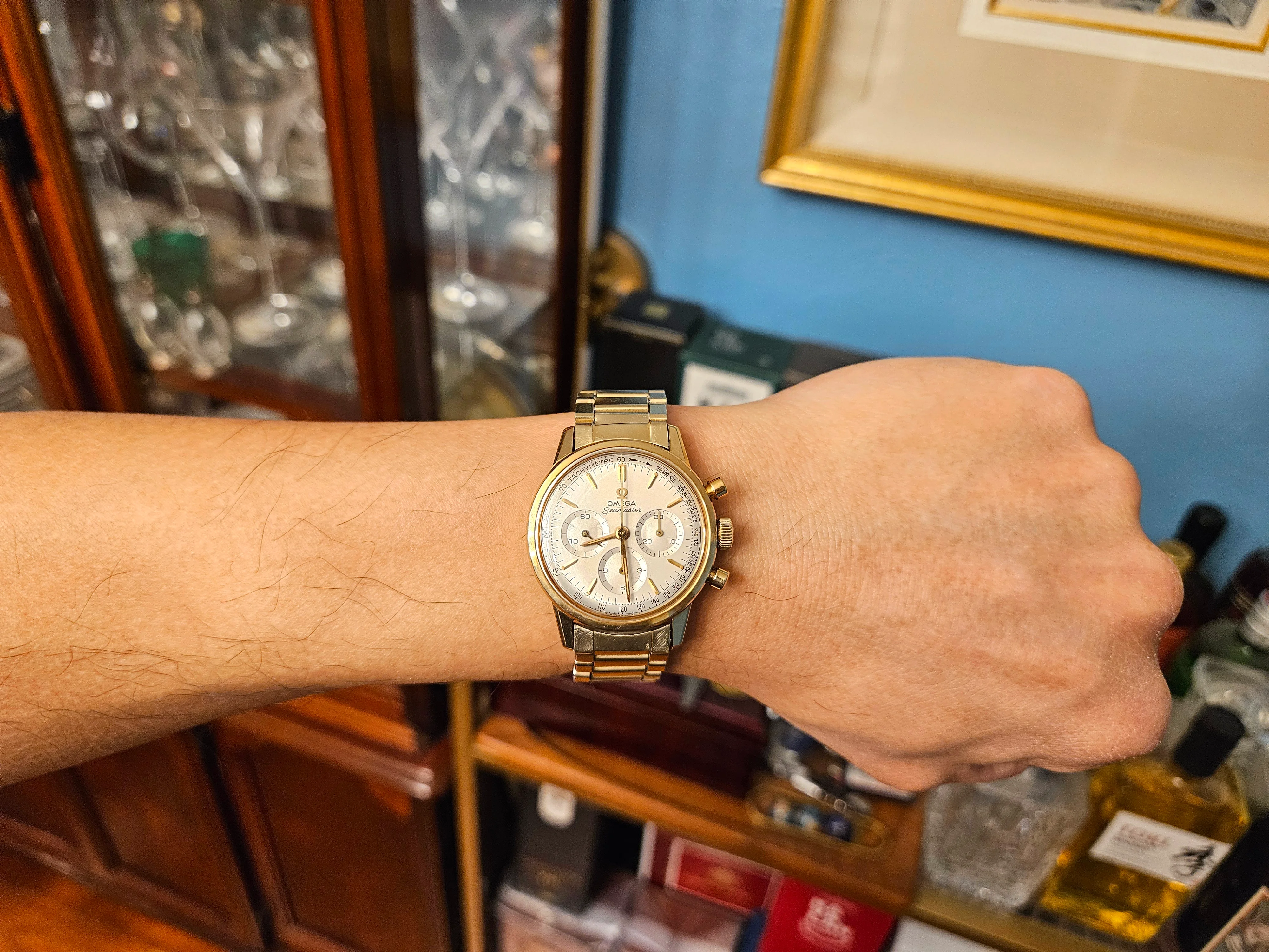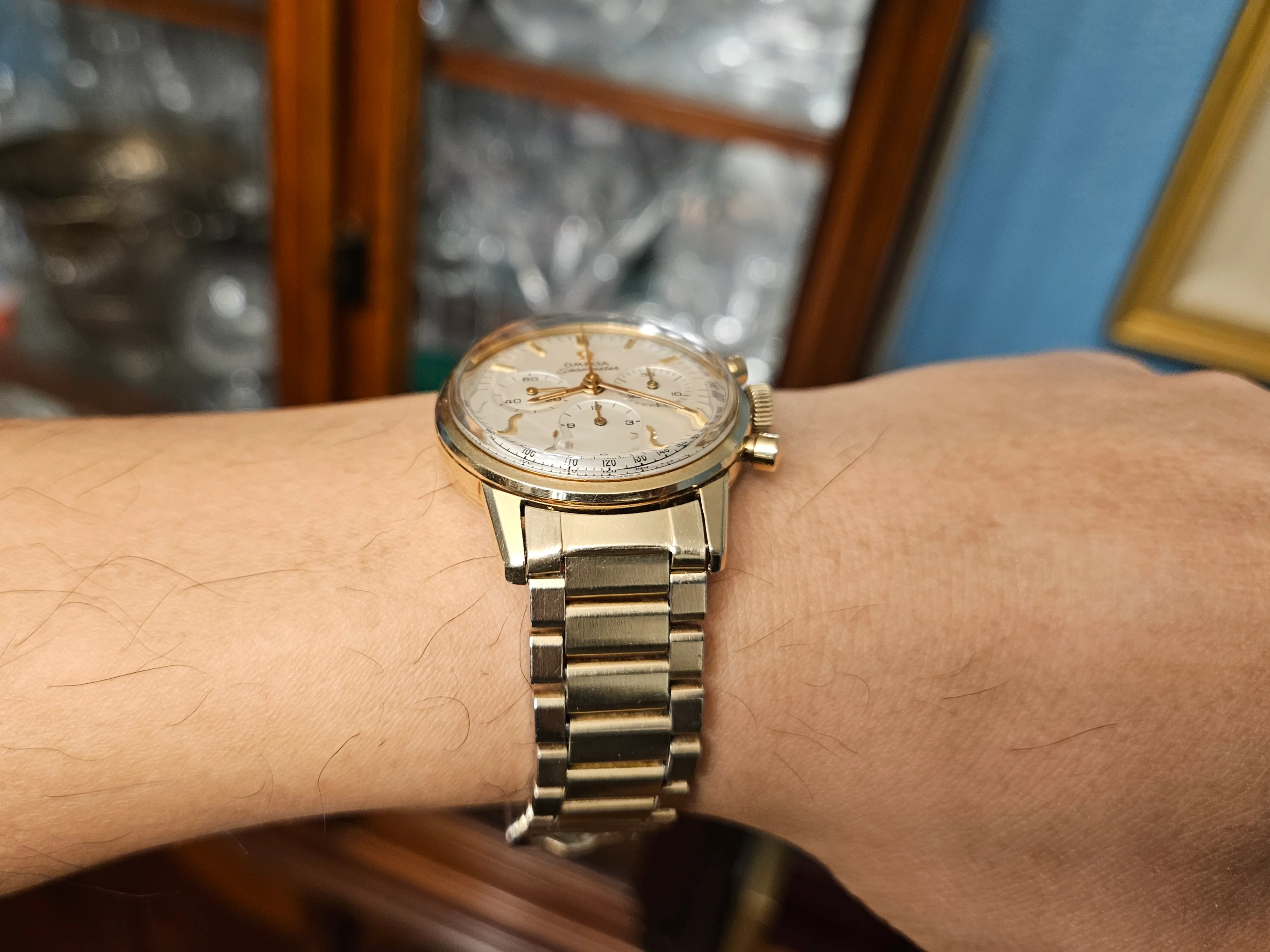 ·Modified an existing No. 12 GF 14K bracelet and lugs to see if it would fit my 105.004 14k 321 non-speedy dress chronograph. I didn't think a GF beads of rice would look too good since most are faded and won't pay for a solid 14k bracelet. What do you think? Does this go together and "modernize" my non-speedy 321? The lugs fit the curveture of this watch and the width is correct to the lug length.