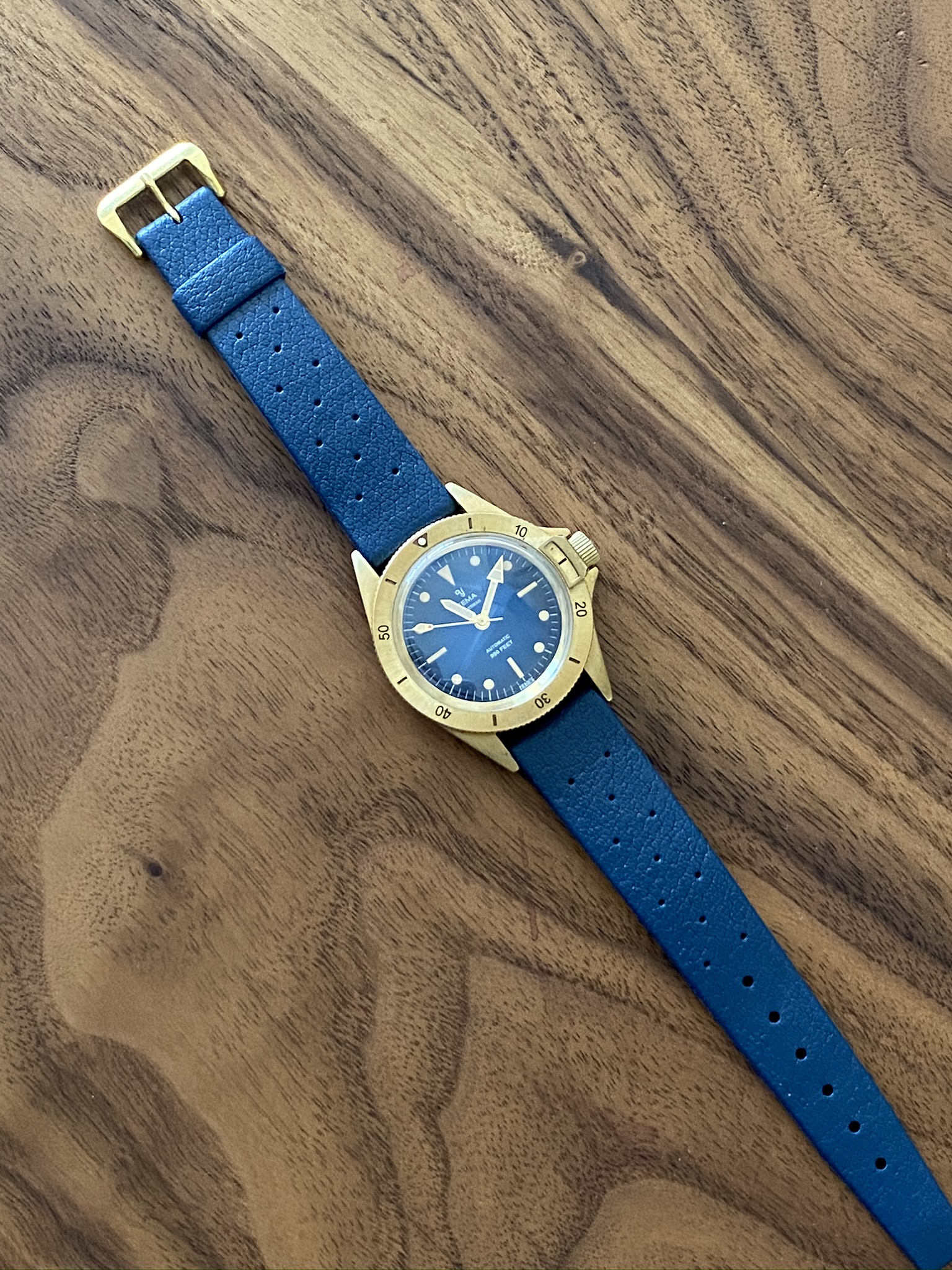 I love my Yema Superman but found their default strap selection pretty middling. I finally found a vintage royal blue Tropic band and threw that on instead and couldn’t be happier....