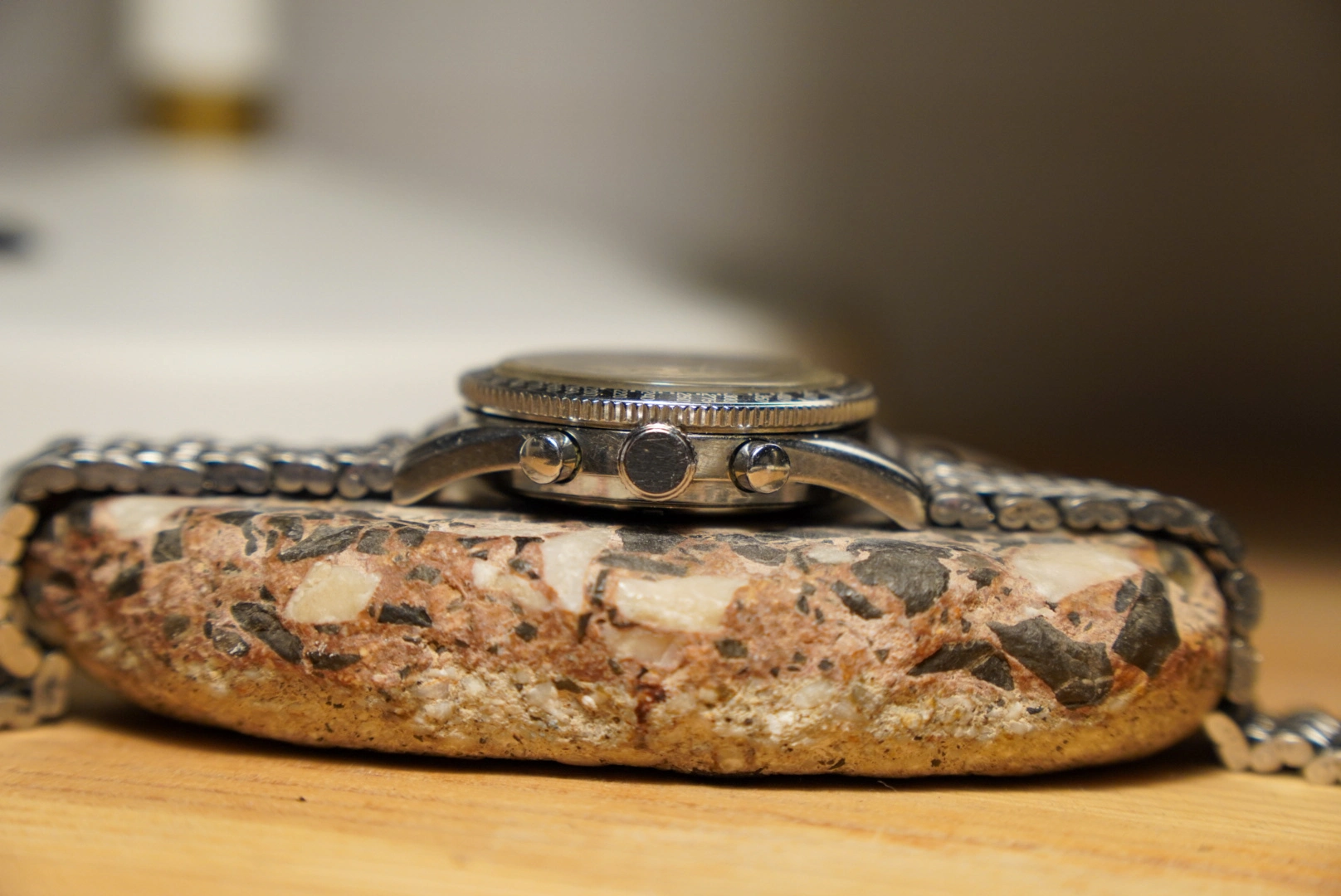 The watch can be wound up and runs without any problems. The chronograph also runs reliably, as it should. Only the minute hand on the chronograph seemed to be loose and has fallen off (it is on the side of the dial, so it just needs to be put back on).