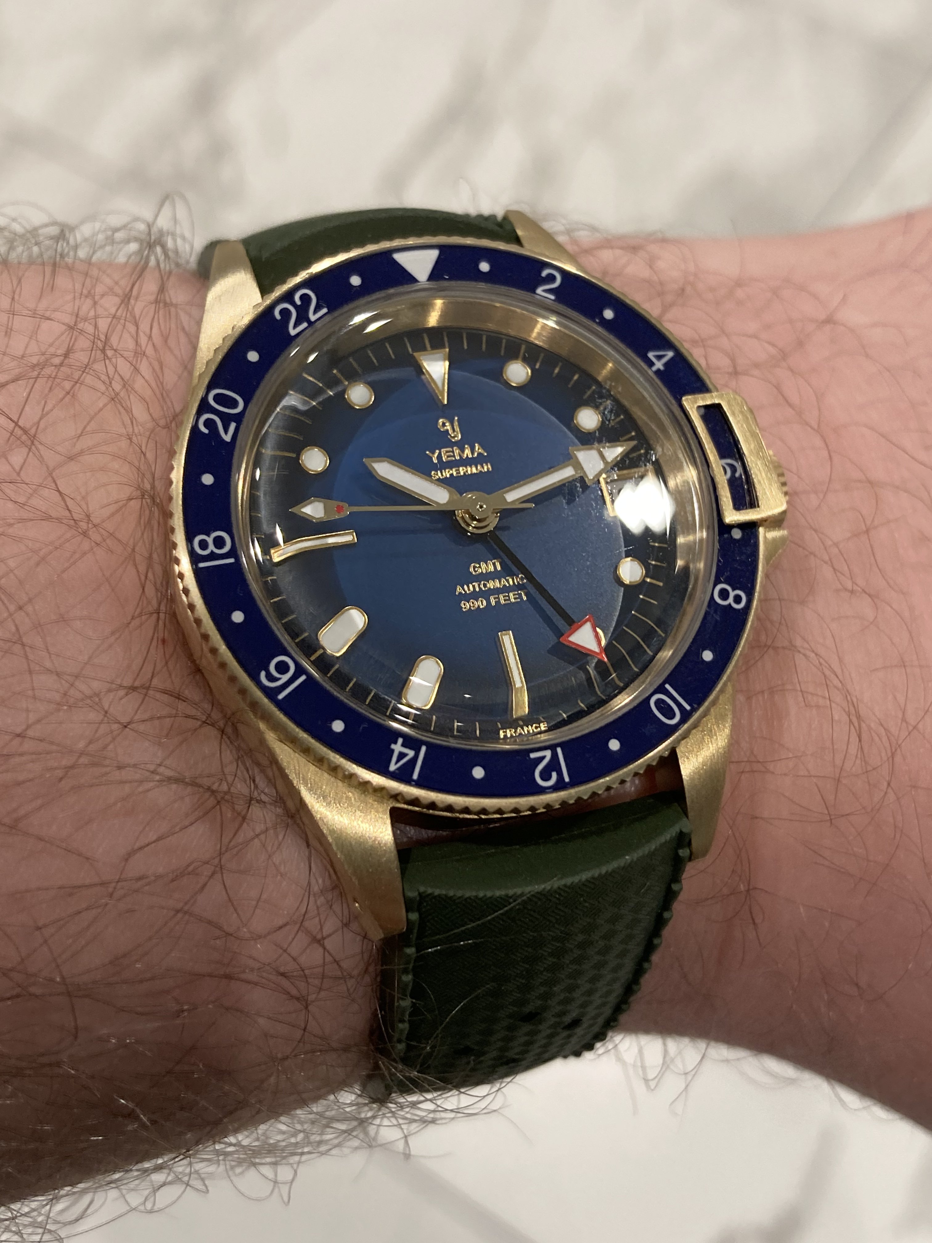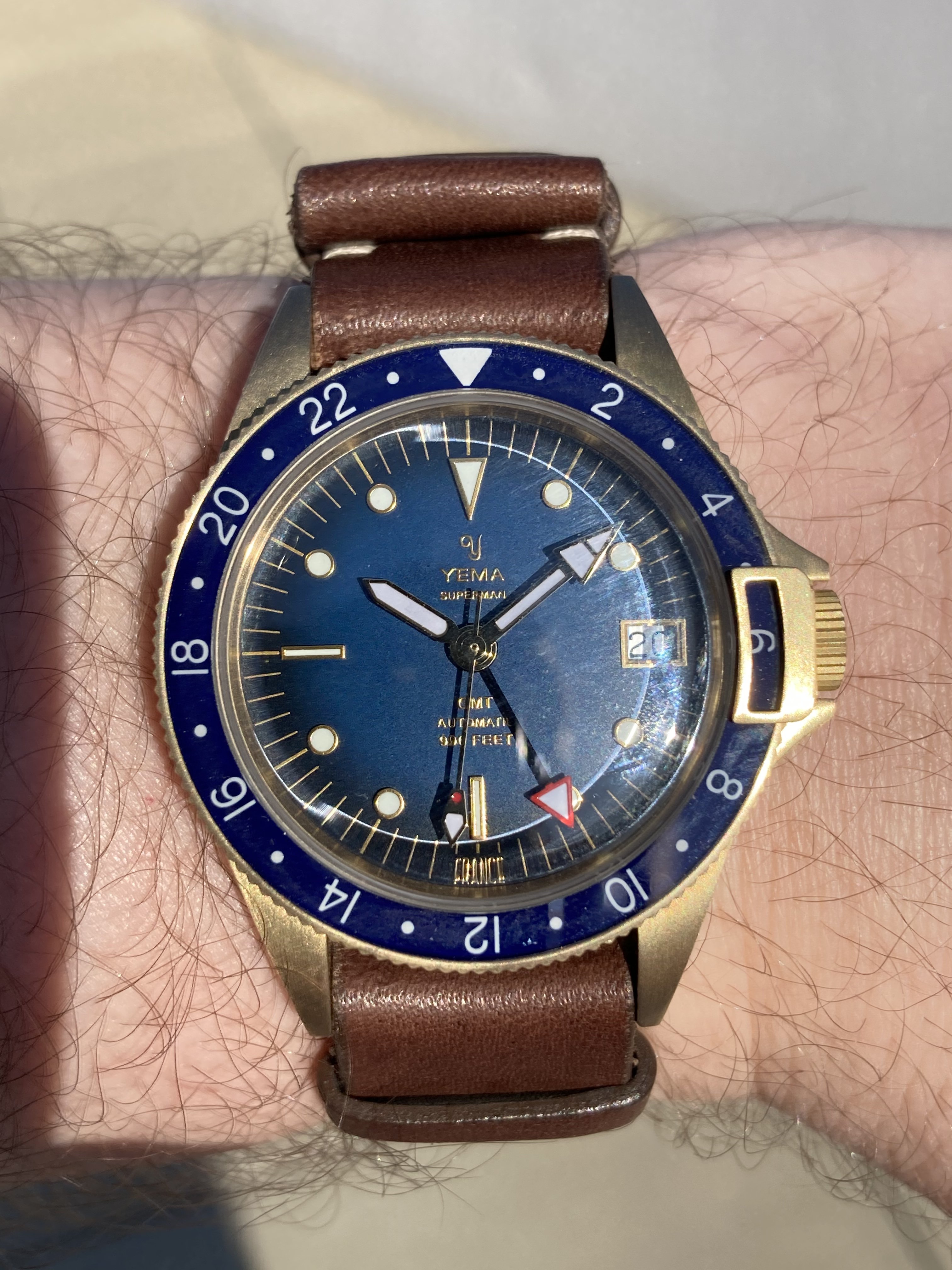 Looks very nice and wears well, but I feel like the bronze vibe is a bit too elegant for a NATO... at least until it starts to oxidize.