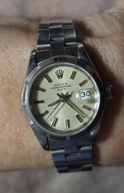 Since I restored her Rolex Lady Date-Just to wearable condition several days ago, she hadn’t taken it off her wrist! For all the years she has had it (over 30), I would rarely see it on her wrist for more than a few hours on any day she chose to wear it. Kind of a waste to have an automatic-wind watch that you constantly have to wind manually! But now, she seems to be so happy to have it back that she doesn’t take it off!