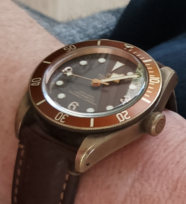 I ordered a new crown and case tube on Thursday, on eBay. Confirmation arrived immediately, and the case tube arrived from Glendale, California on Friday, via UPS. Still can’t believe it! Crown will be here next week, but I may not have to use it. The original crown is a good fit on the new case tube. Friday, I installed the case tube and conditioned the calibre 2135 movement, and she is wearing it again.