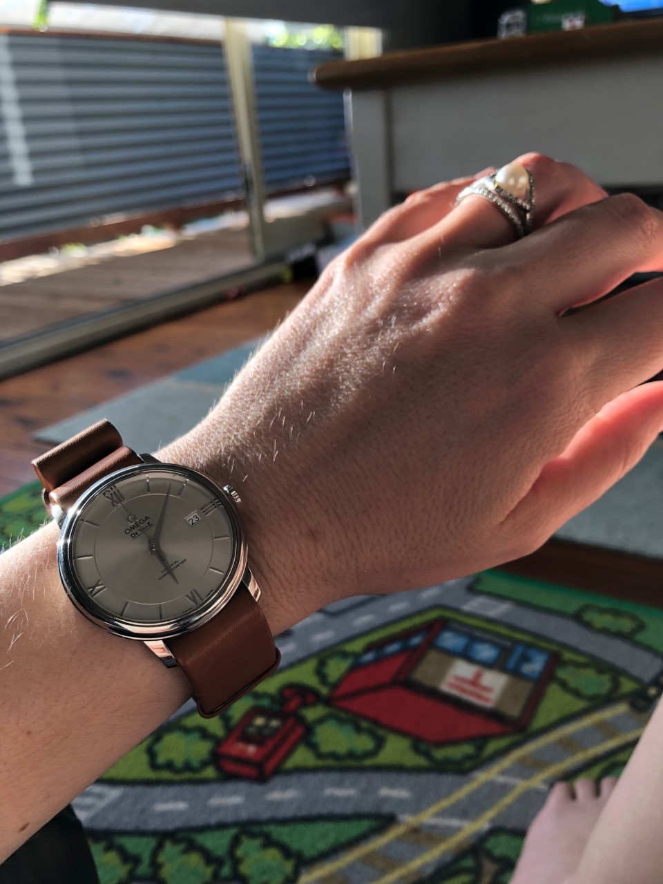 Finally, after a long time in dry dock, owing to as badly worn threaded case tube, Mrs. C’s Rolex Oyster Lady-Date, Perpetual is back on her wrist. Problem. She wears a watch rarely, generally only when not at home. So this Rolex is usually run down when she needs it. The threaded case tube becomes prematurely worn. I have given her several quartz watches over the 32 years since I gave her this one, and she has relied on these for the 5 or 6 years since this one was temporarily shelved. But this is the one she likes best.