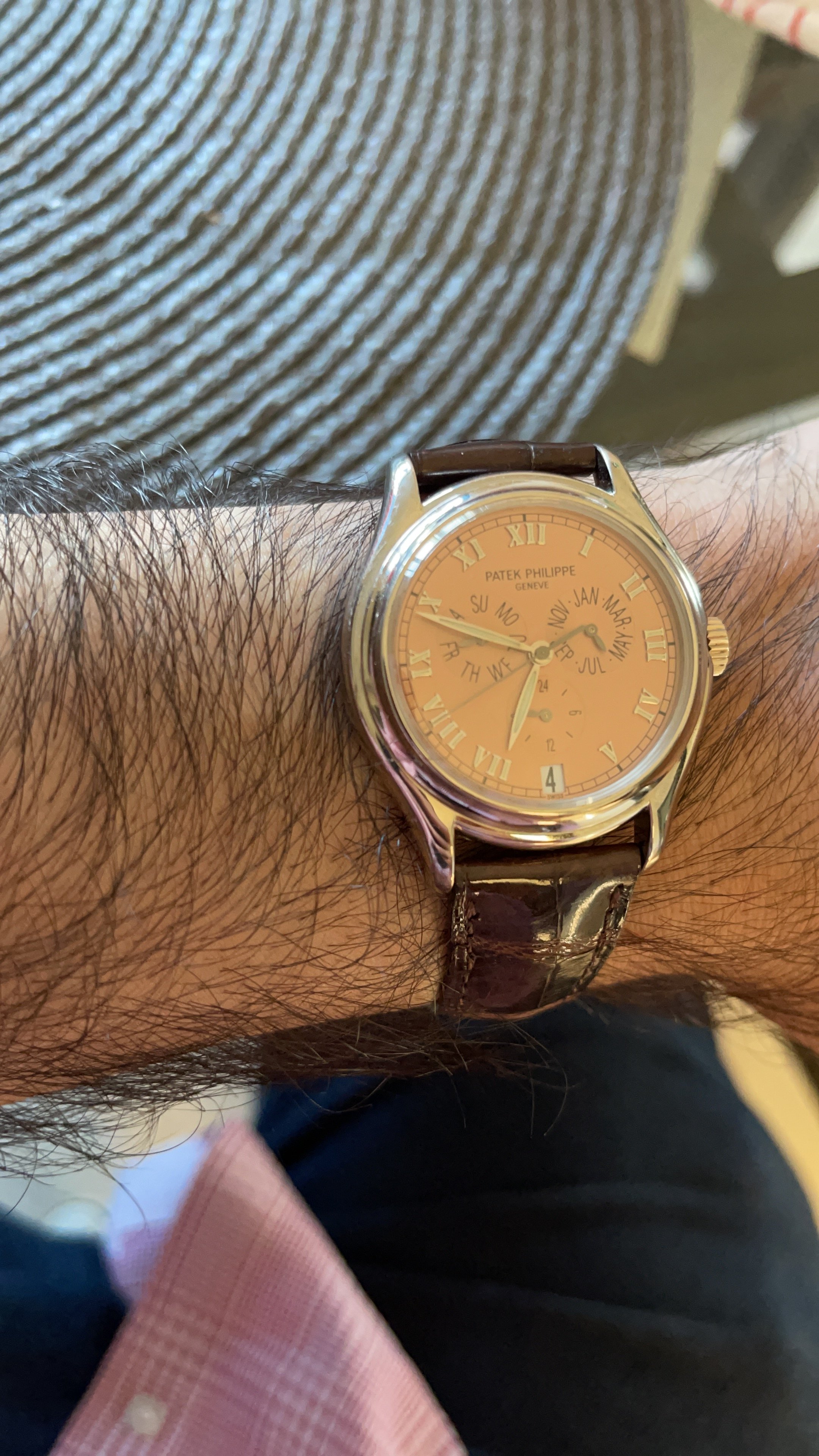 ·Great problem to have choosing between two Pateks. Since you are asking for opinions, I will give mine. The 5040 has probably been more sought after by collectors for several reasons which is why if I had to choose one then it's the 5040. The watch is classically inspired. The Tourneau case 35mm x 42mm the Breguet numerals, and Breguet hands which makes a traditional dress watch. The watch also has a sigma dial and compared to the 5035, the 5040 has well proportioned subdials. The movement, the 240 Q perpetual calendar in the 5040, continues to undergo development and is in use today. Which means parts are available and perhaps if sent in for factory service there may be update to an older watch movement making it a good runner for a long time. I like that if I buy an older watch, parts are still available and perhaps updates available for it as well. The 5035 had the 315 S QA annual calendar which improved into the current 324 S IRM QA LU. The later reference 5146 is probably a better proportioned watch than 5035 as it is 39mm and 11.3mm thick and also has a more balanced dial arrangement. My .02, I would stick with the time proven classic 5040.