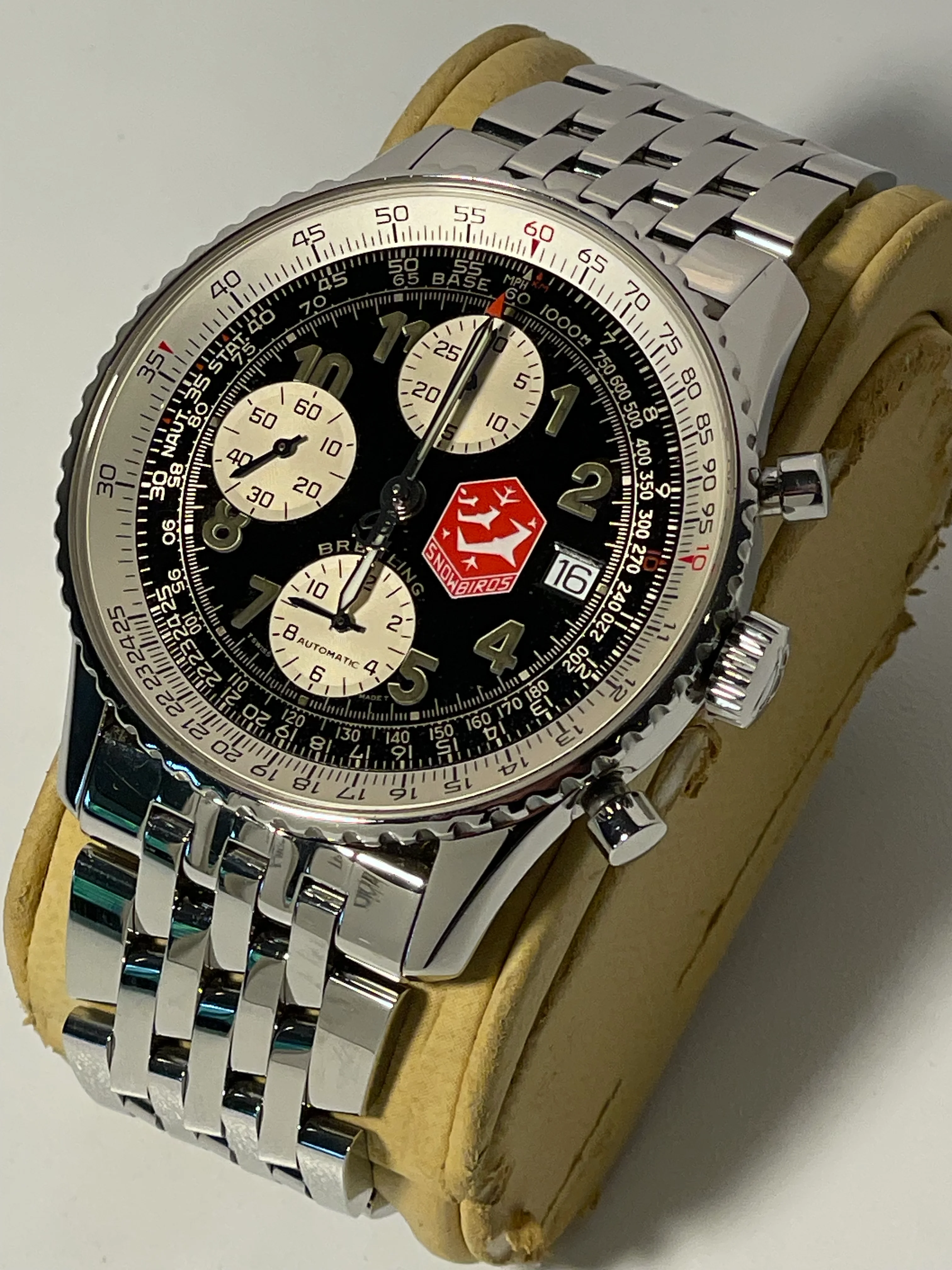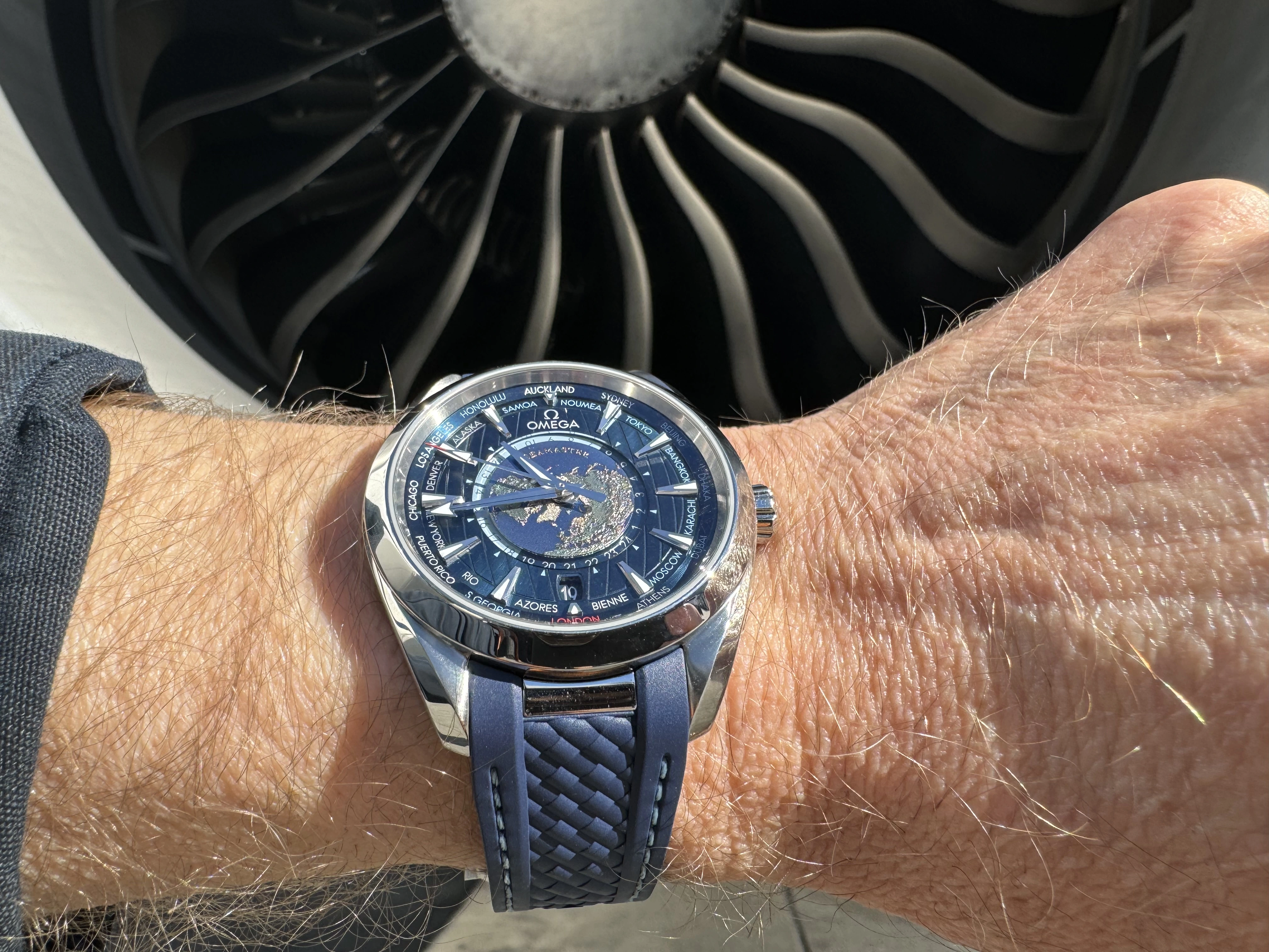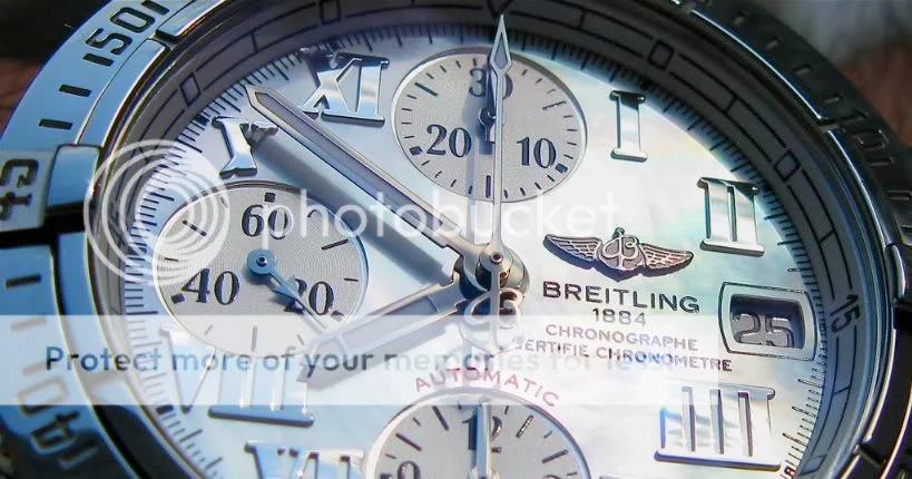 This was shot free hand - no tripod with the watch on my wrist. The light in my bay window is pretty good for catching the mother of pearl dial. I'm waiting to use this in a Breitling masthead contest.