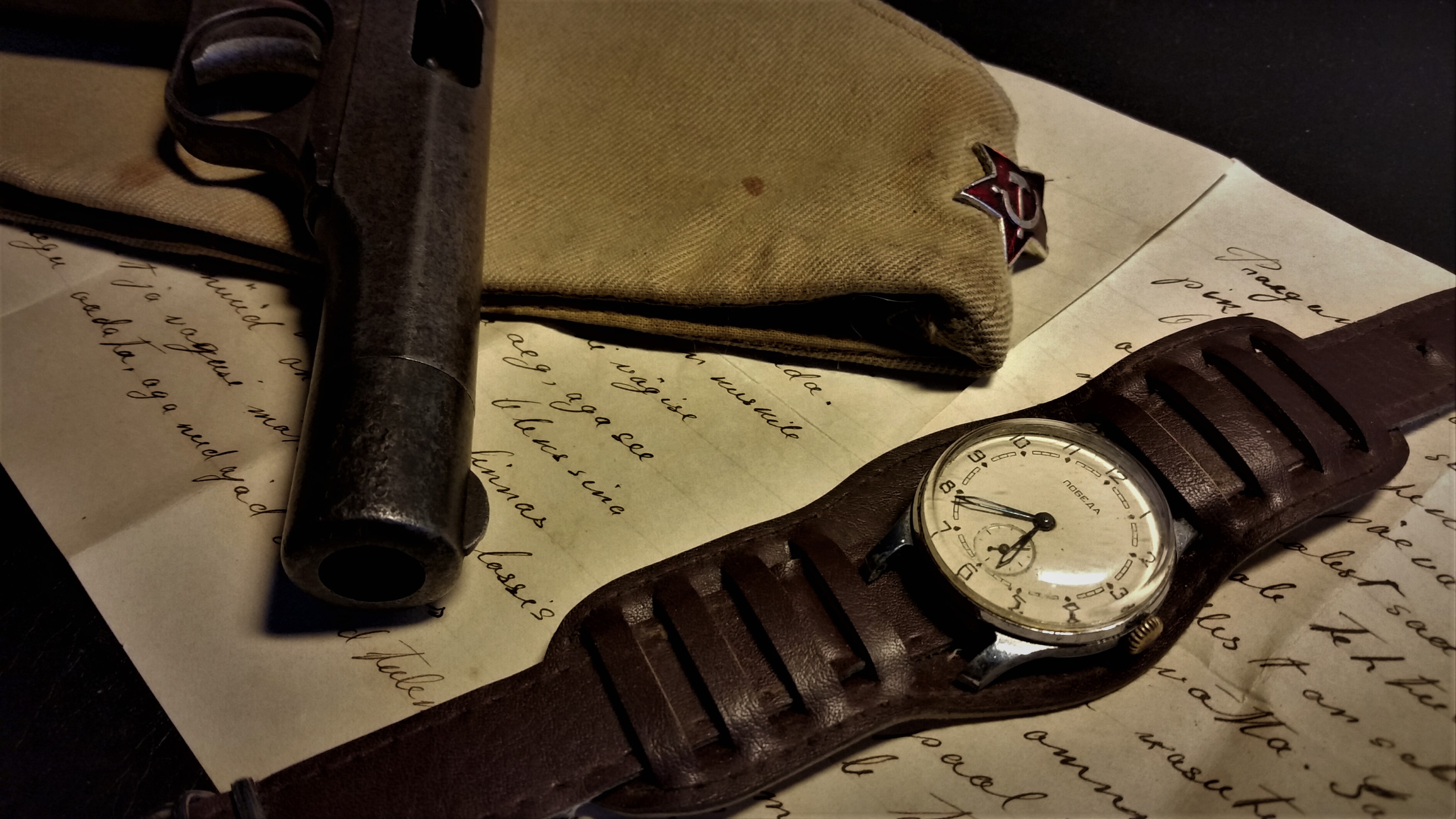 Belonged to my great great uncle. Slightly a millitaristic feel in my opinion, hence the photography. Very suiting since he was drafted when he was 18 years old and served in the Soviet army during WWII, was captured In Saaremaa by the germans in ~1940, and then sent off to a work camp in Tallinn. Still running, still keeping good time. Manual wind.