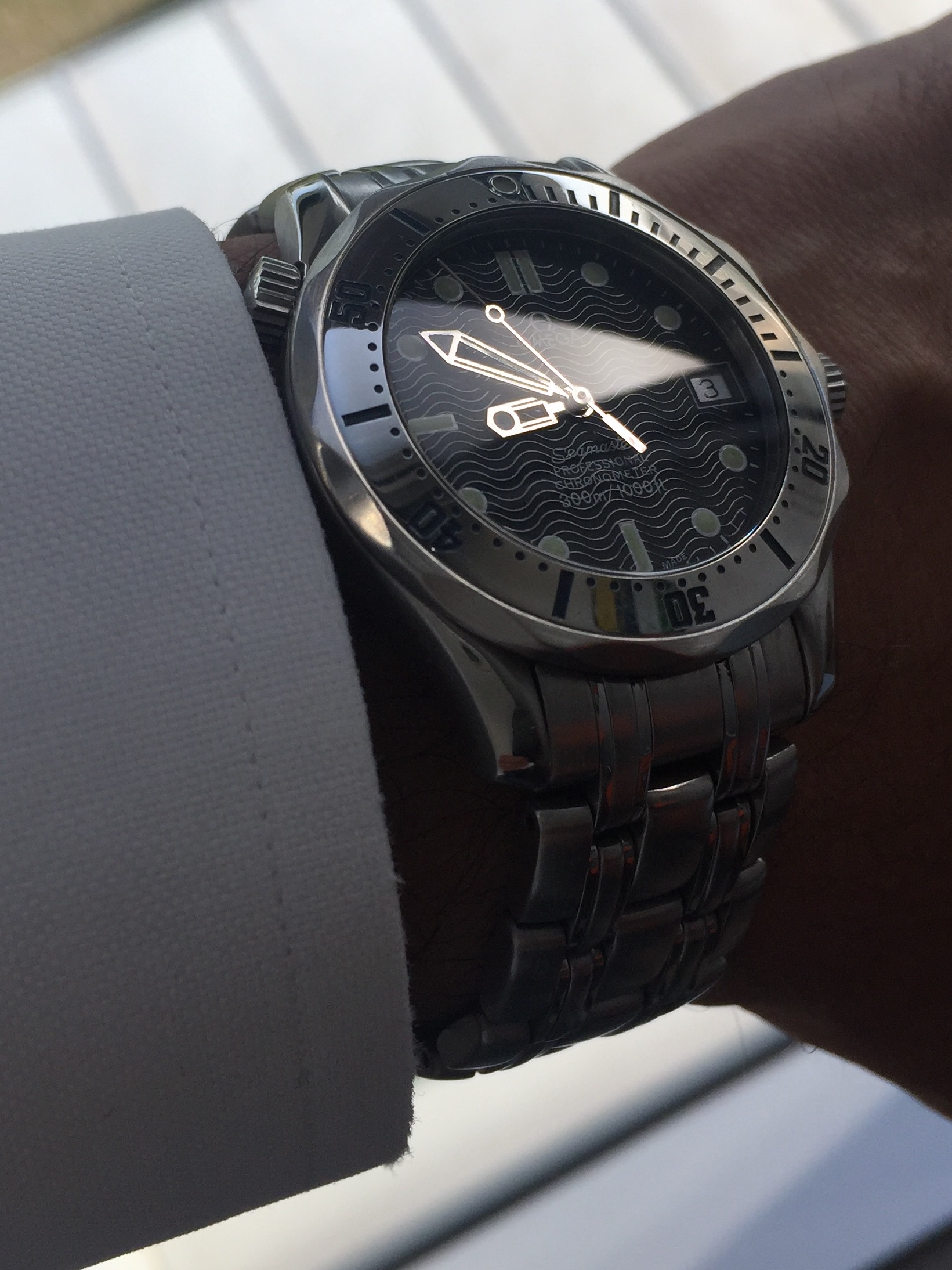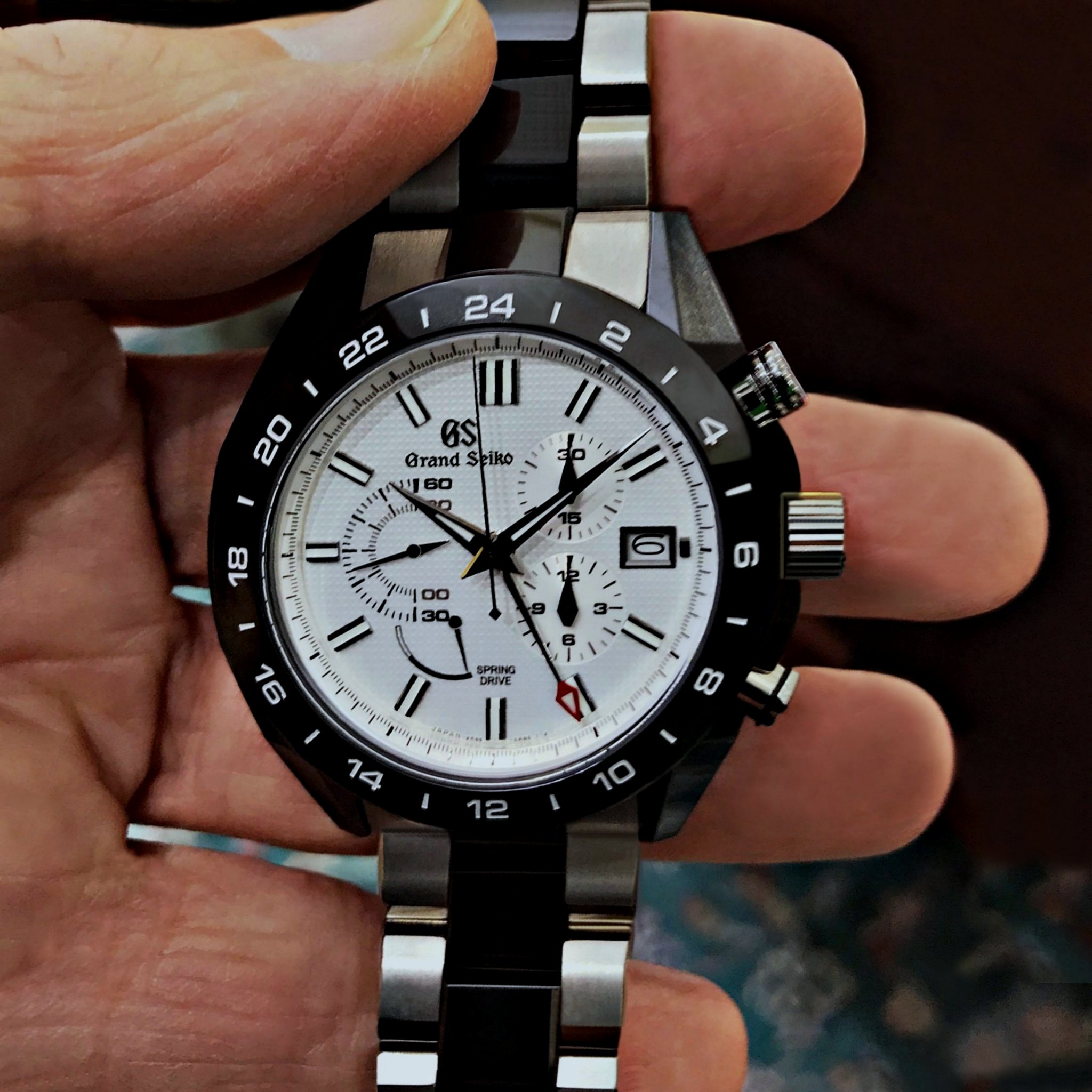 Here's an iPhone pic of the Grand Seiko I held in my hand at Demetre Jeweler in Charleston. This is the ceramic watch /ceramic band that lists just under $15k.