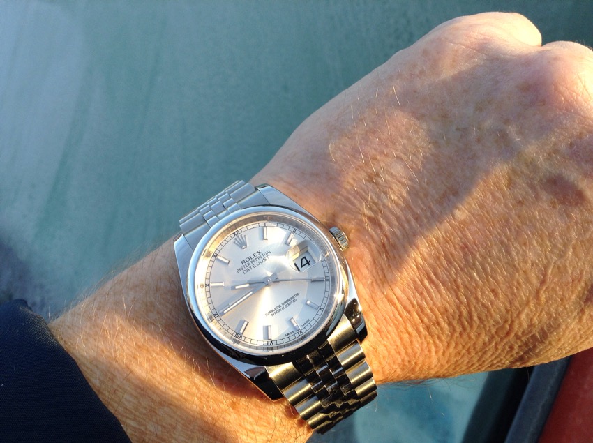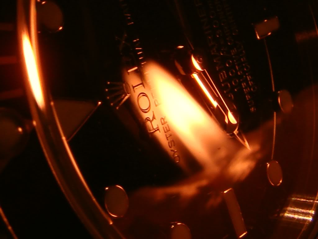 Catching the light at just the right angles. Sometimes I like reflections on the crystal. Obscures some parts of the dial, but emphasises others.