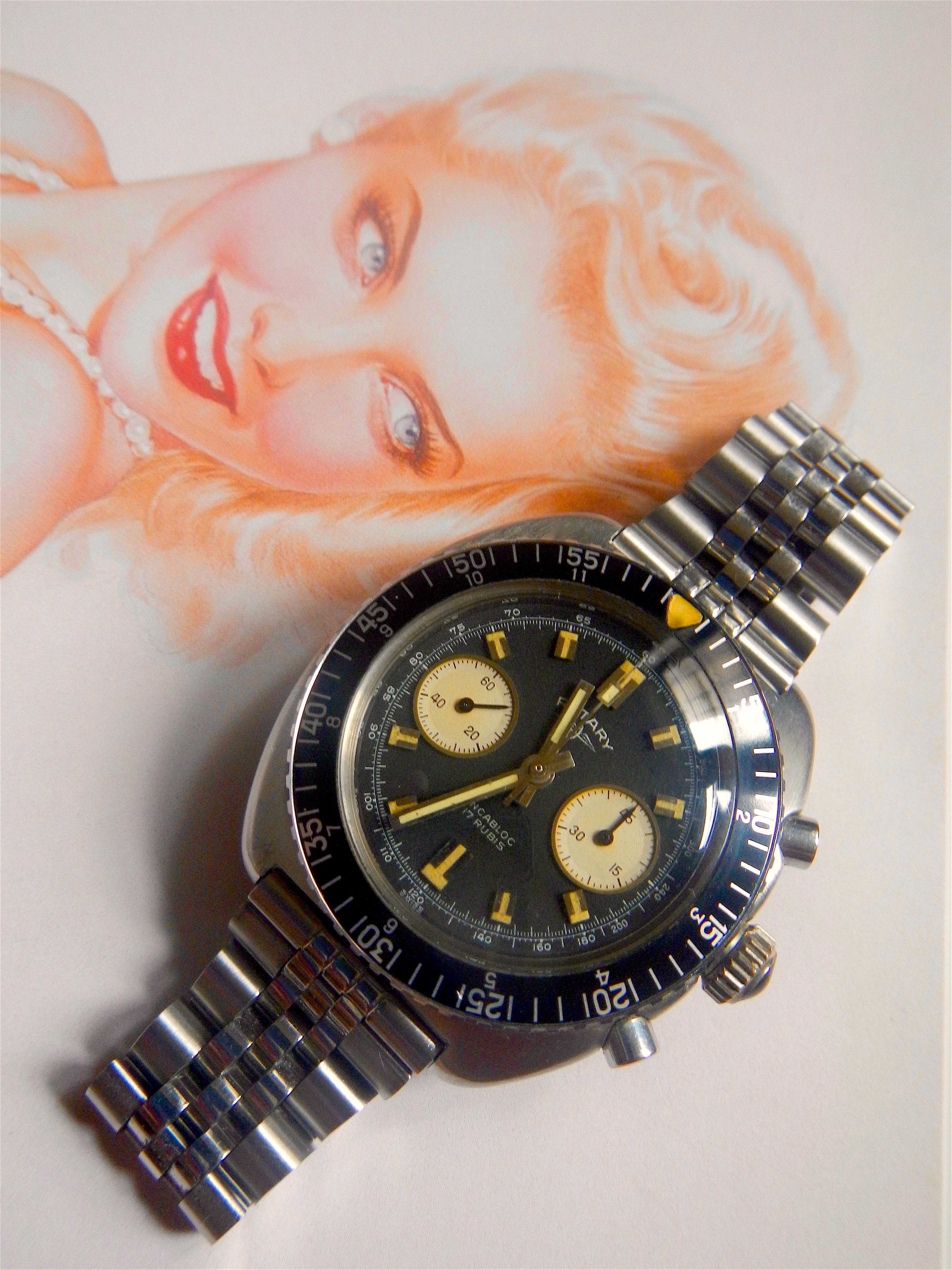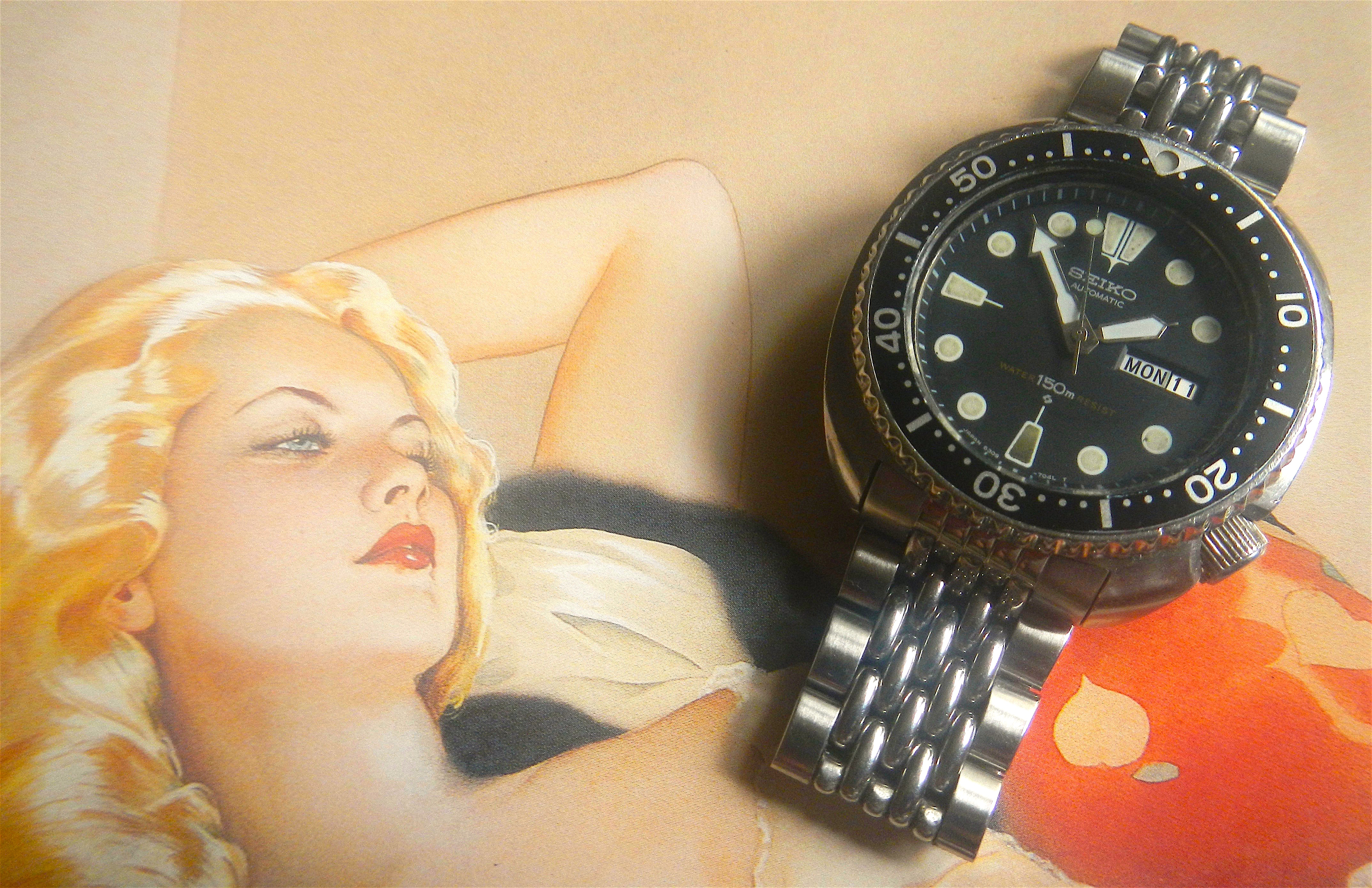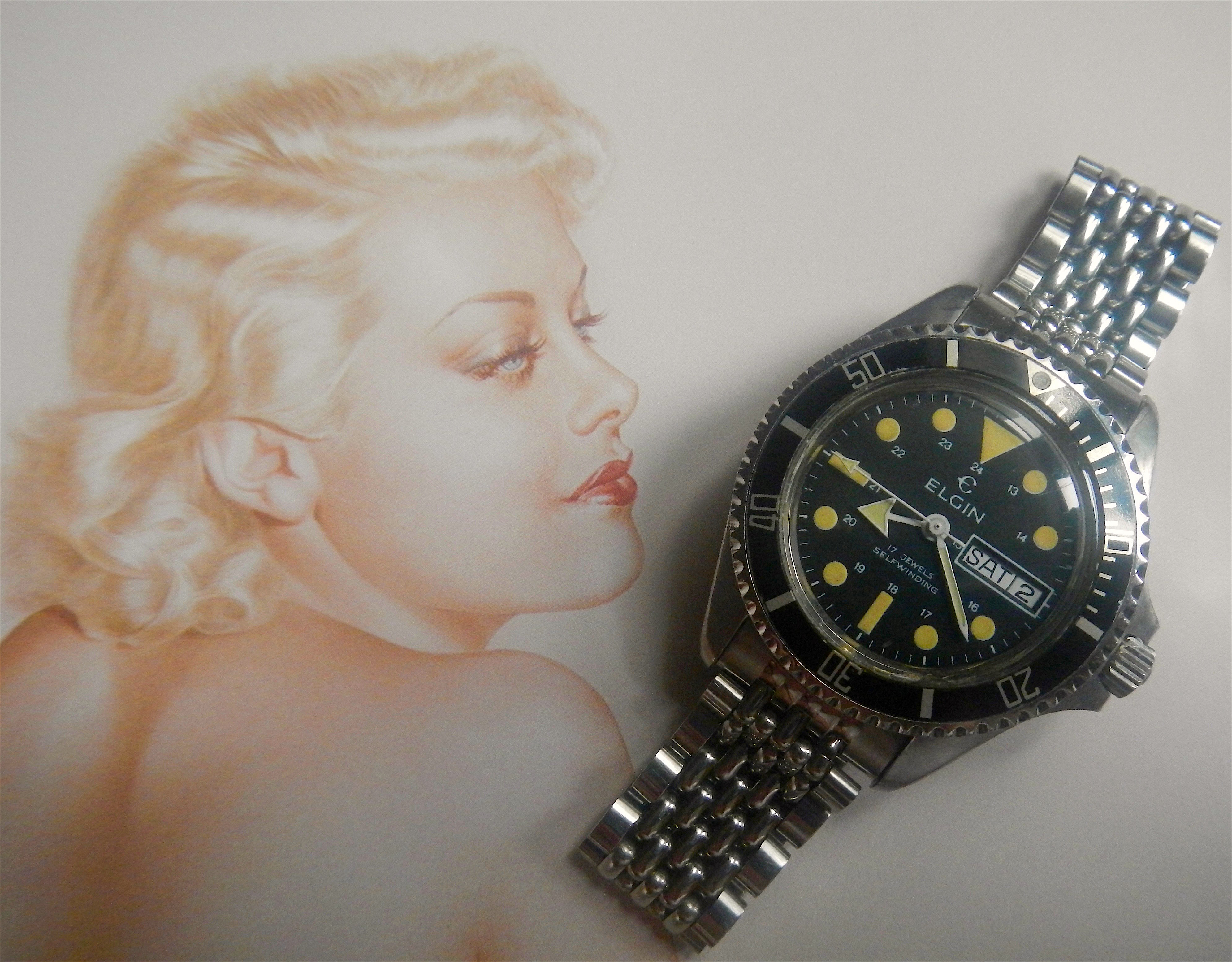 Posts 3,432 Likes 17,462 hmmmcamu 路Feb 11, 2019 The Girls ... Rotary Divers Chronograph 17 jewels Landeron 149 manual wind movement Elgin Elgin 20ATM DH113-2879 Day and Date Milsub diver 660ft. Hamilton AQUA-DATE [Skin Diver] Super Compressor 600ft. Seiko 6309 Edited: Feb 11, 2019