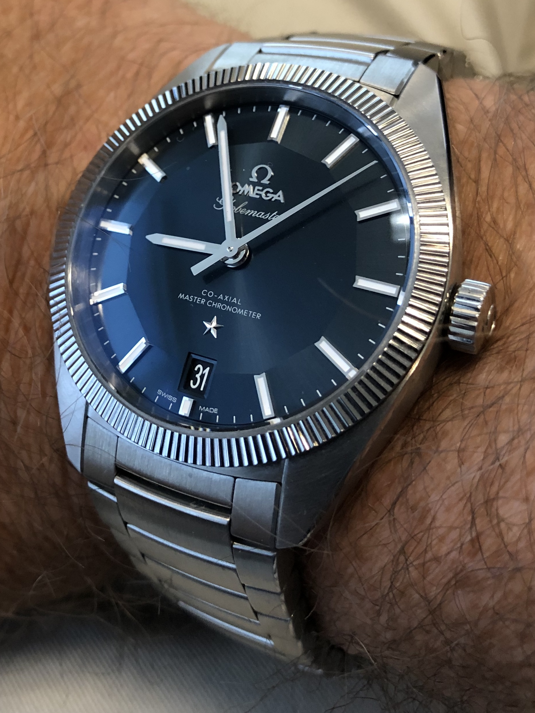 My Omega Globemaster. A very hard watch to photograph because it’s so difficult to capture the way that the sunburst pie pan dial plays with the light. It’s a horological shapeshifter and a stunning watch in the flesh.