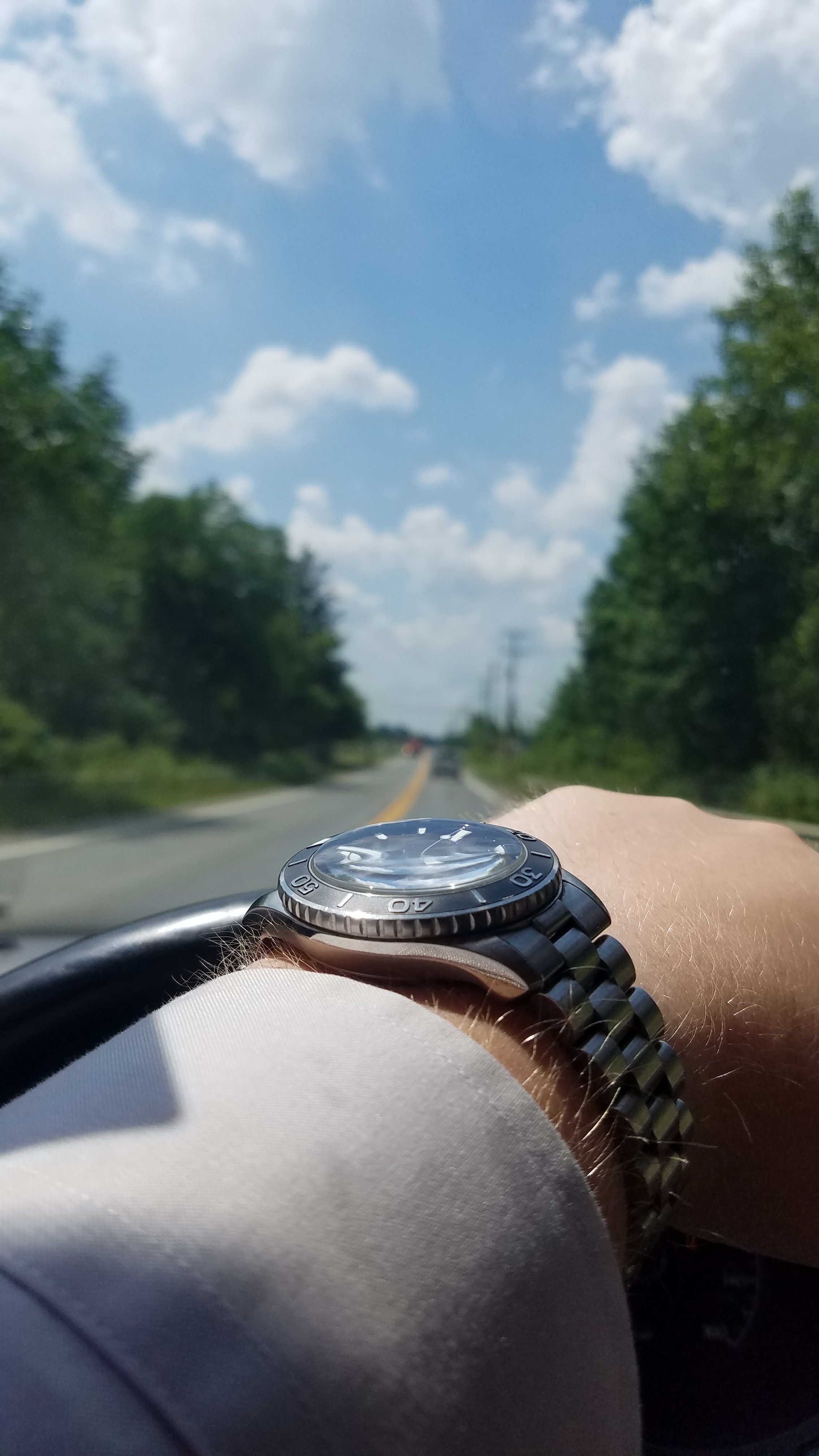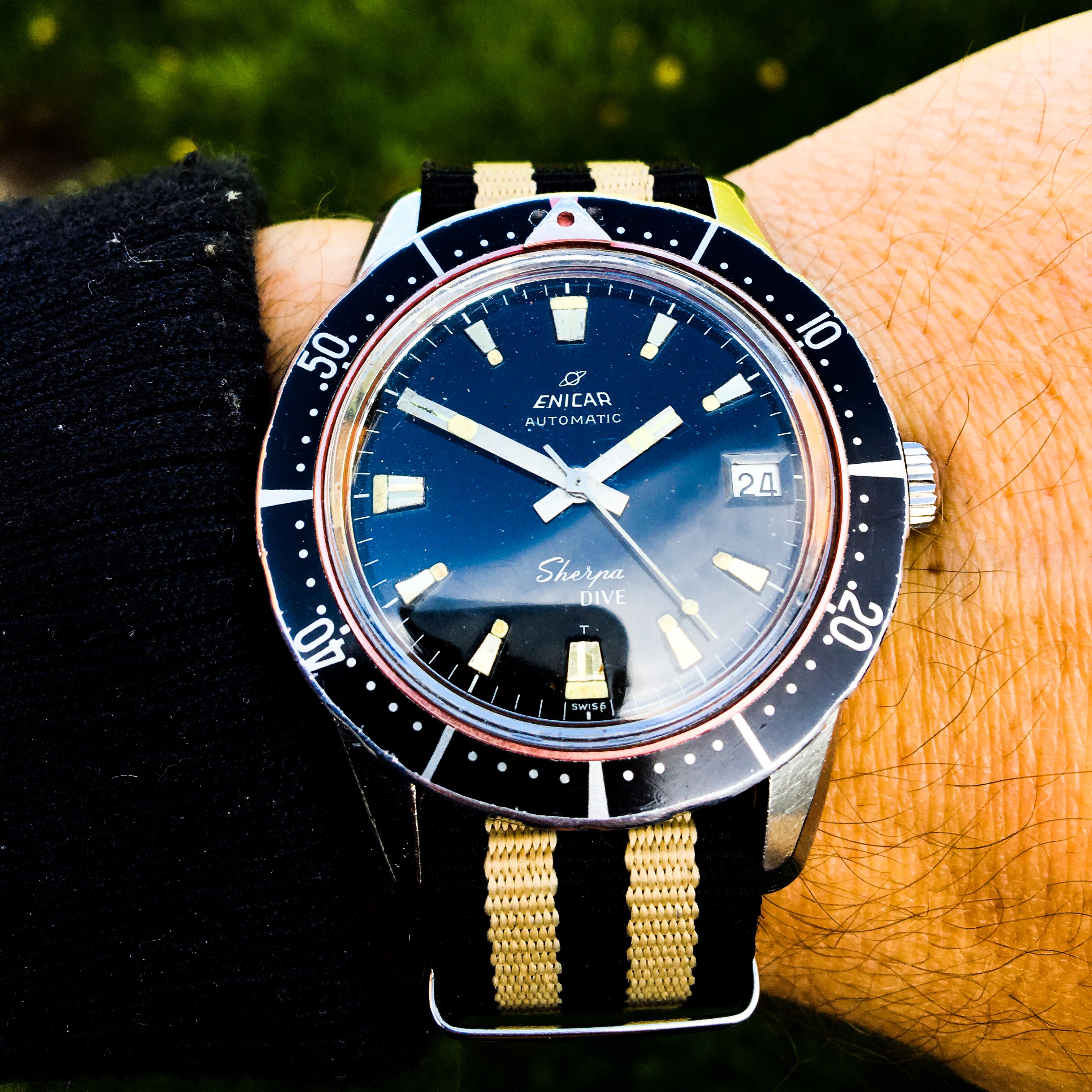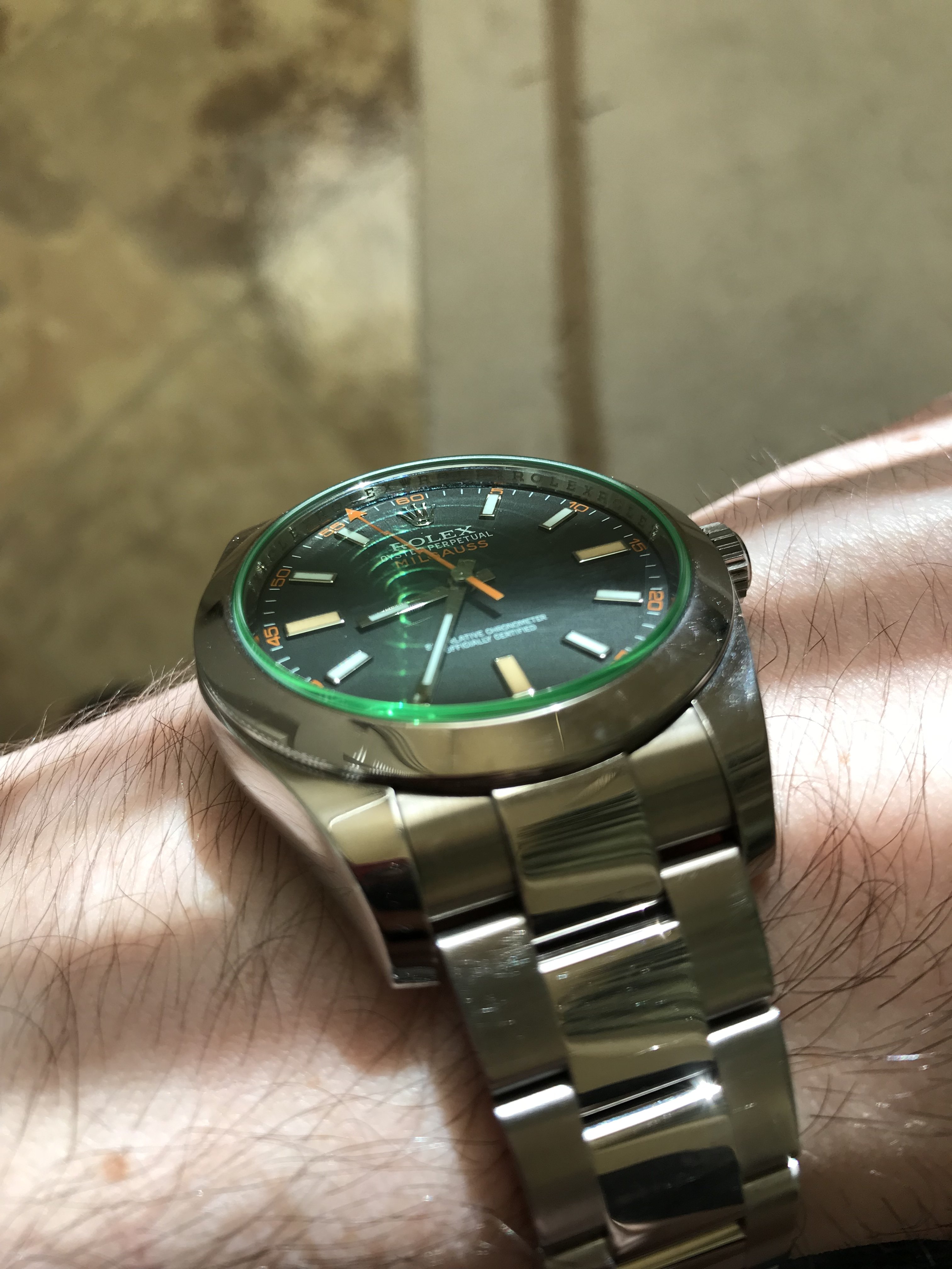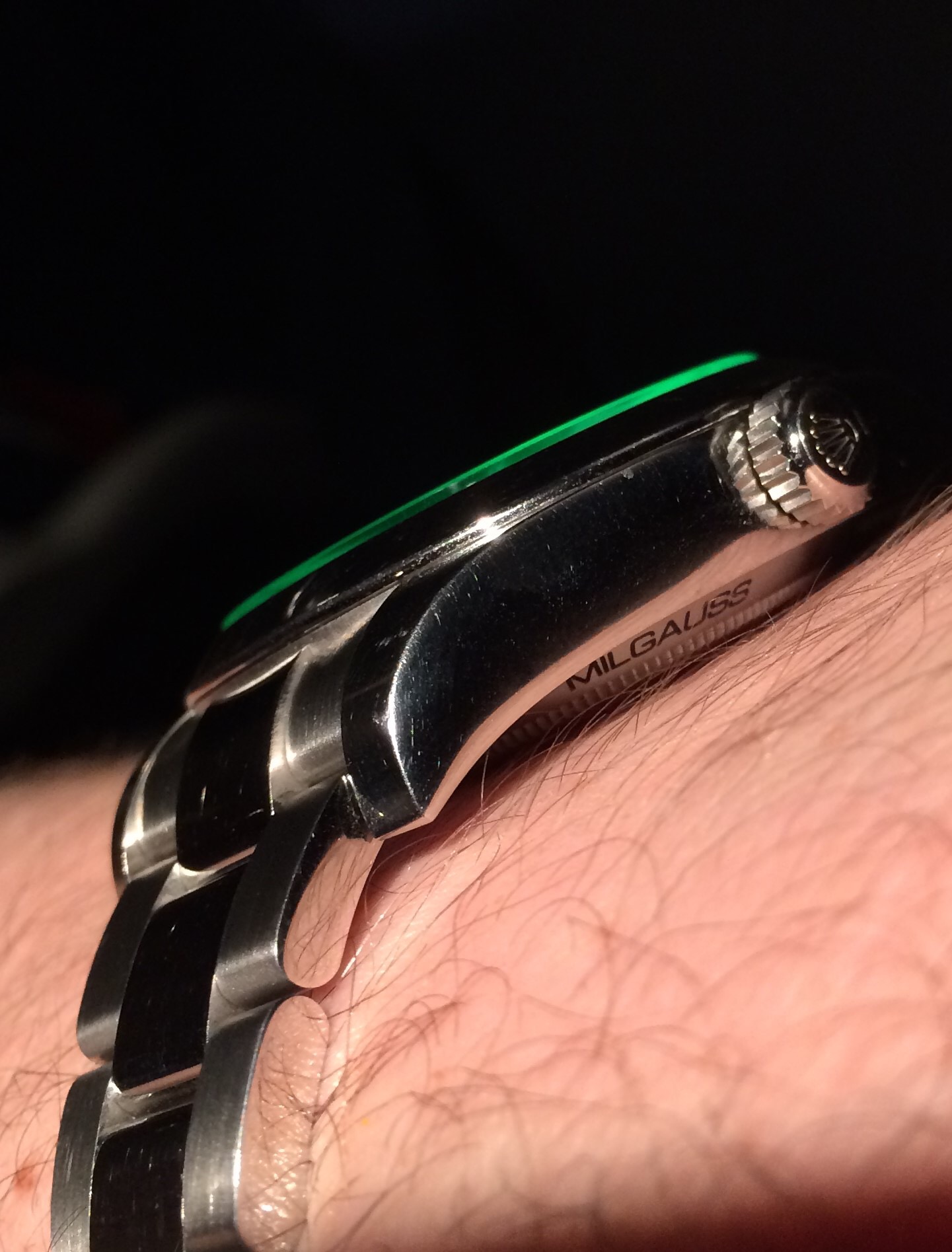 Couple of fun shots playing with the light and how it reacts to the GV crystal on a Milgauss, and a totally accidental artsy shot of my Visitor a little past dusk