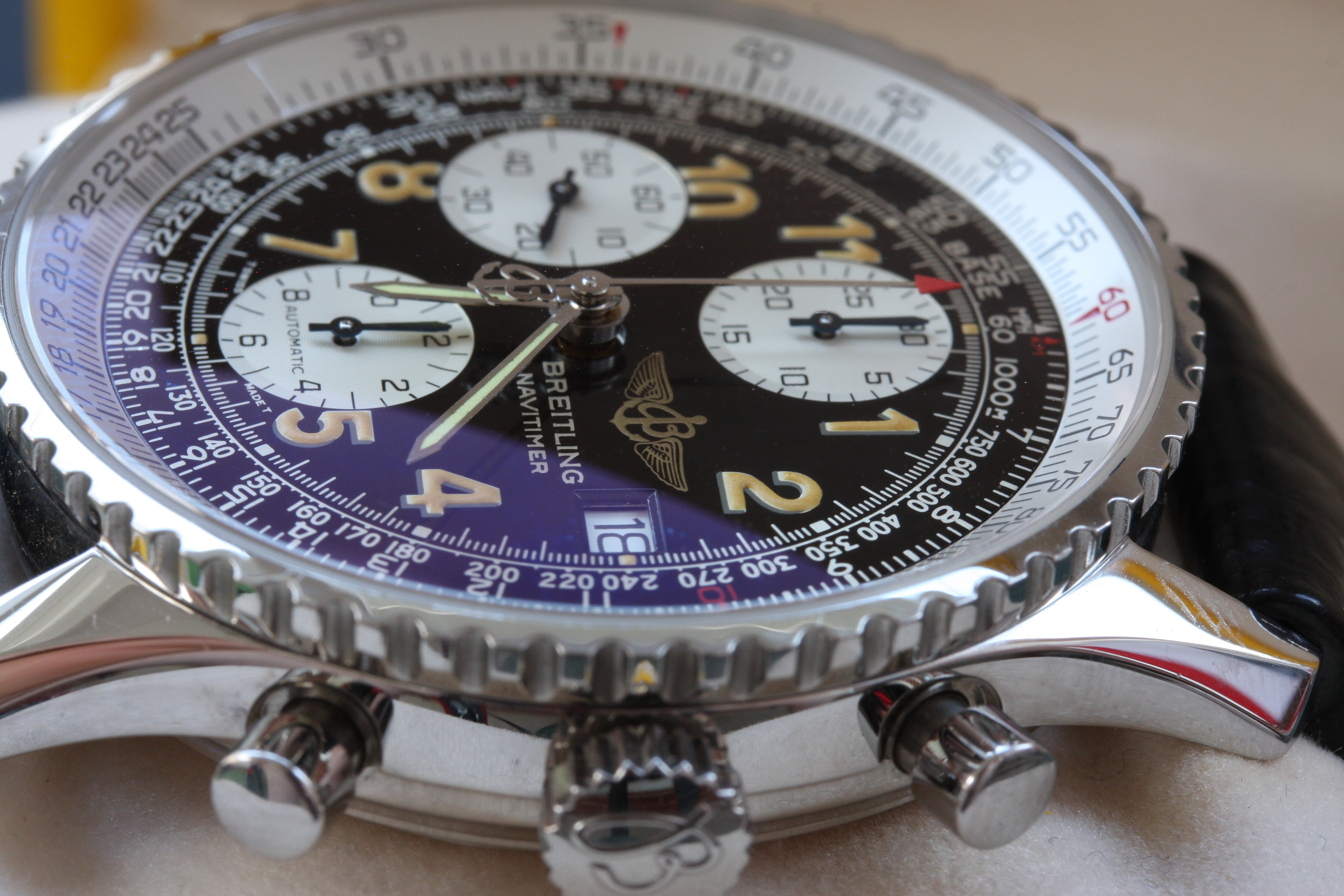 An oldie but goodie. I shot this in my apartment in NYC, circa 1999-2000. My first Speedy, the ‘57 Replica. I must have bought and sold this model 4 times before I finally gave up on being able to quickly read it at night. It will always hold a place in my heart!