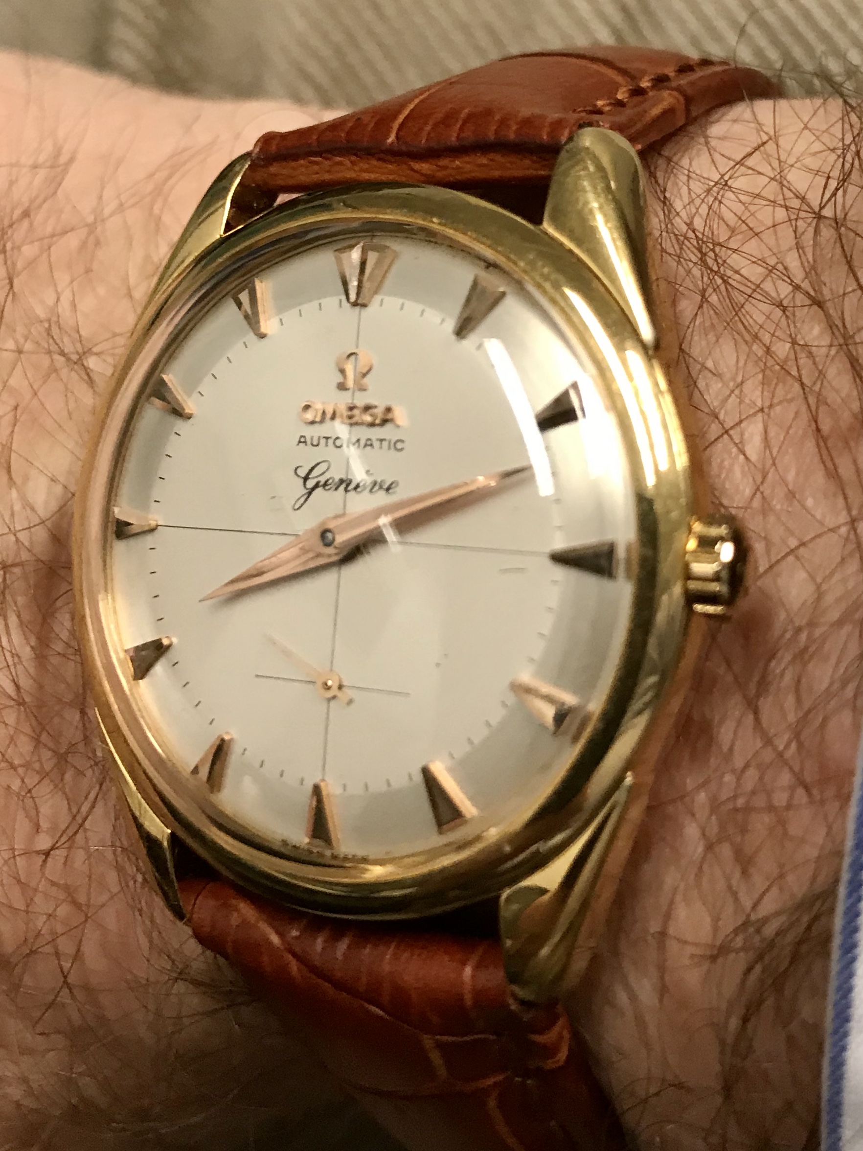 Posts 9,753 Likes 54,628 gbesq ·Feb 7, 2020 My birth year watch, a 1958 Omega Genève, caliber 491 automatic.