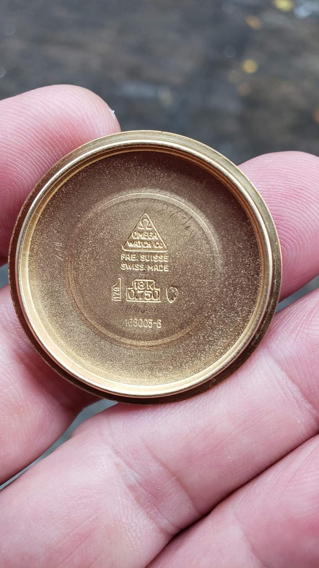 The case back bears the maker's mark for La Centrale, so the different look may be due to that, since most 006 cases were produced by Serva SA. But I don't buy the "original" yellow gasket with as many as at least three watchmakers' marks on the case back. I also think that the serial is somehow suspect, I would have expected a 168.006 to have been fitted with a 564 movement if it was produced at the end of 1966/beginning of 1967, as the serial 24.465.XXX seems to indicate.