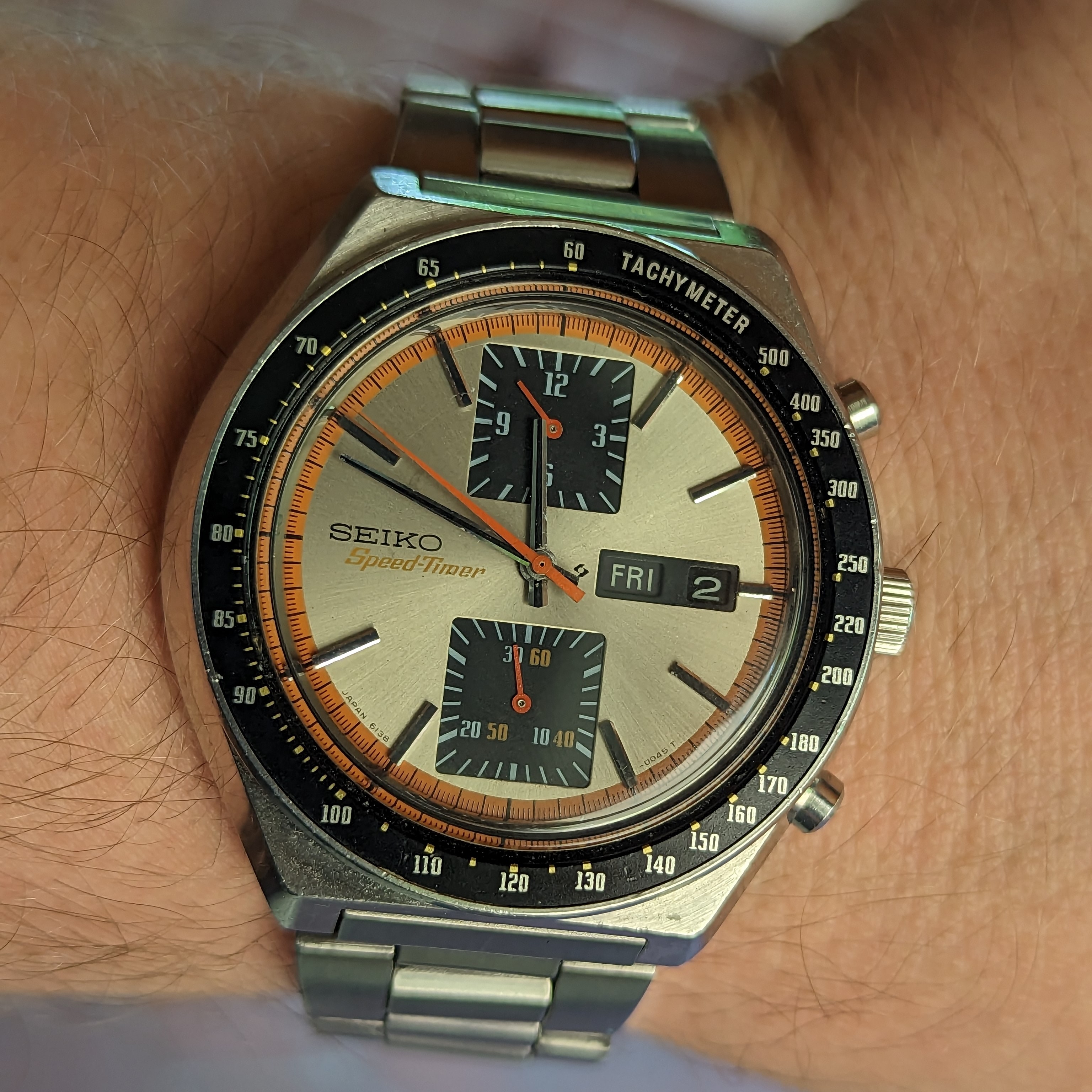Posts 617 Likes 2,975 Rudi99 ·Jun 4, 2023 Happy to join the party. Loving this thread. I recently realised I have a sweet spot for funky pieces of the late 60s/70s. Seiko 6139-6002 😀 I actually thought this one was the so called "Cevert".