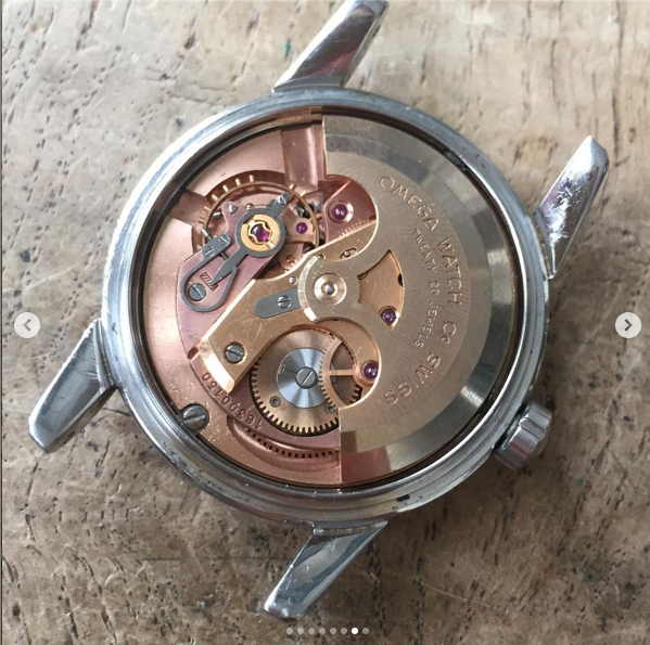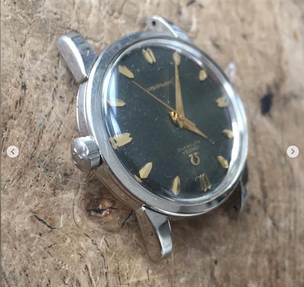 Other than that the case is in a nice condition IMO, not overly polished, some scratches here and there, but no major dings. The crown is original. The movement also looks clean but probably needs a service given the regulator's position.