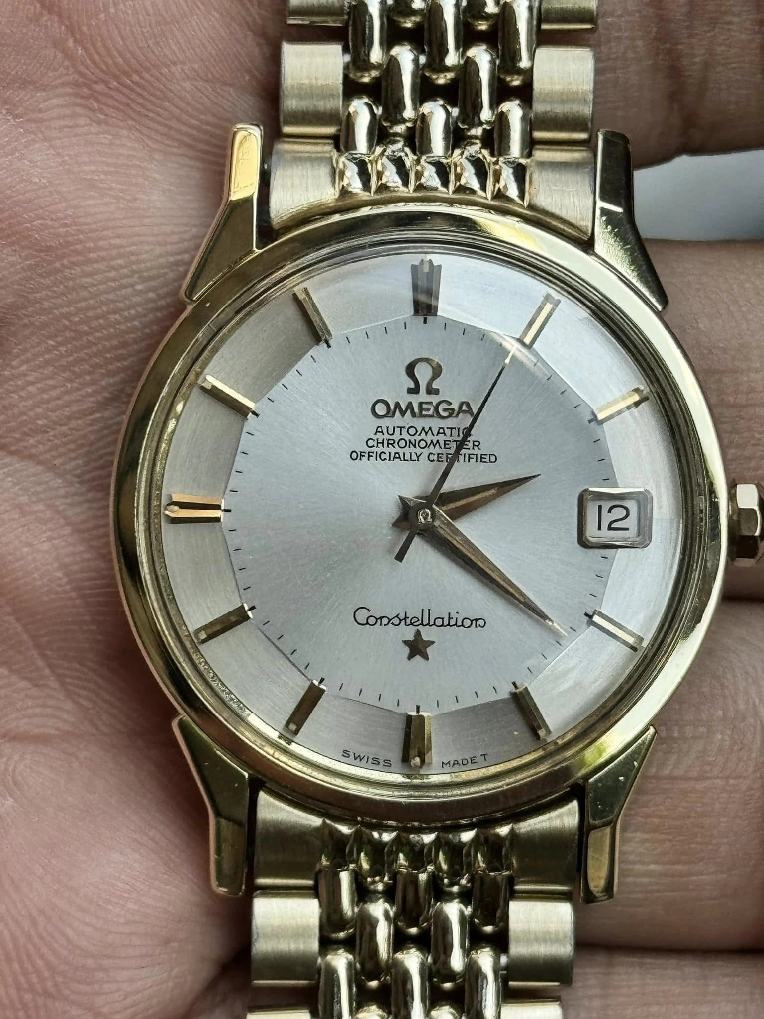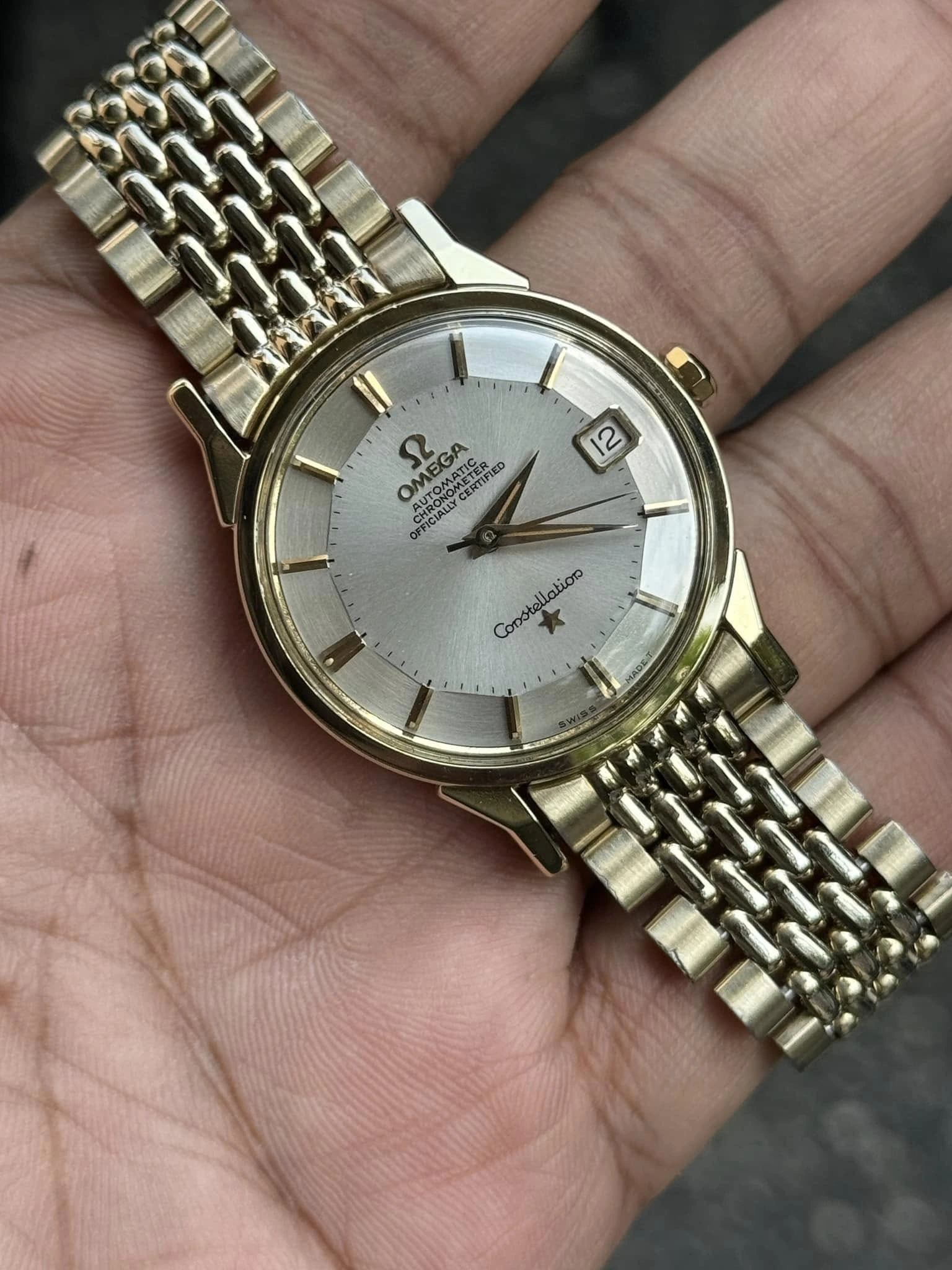 I'm hunting for a Constellation pie pan. This one shows up in my local market, Thailand. I like the condition of dial and calibre. However, I think the gold is worn out and the case isn't sharp enough, but typical in my local market. I'm not sure if 3 by 2 BOR was correct for this reference, but I also found another 168.005 with the same BOR. The seller asks for $1,570, which will go down a little bit after negotiation.