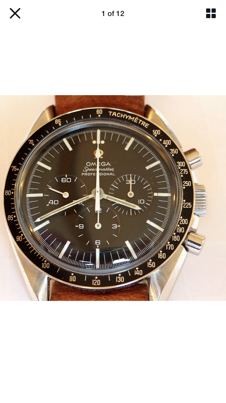 With the box and papers leather strap not bracelet. It seems a lot of money but is the last actual moon reference.