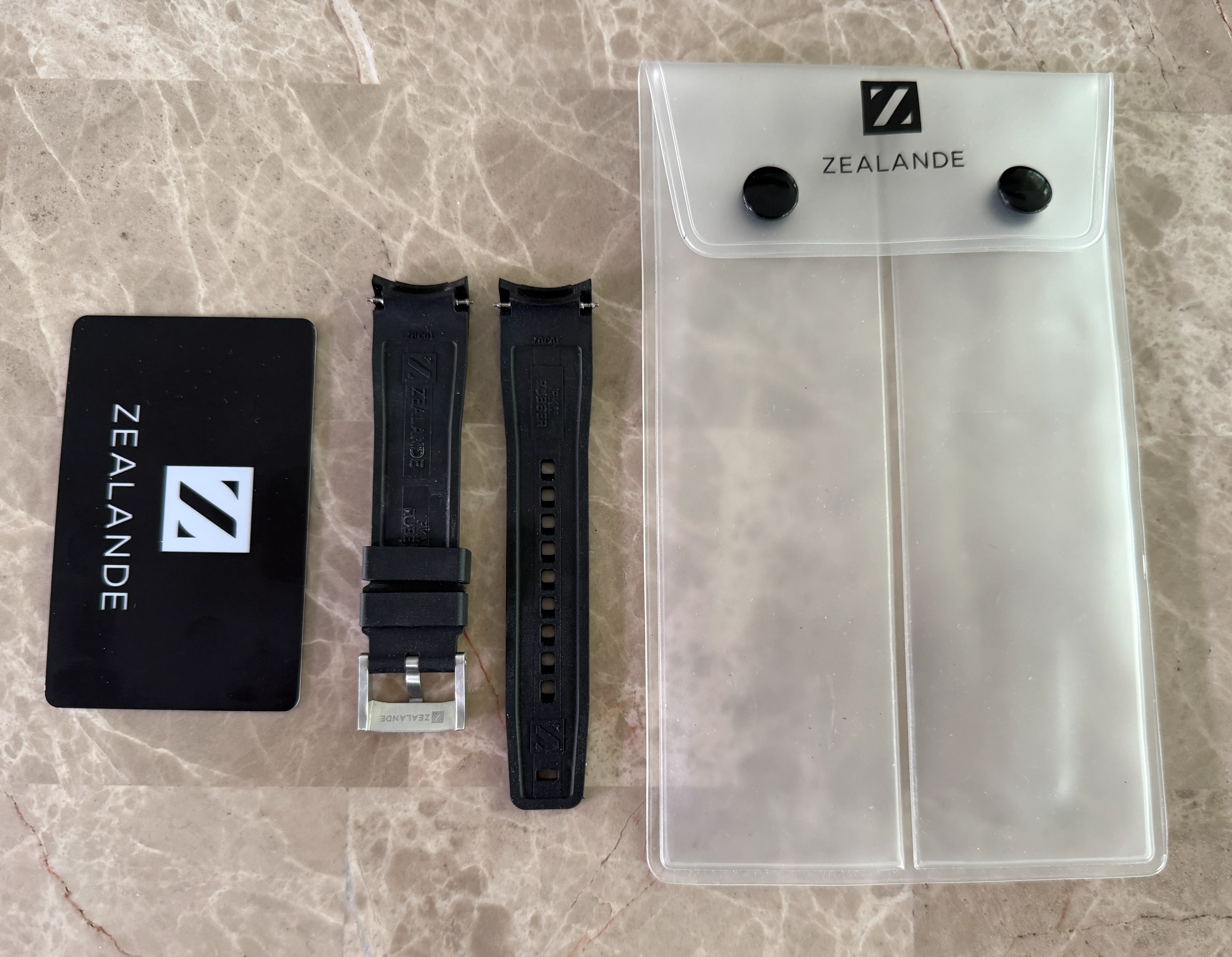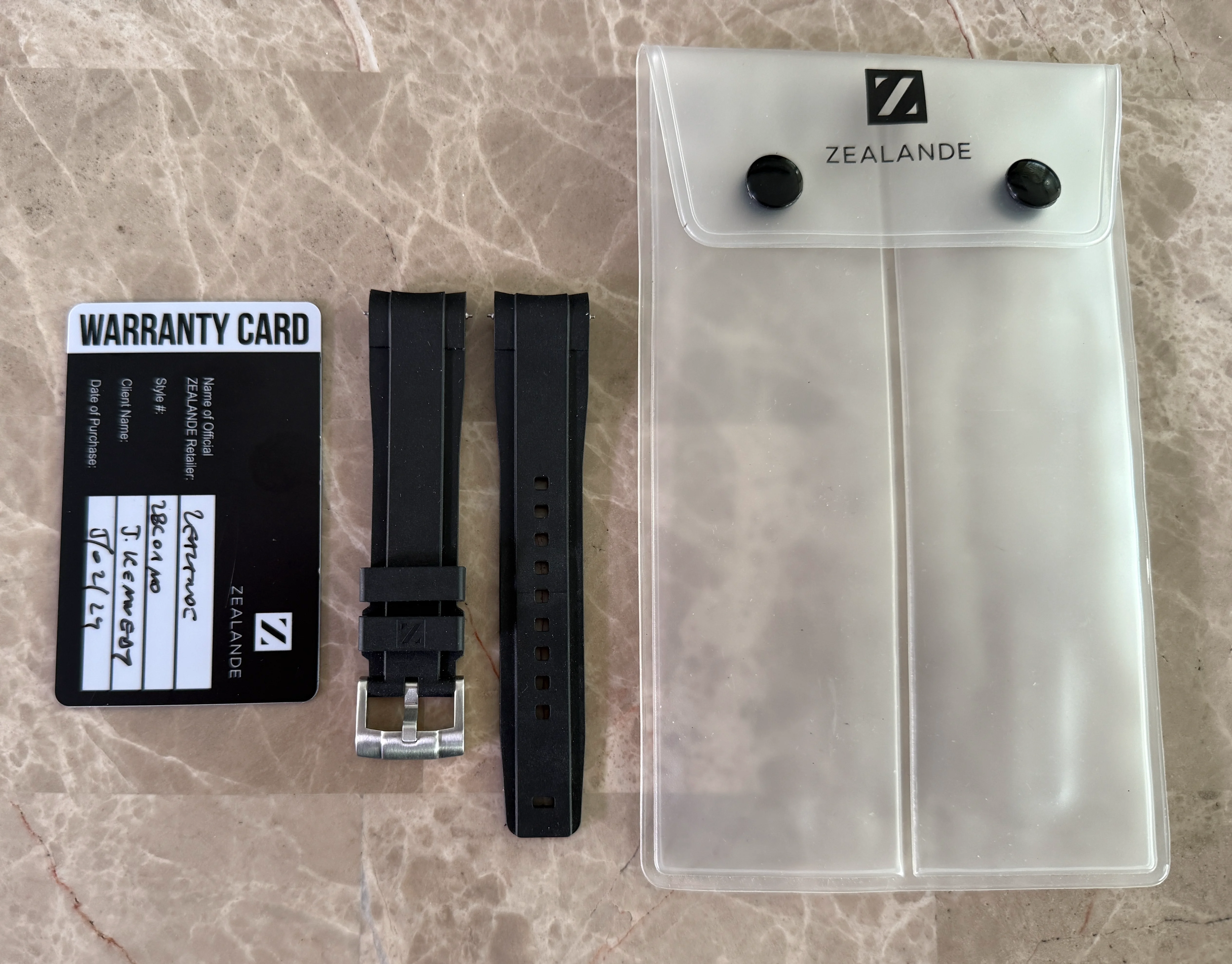 ·For sale ($105 OBRO) ha a genuine Zealande 20 MM brown rubber band (standard size) for Omega Seamaster No Time To Die (NTTD) with buckle, springbars, storage case and warranty card. Band is in very good conditions as shown.