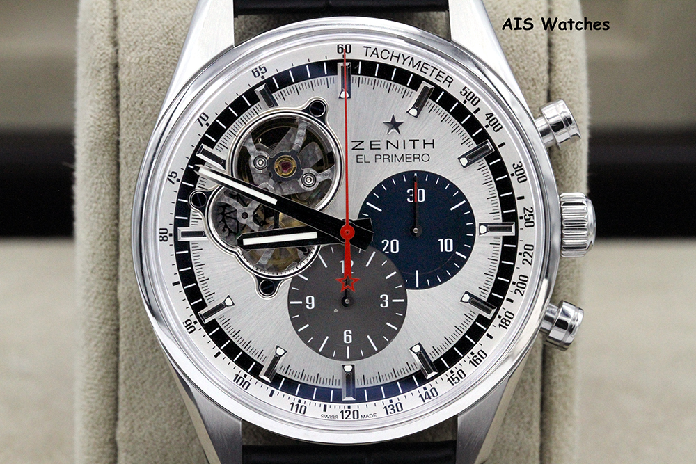 Up for sale is a Zenith 03.2040.4061/69.C496 El Primero Chronomaster Open Silver 1969 Strap - BOX & NO PAPERS. The timepiece is in excellent condition.
