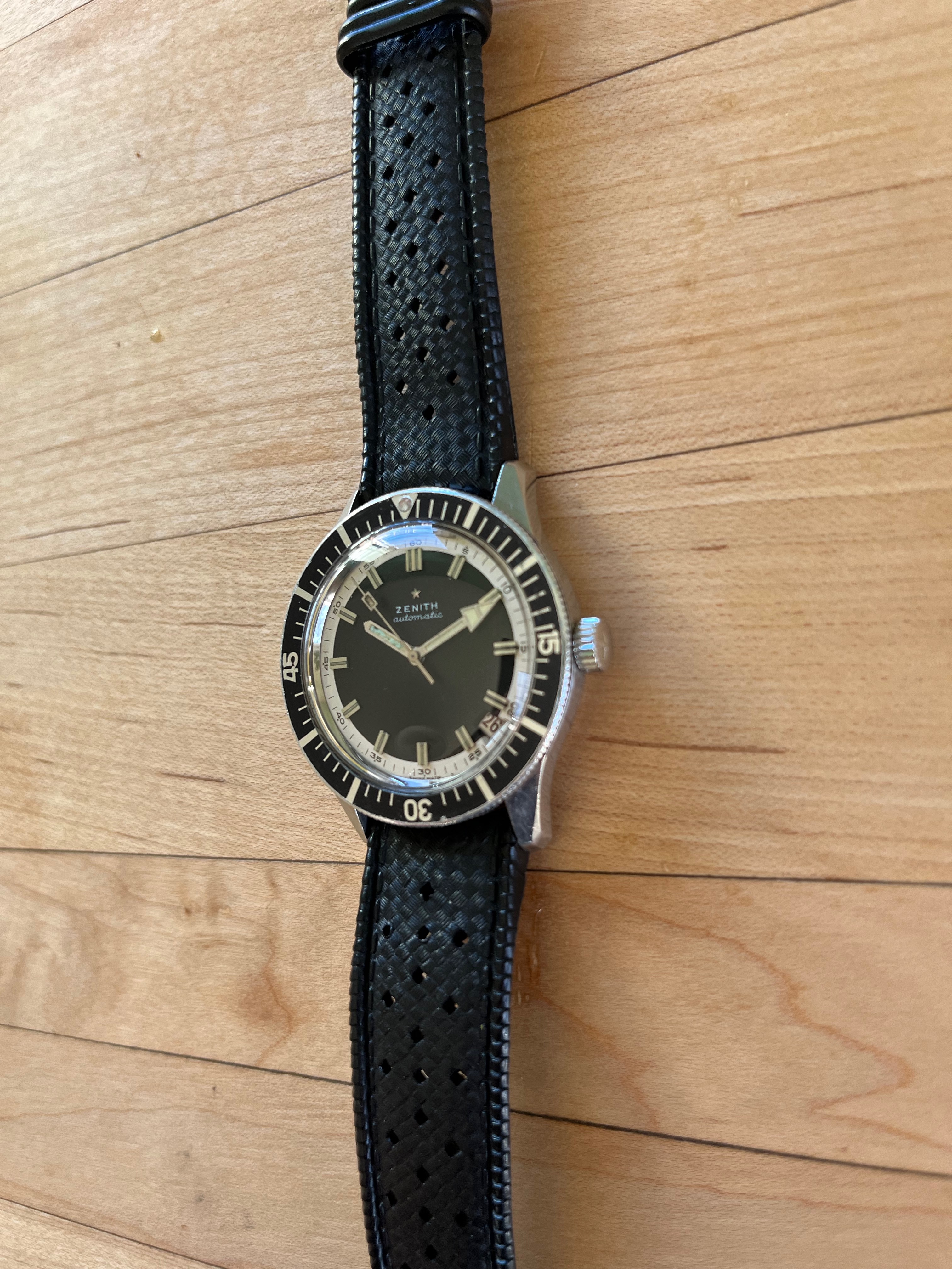 ·Hi, folks! After a long back and forth with myself, I've decided to part with this Zenith from the 1960s. Just not getting any wrist time and I plan on selling a few rarely worn pieces to build funds for another purchase. Watch was serviced two years ago according to the previous seller--I do not have any paperwork on that, so no guarantees, though watch appears to keep time well. Details: