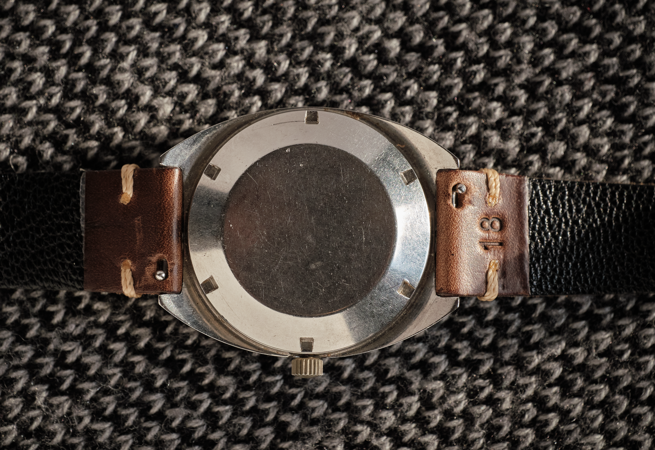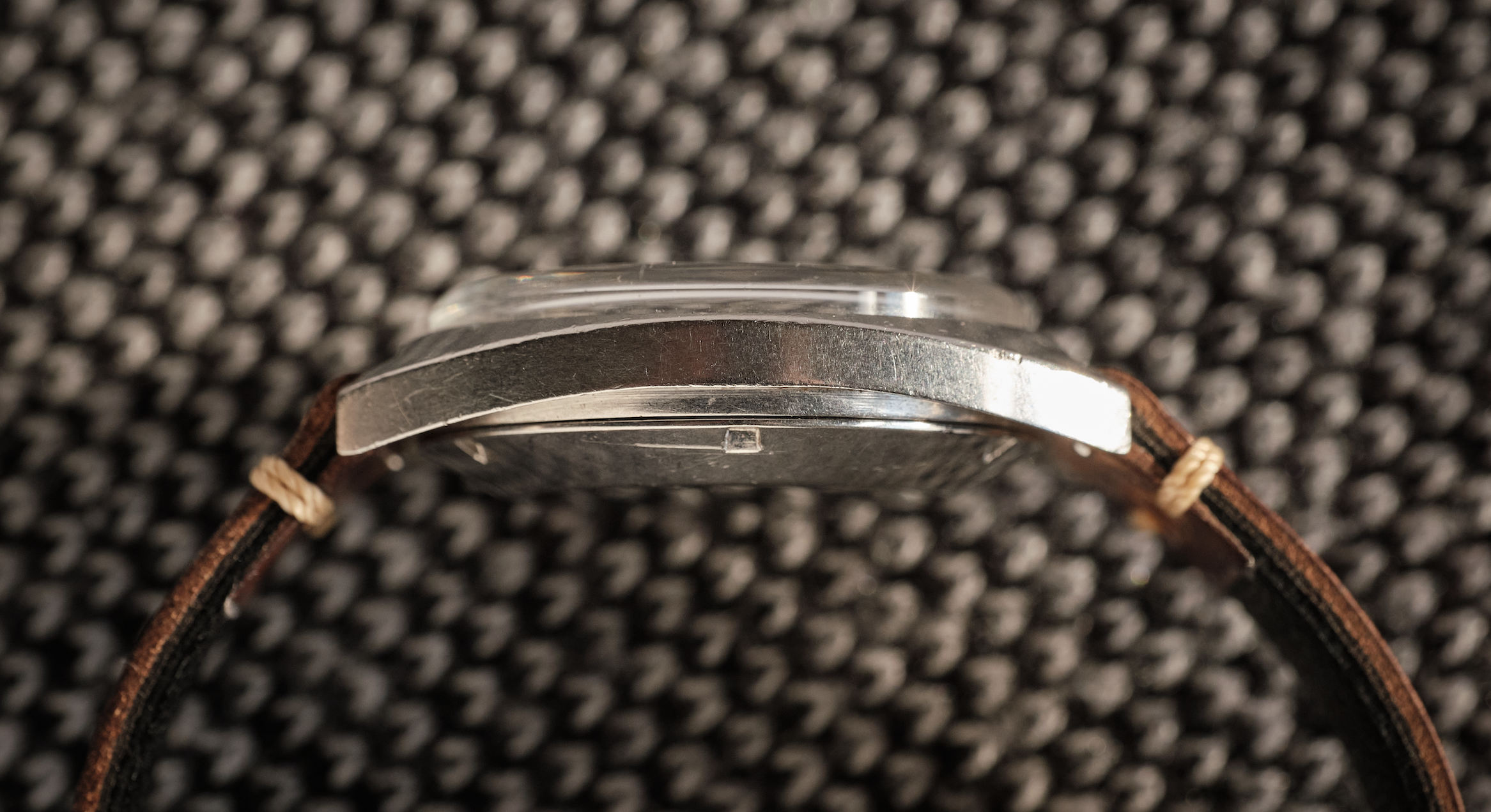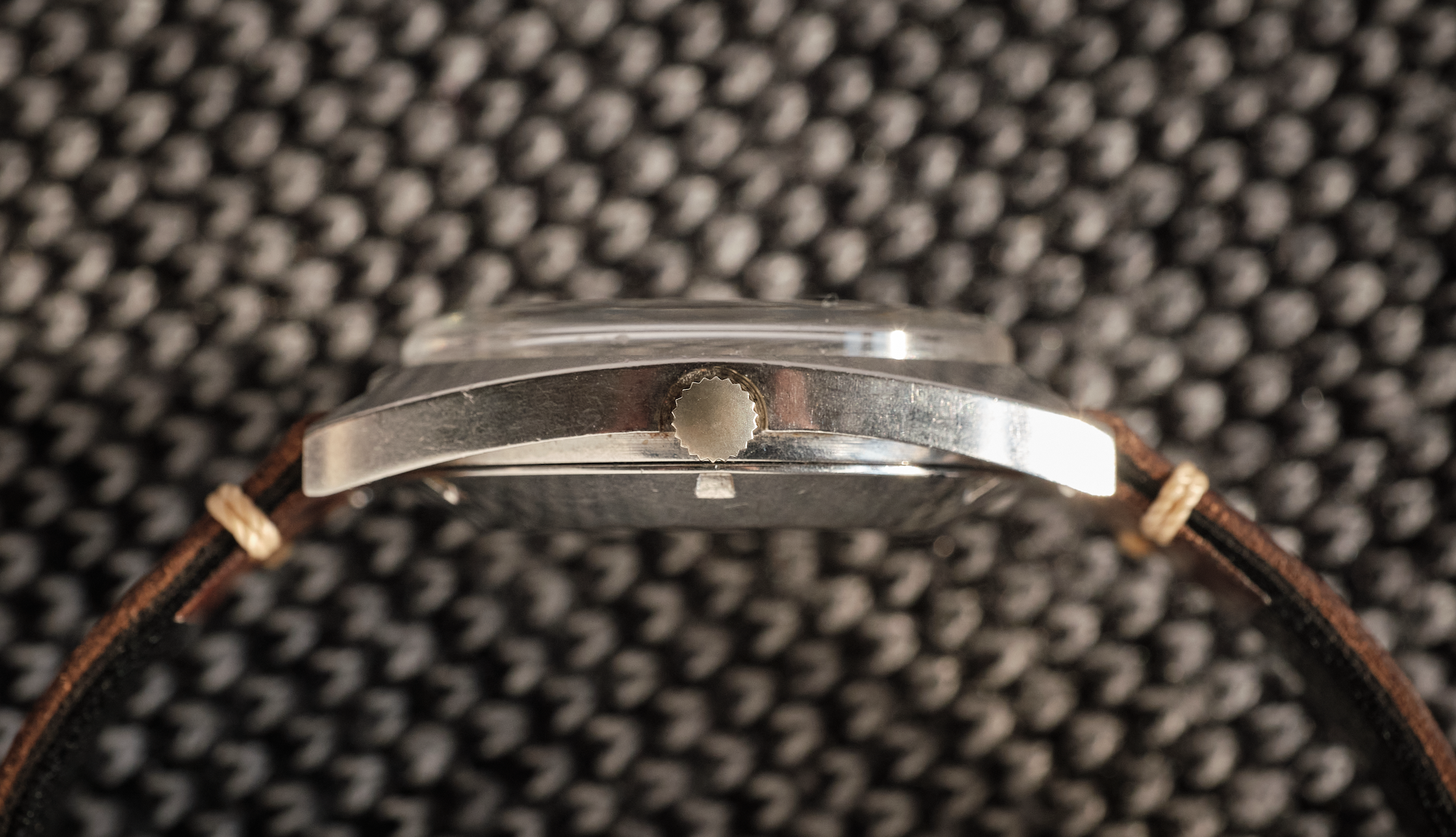 Has some small dents and scratches. I don't think it's been polished, at least not a lot. Still has rather sharp edges. And you can still see some original brushing lines. The case back has a couple of sloppy opening marks, and still has a serial number written on it. Hard to capture with a camera.