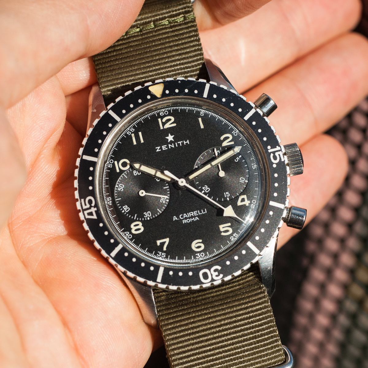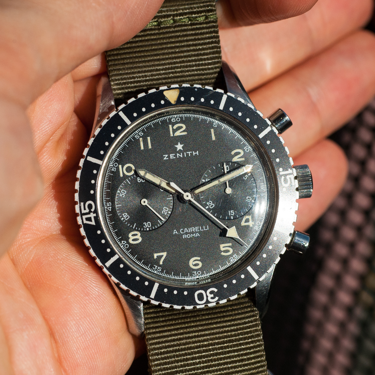 I'm selling this Zenith Cairelli. The watch is full original (crown, hands, bezel...) The case is unpolished. Dial is perfect (no scratches or dings...) Dial and hands have NOT been relumed.