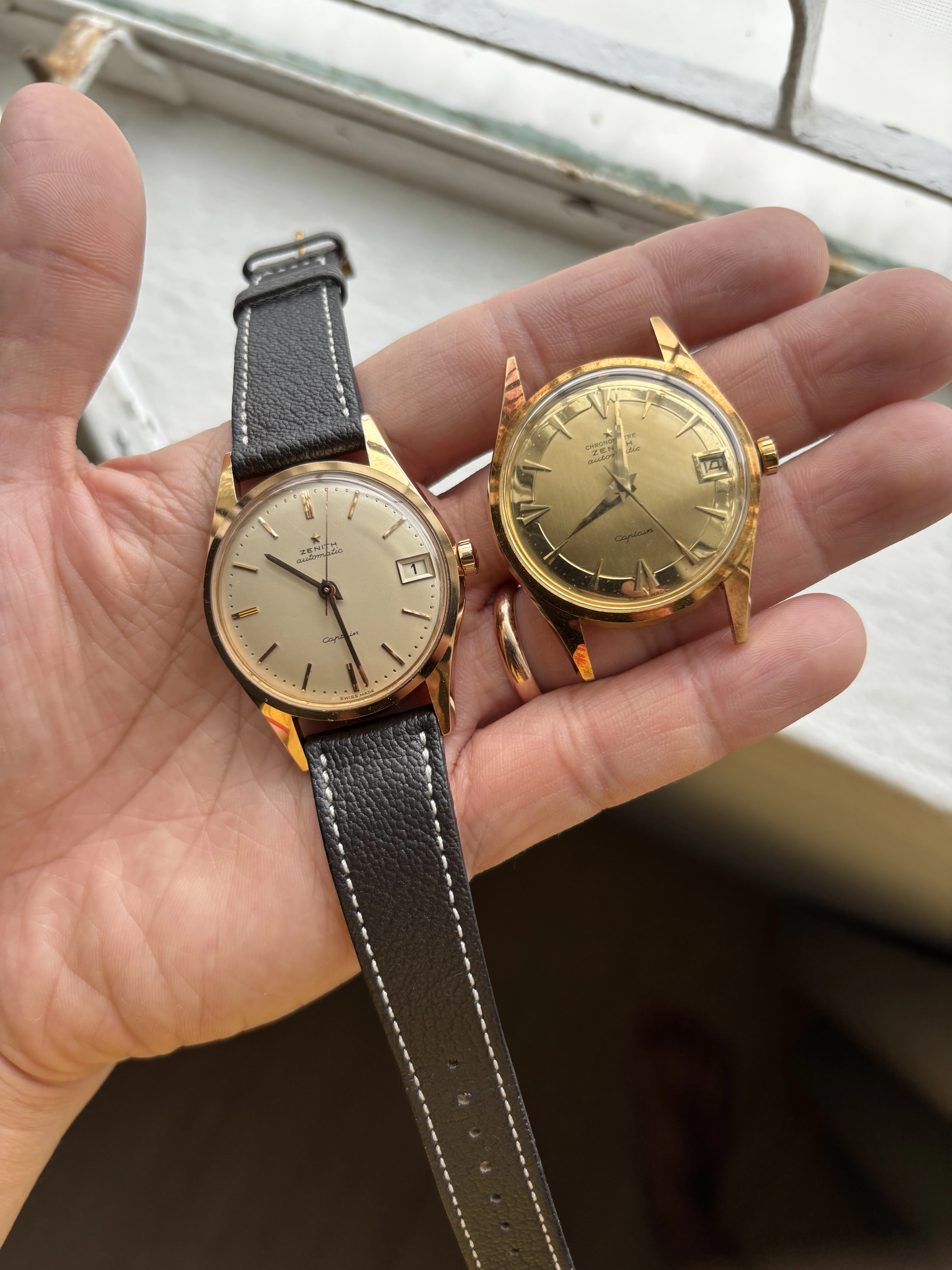 Here’s the comparison with the yellow gold brother. Although there’s a fair bit of tarnish on the yellow gold and I’m not polishing it to keep the vintage look.