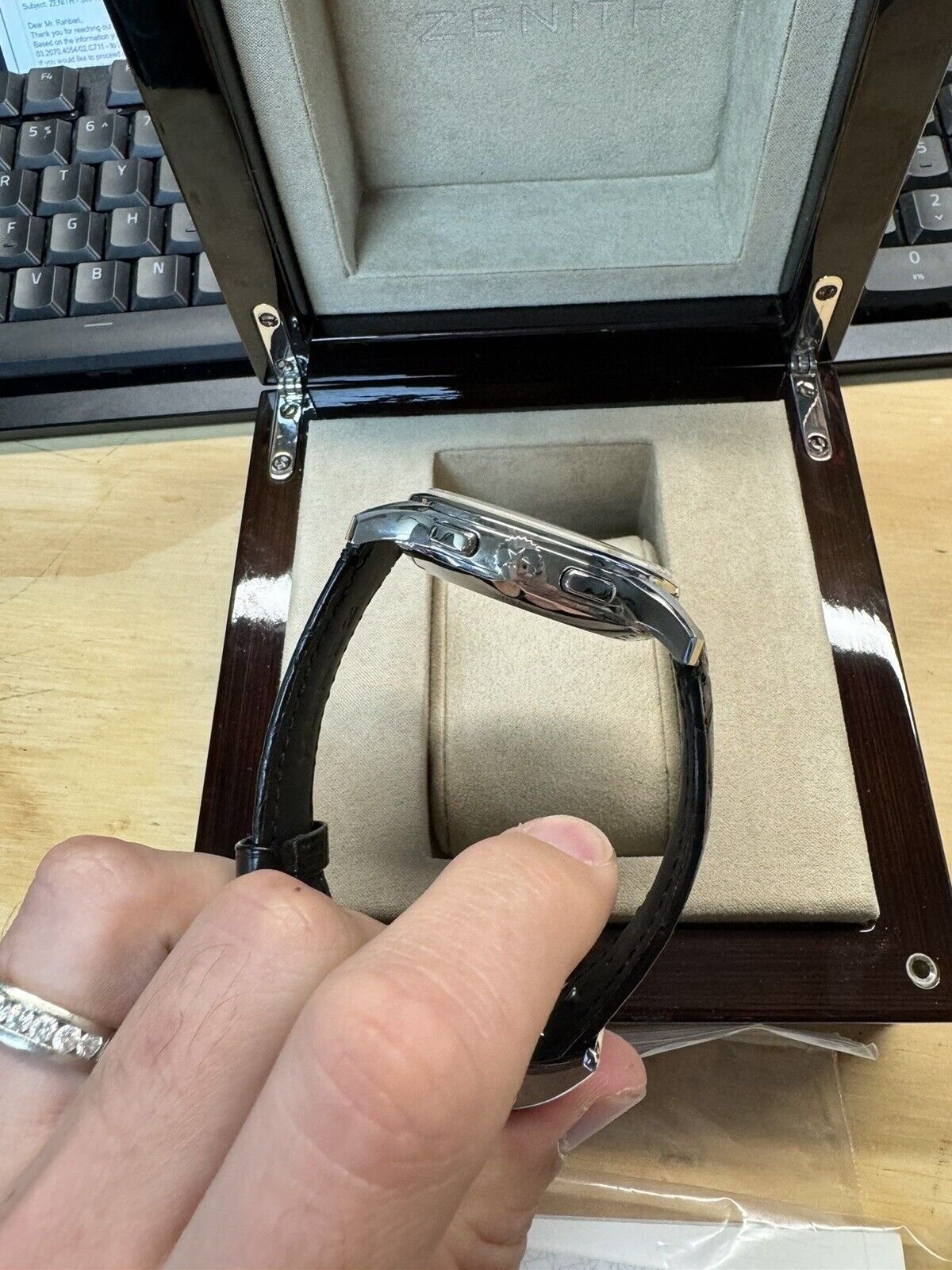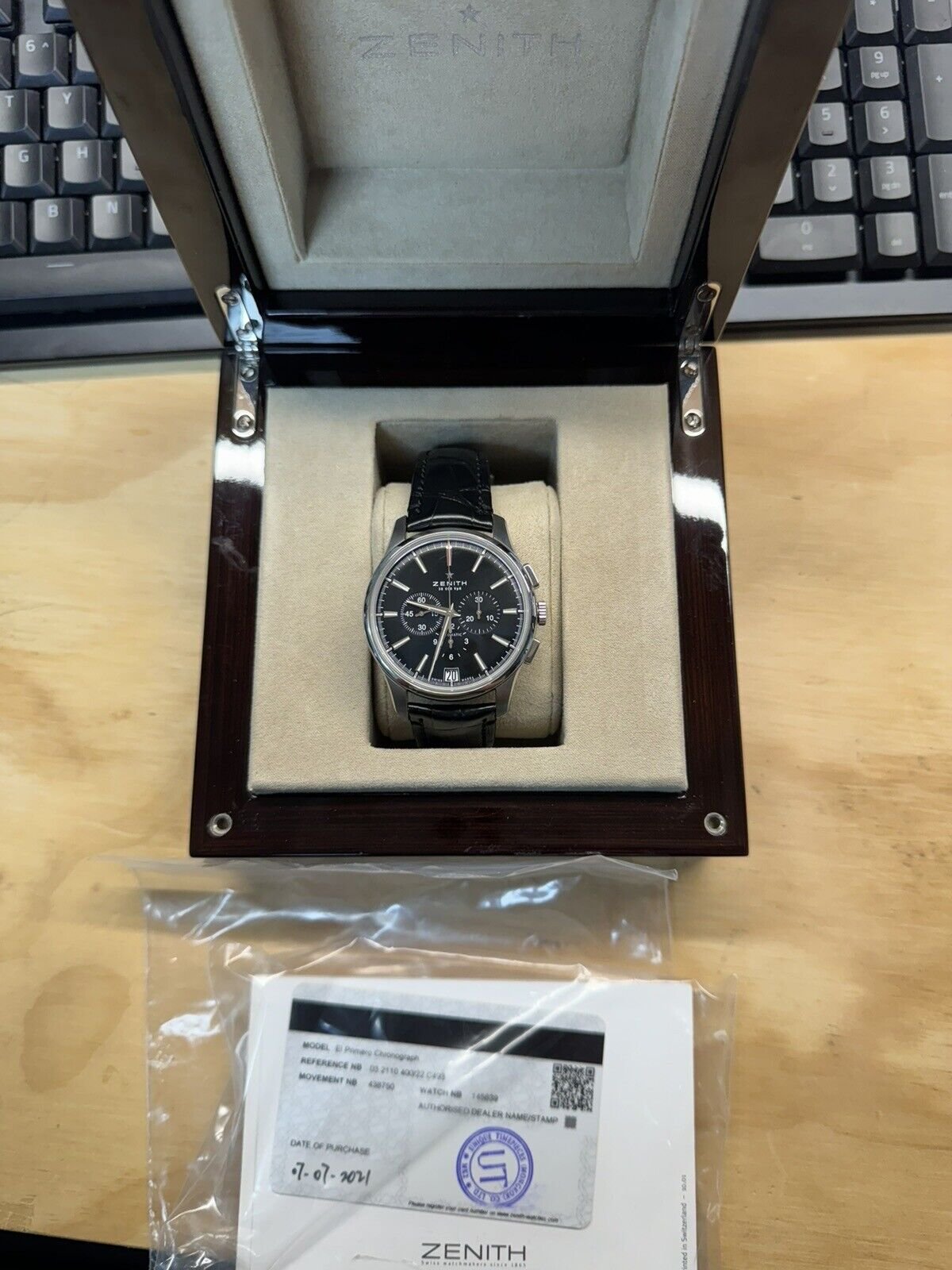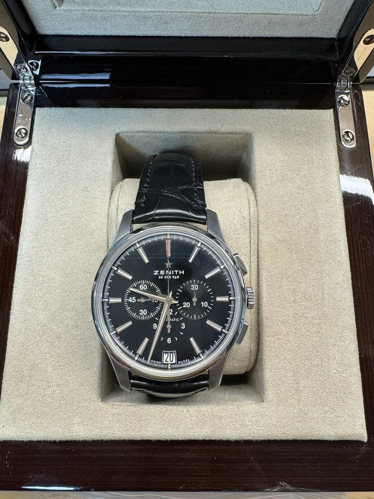full box and papers looking to sell and no trades. Dated card 2021 has a full service from zenith with new strap and clasp. please ask any question you might have.